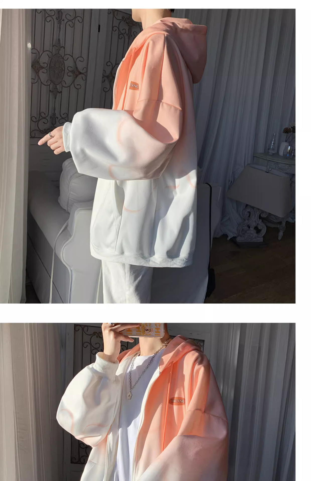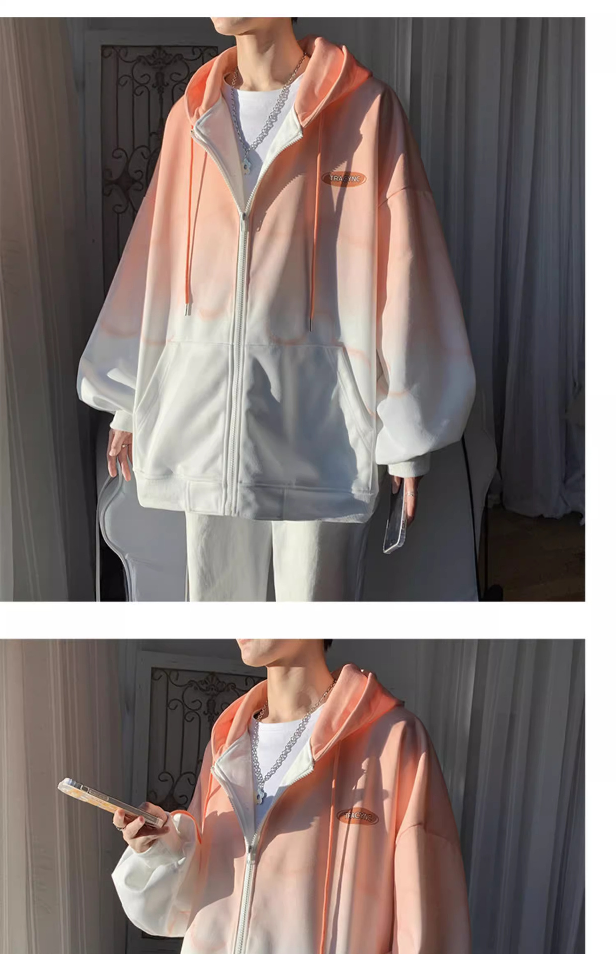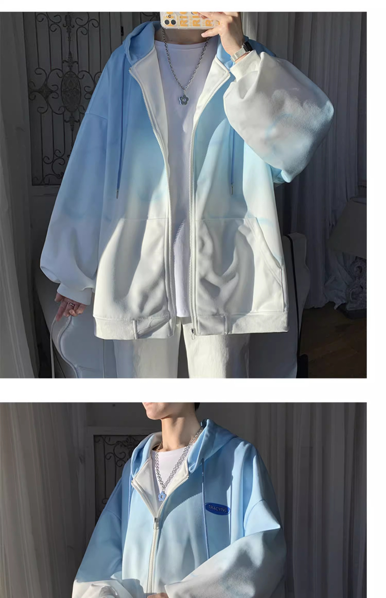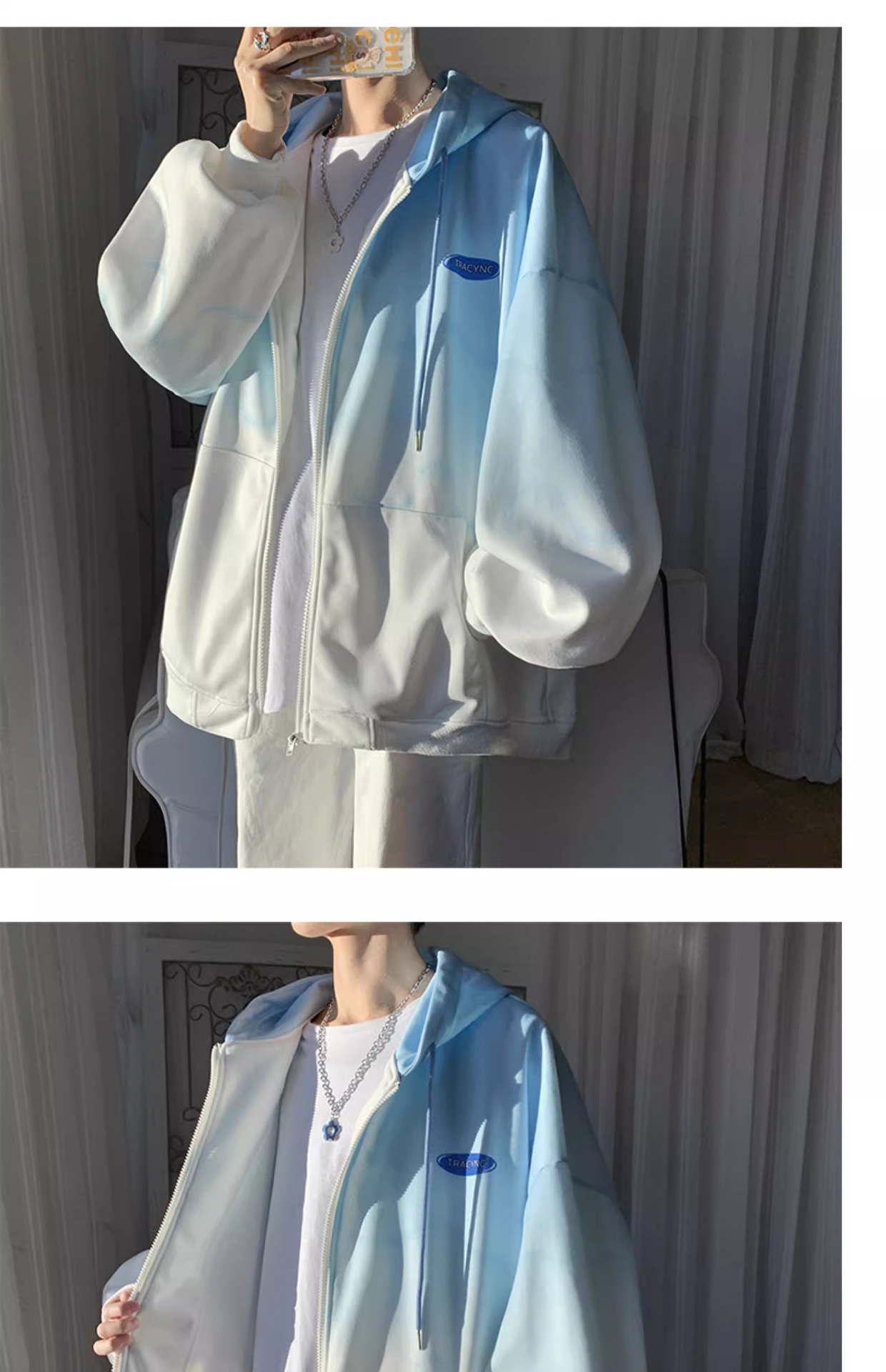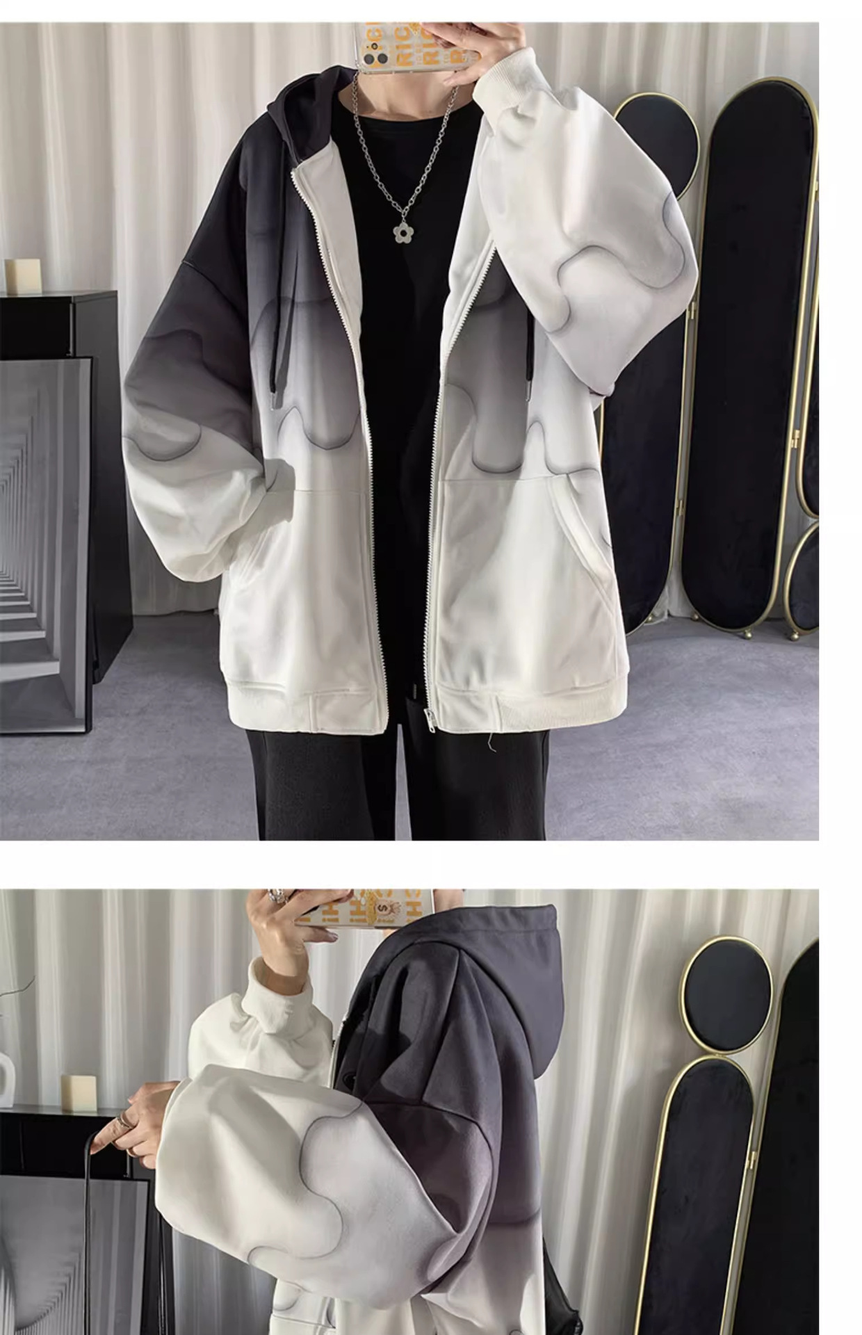후드 스웨터 남자의 봄과 가을 트렌디 한 브랜드 지퍼 인 트렌디 한 느슨한 올 매치 탑 옷을 입은 그라디언트 카디건 재킷스토어 가기