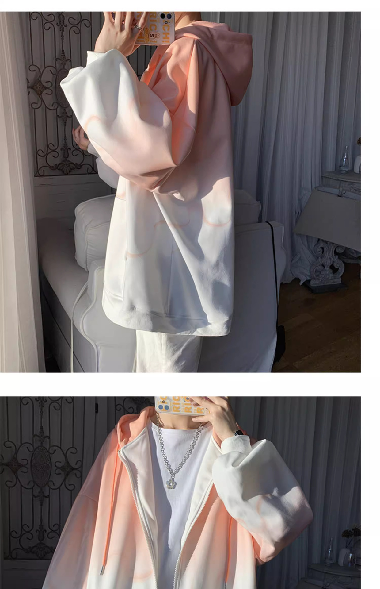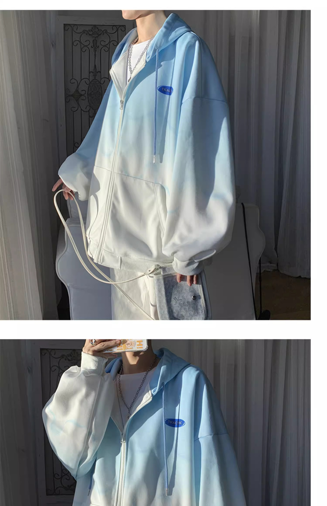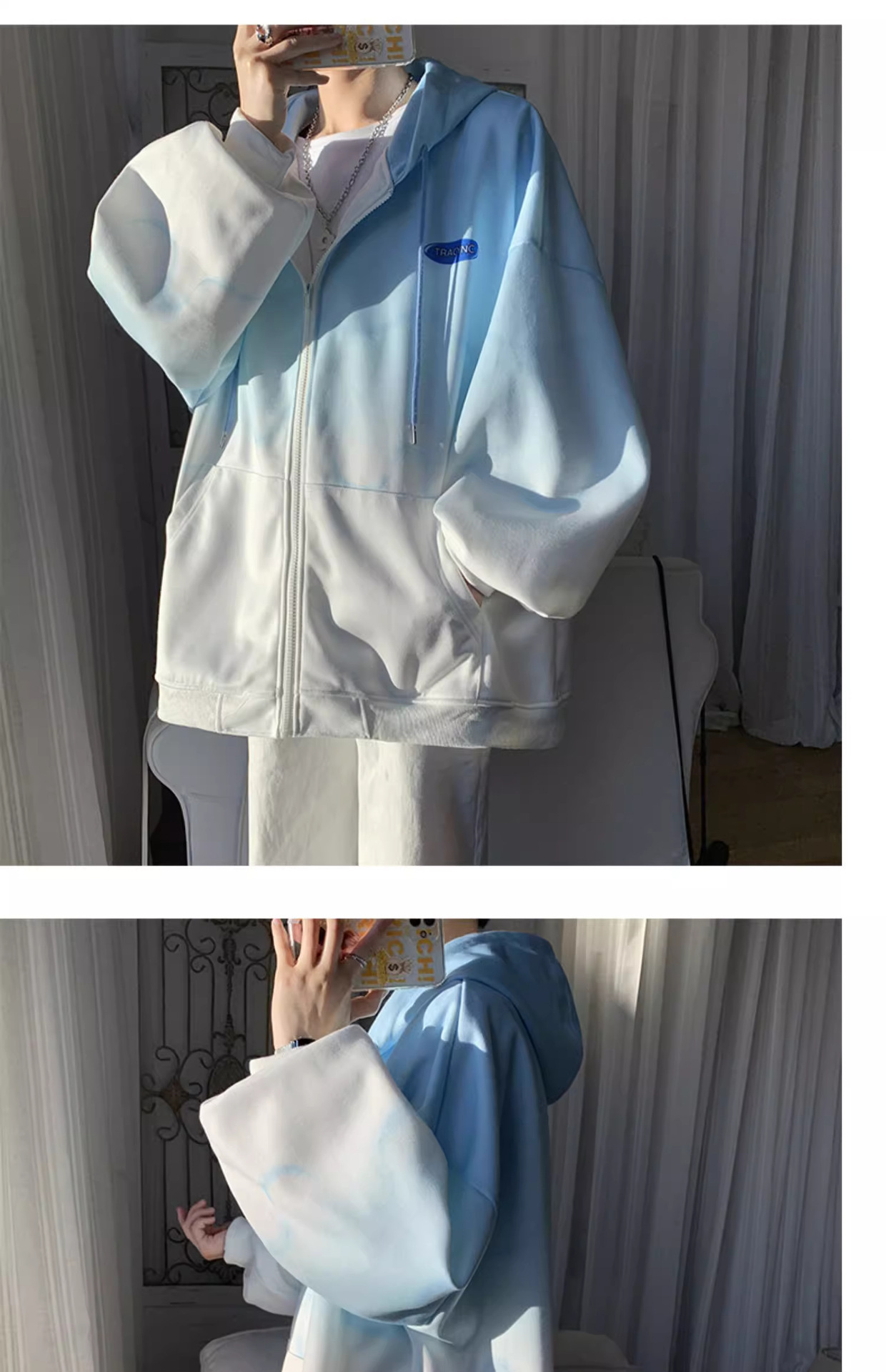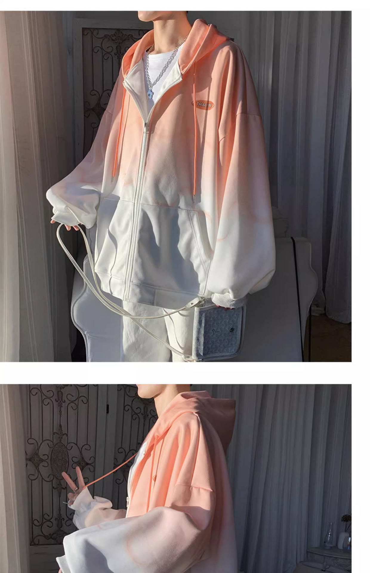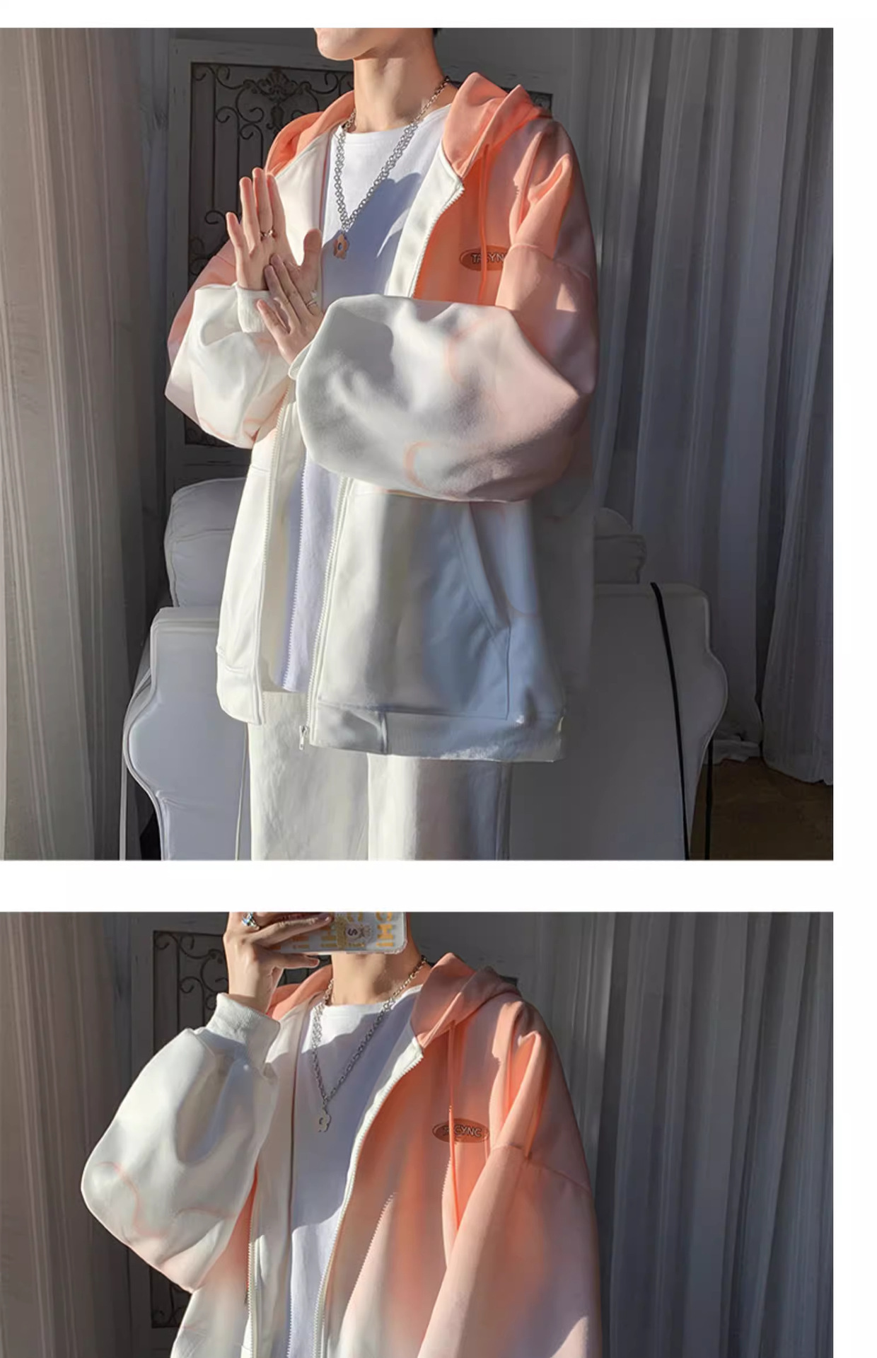 후드 스웨터 남자의 봄과 가을 트렌디 한 브랜드 지퍼 인 트렌디 한 느슨한 올 매치 탑 옷을 입은 그라디언트 카디건 재킷스토어 가기