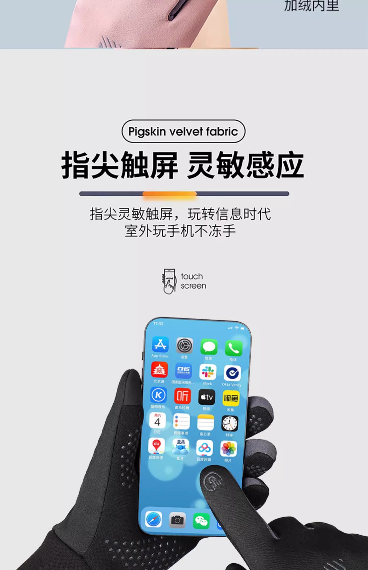 • 스웨이드 따뜻한 풀핑거 [여성용 핑크]