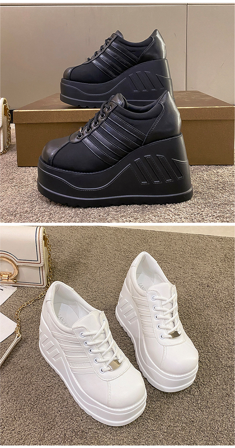 국경 간 대외 무역 34-42 플러스 사이즈 JK 유니폼 가죽 신발 두꺼운 밑창 한국판 고층 여성 캐주얼 레이스 업 신발 조수스토어 가기