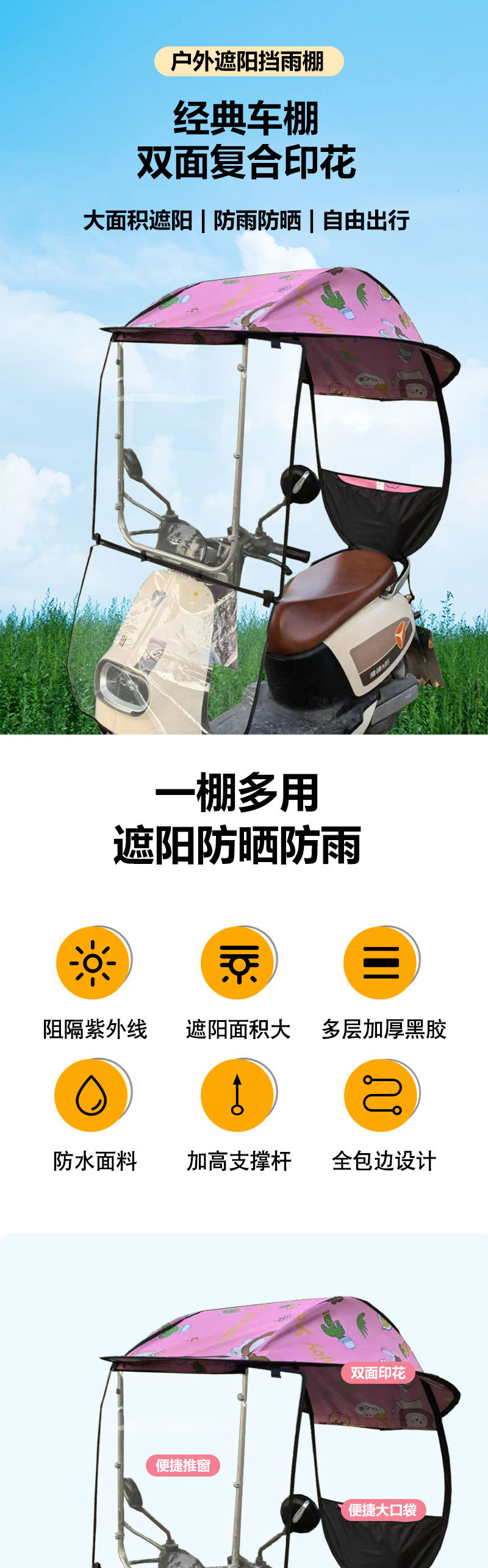 방수 차고, 두꺼운 페달 전기 자전거, 전기차 차양, 오토바이 차양, 자외선 차단 우산, 방수