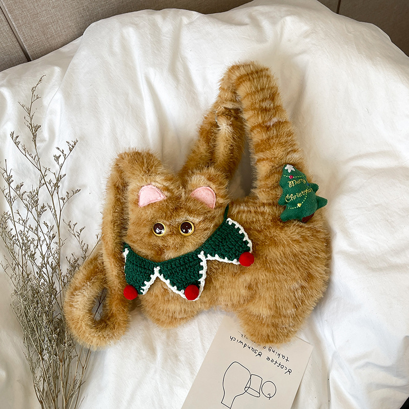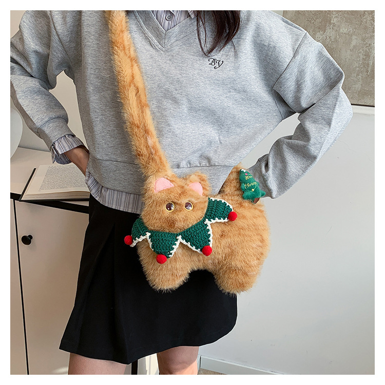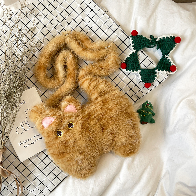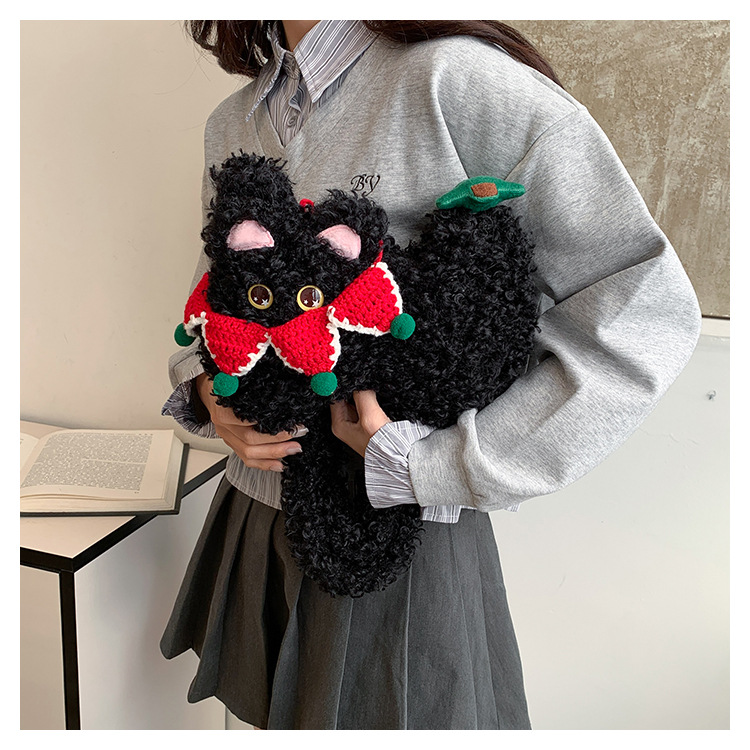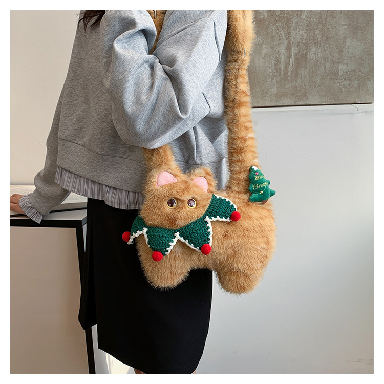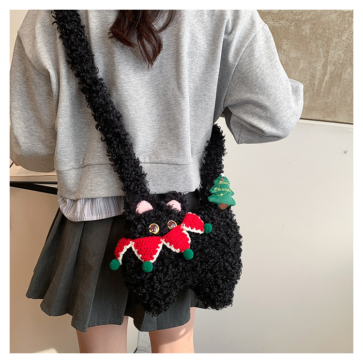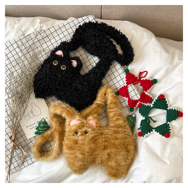 틈새 디자인 귀여운 봉제 가방 2024 가을과 겨울 슈퍼 귀여운 고양이 크로스 바디 가방 여성의 새로운 도착 어깨 가방