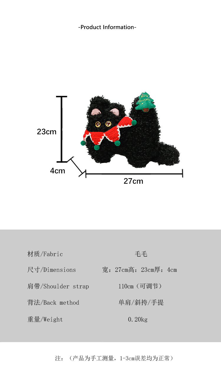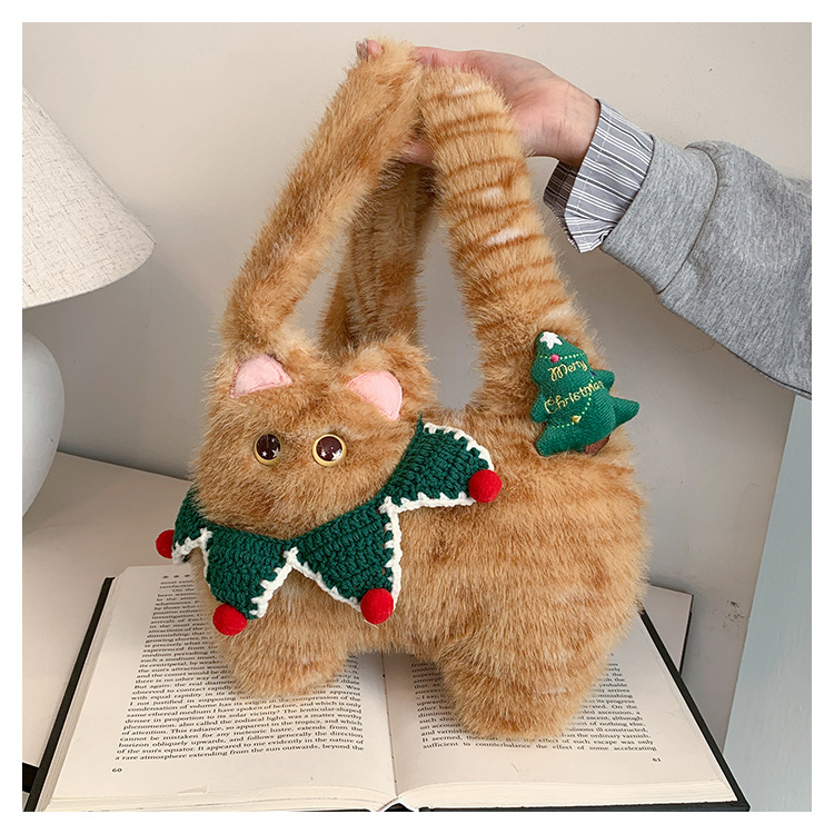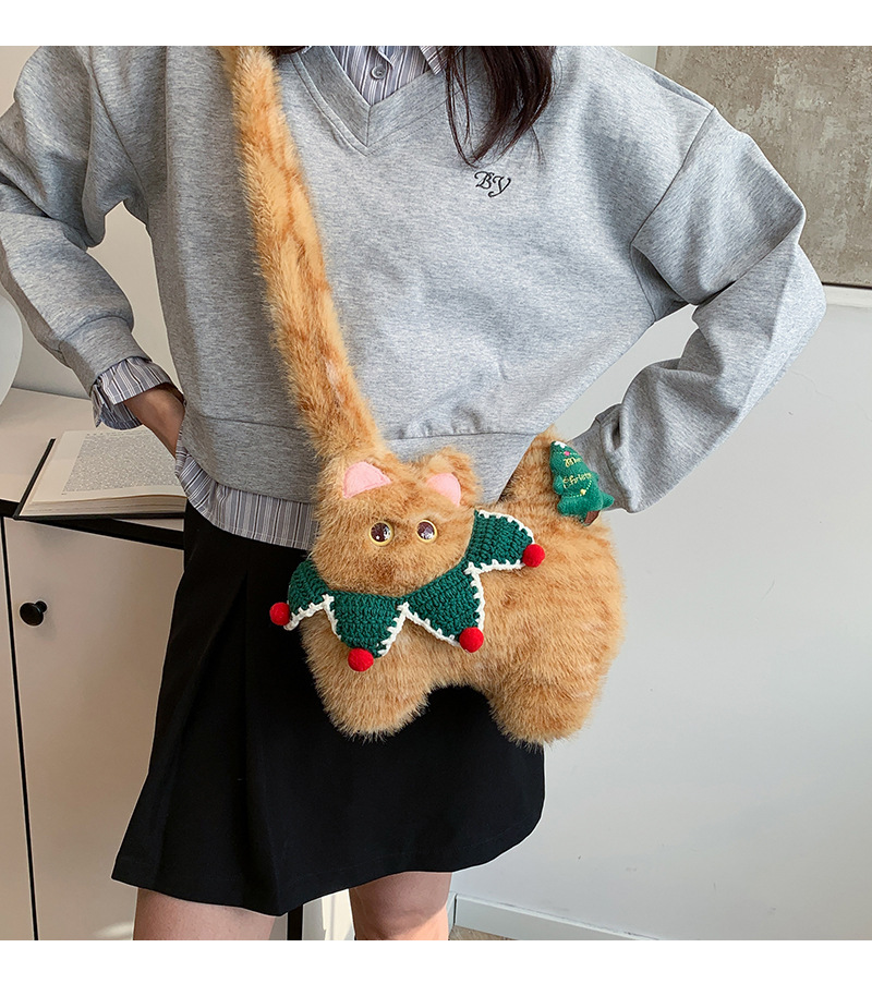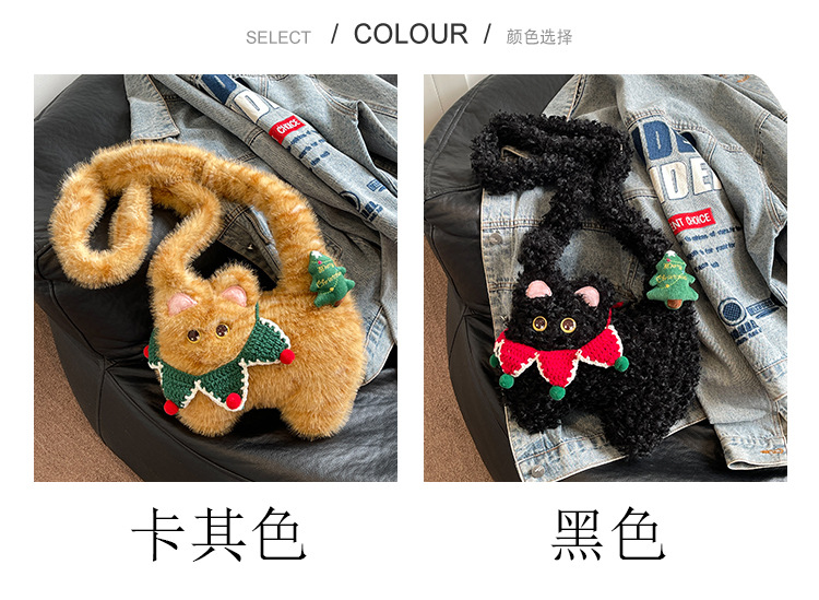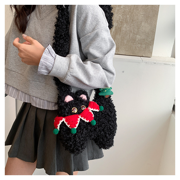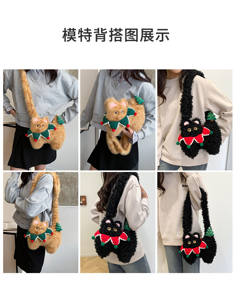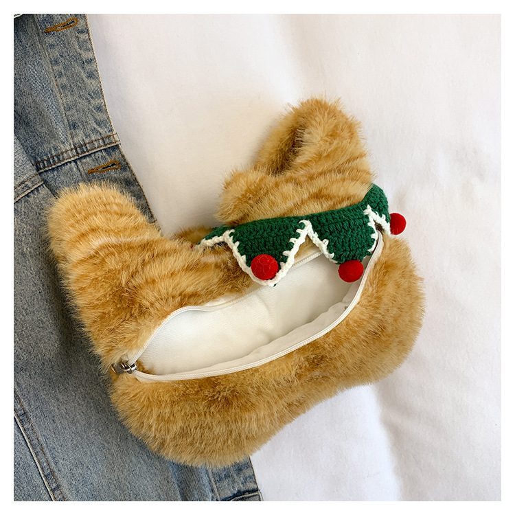 틈새 디자인 귀여운 봉제 가방 2024 가을과 겨울 슈퍼 귀여운 고양이 크로스 바디 가방 여성의 새로운 도착 어깨 가방