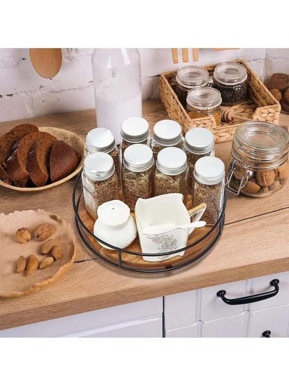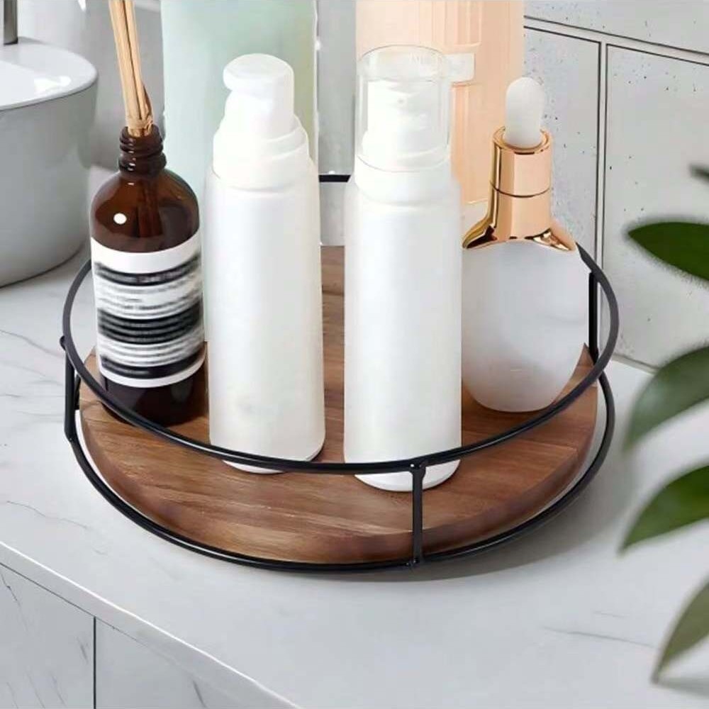 나무 라운드 회전 저장 랙 주방 향신료 병 저장 랙 데스크탑 턴테이블 저장 랙 솔리드 우드 저장 트레이