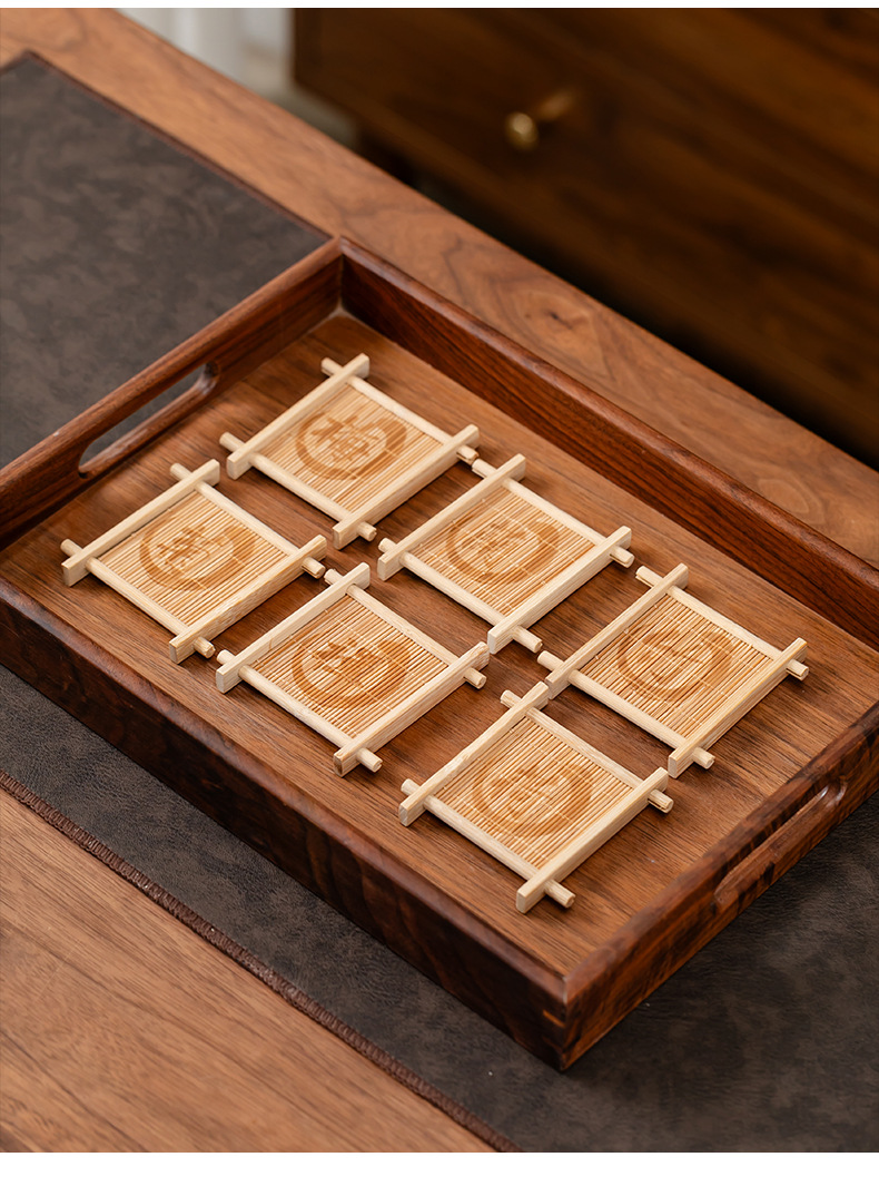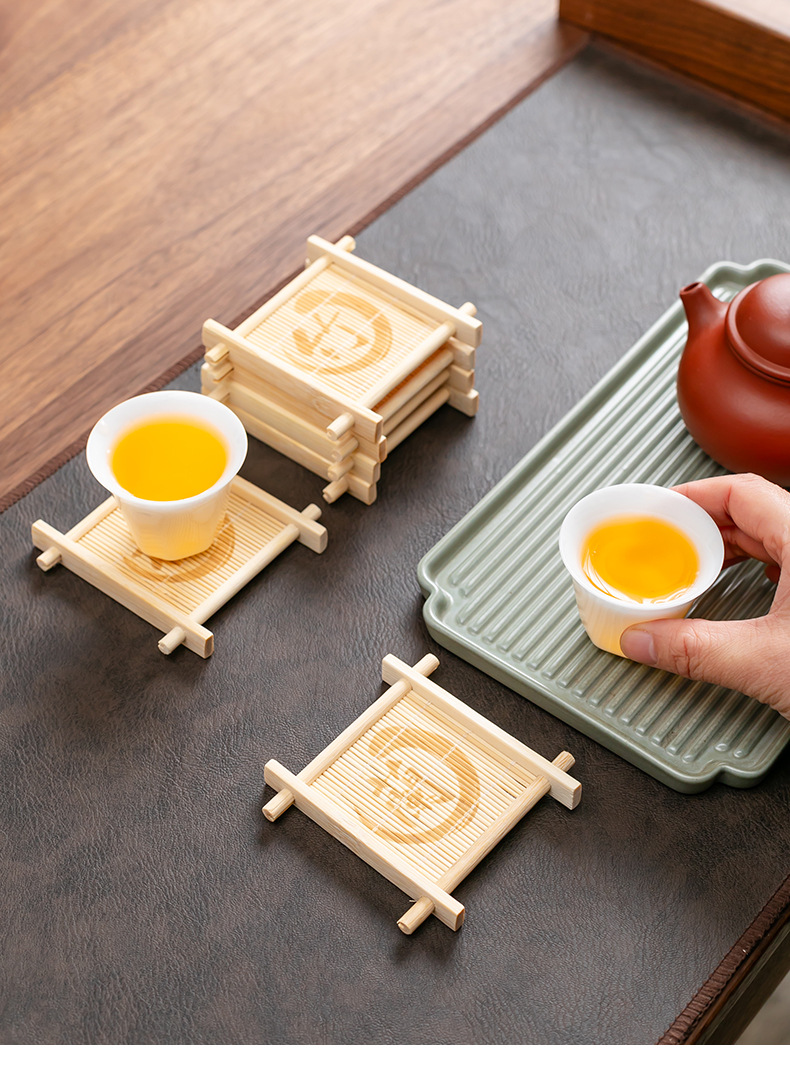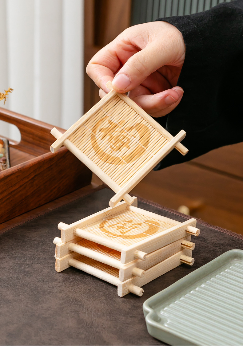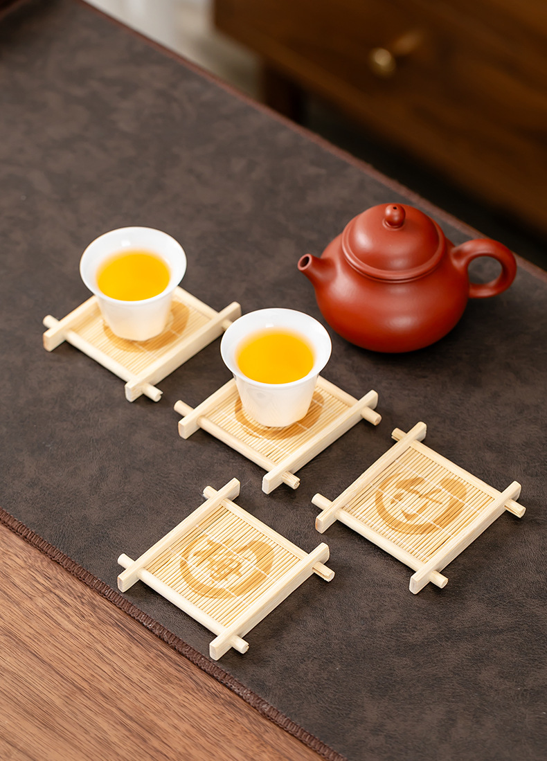 틱 나무 차 코스터 가정용 쿵푸 차 세트 액세서리 대나무 사각형 원형 차 코스터 단열 패드 컵 홀더