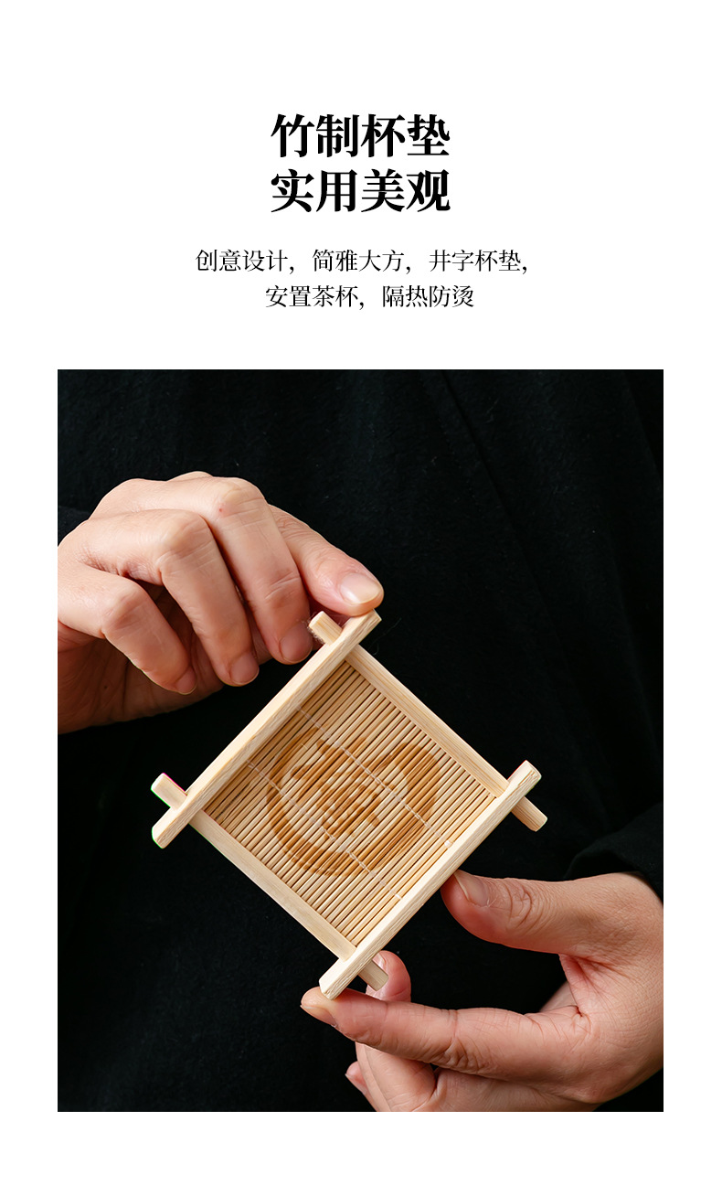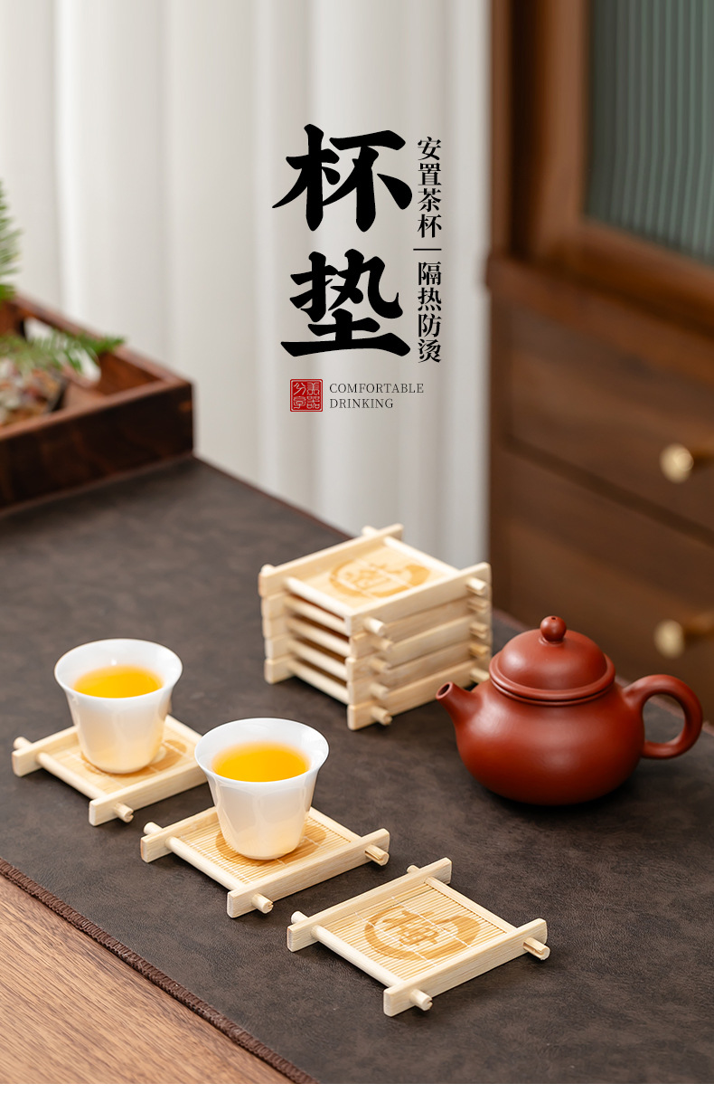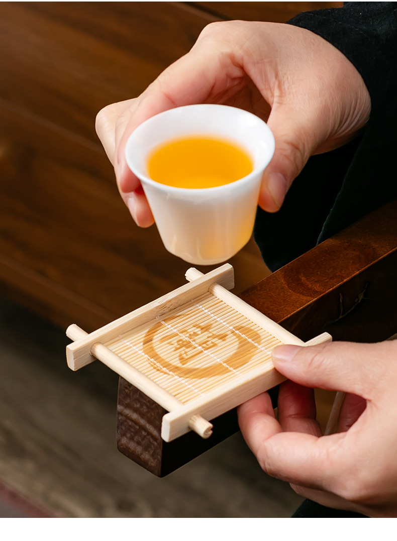 틱 나무 차 코스터 가정용 쿵푸 차 세트 액세서리 대나무 사각형 원형 차 코스터 단열 패드 컵 홀더