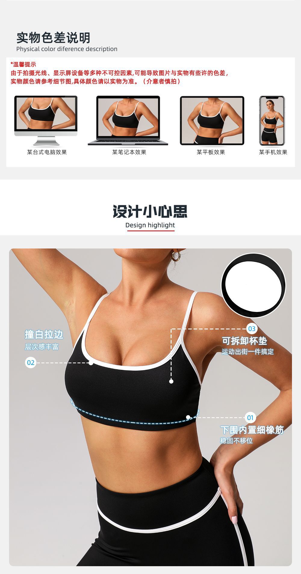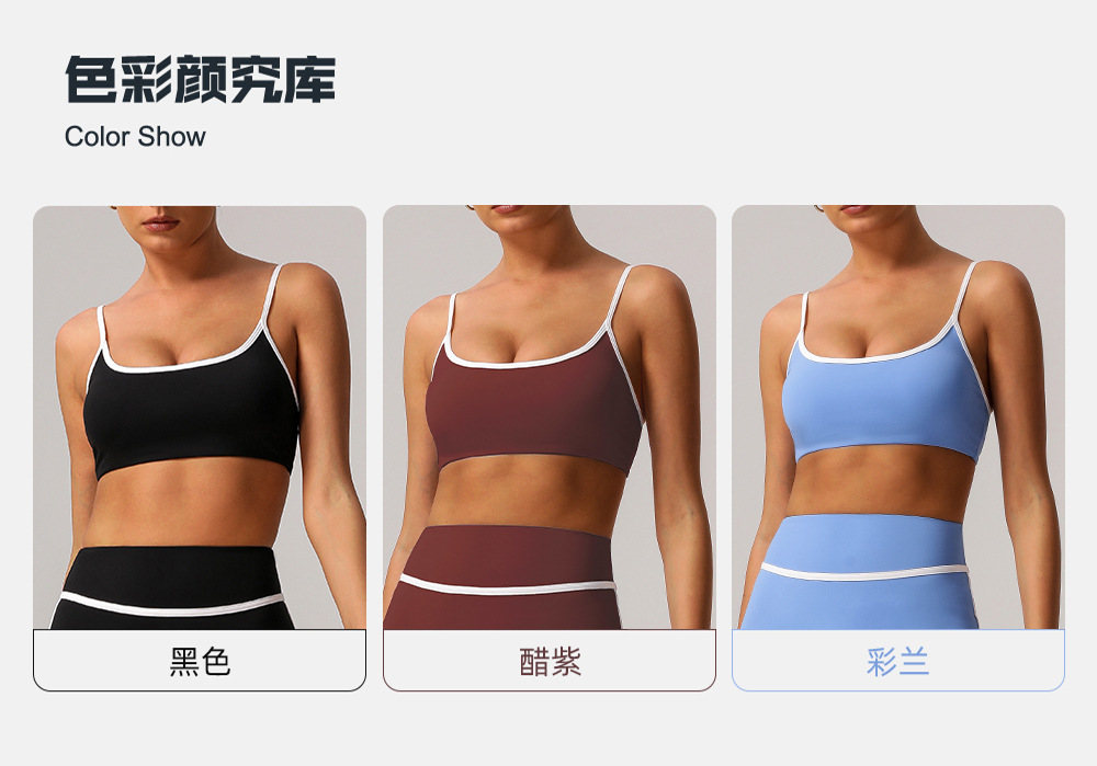 대외 무역 명암 컬러 얇은 벨트 빠른 건조 스포츠 속옷 가죽 충격 방지 벨트 패딩 요가 브래지어 야외 달리기 피트니스 착용