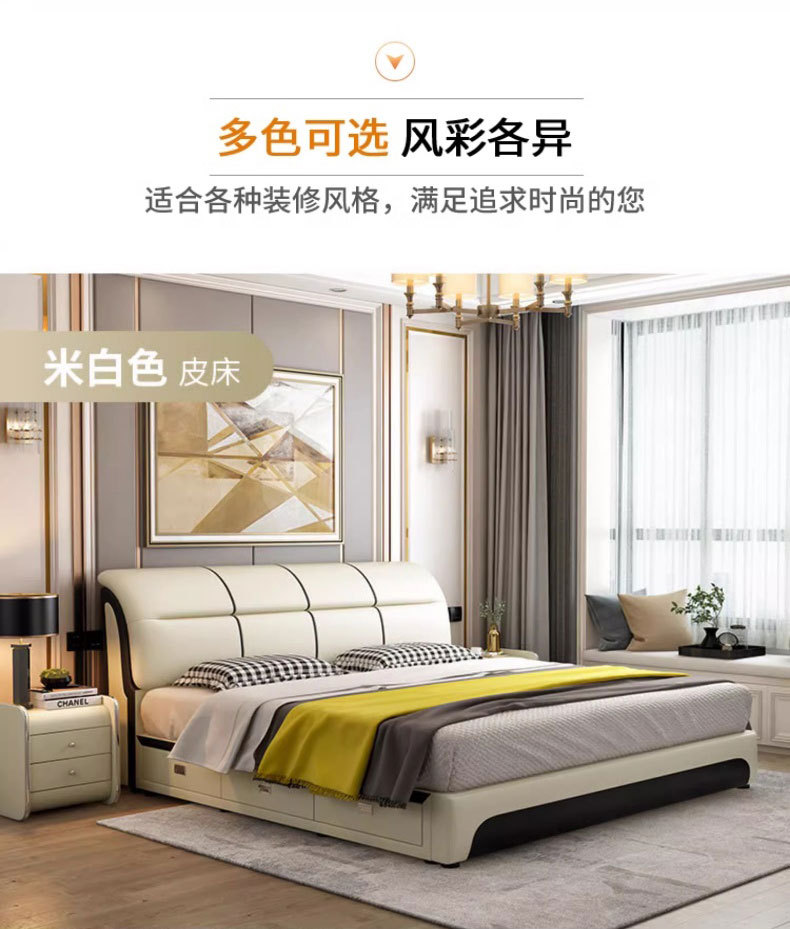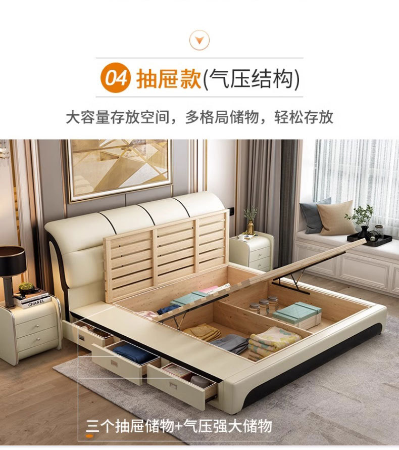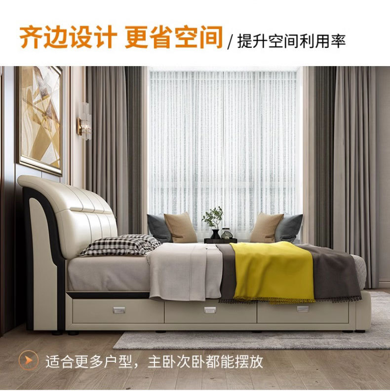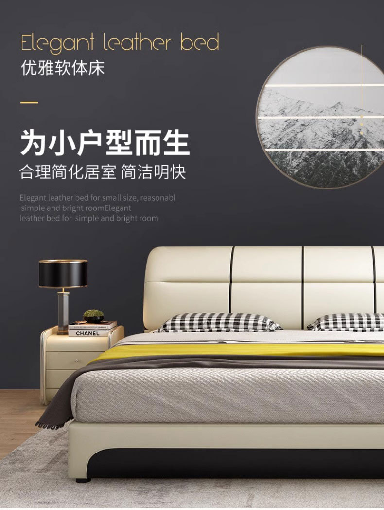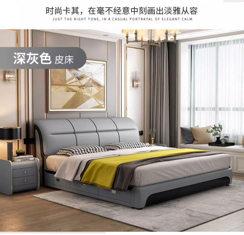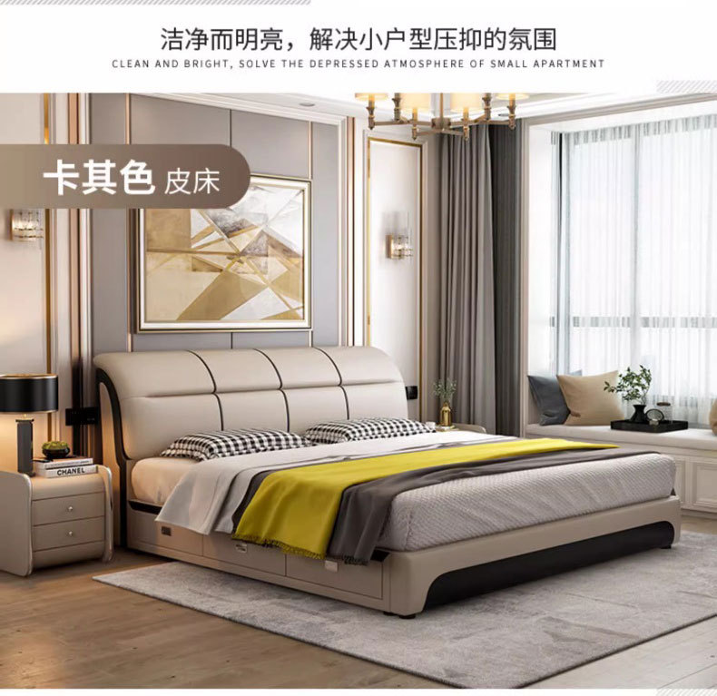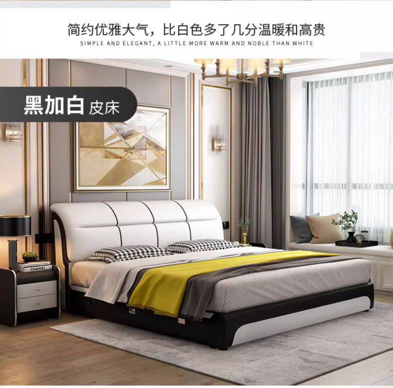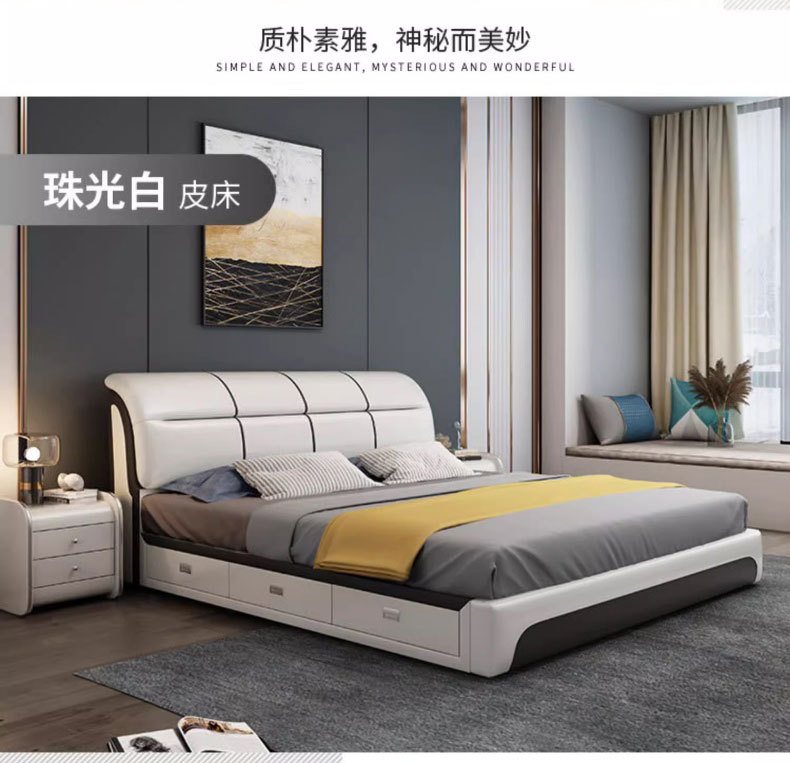 이탈리아 미니멀리스트 가죽 침대 가죽 침대 조명 럭셔리 현대 간단한 소프트 가방 보관 1.8M 마스터 침실 더블 침대 웨딩 침대 퀸 침대