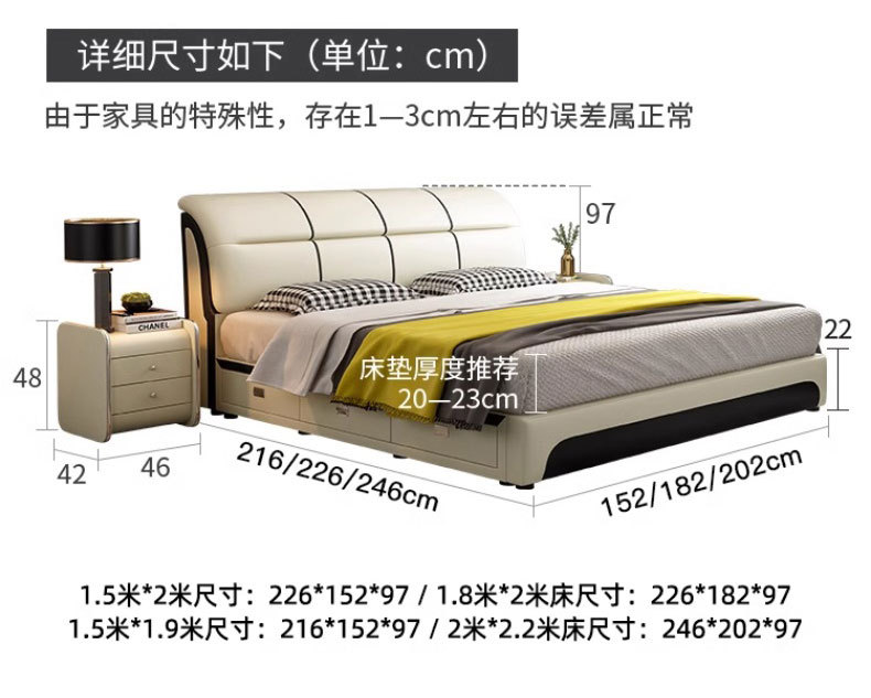 • 가죽 침대 + 벨벳 드림 슈 척추 매트리스 + 침대 옆 테이블 * 1
