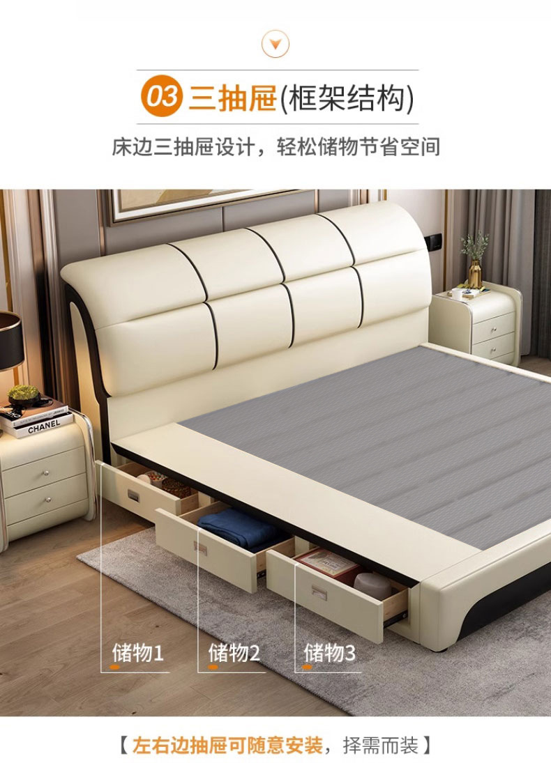 • 가죽 침대 + 벨벳 드림 슈 척추 매트리스 + 침대 옆 테이블*2
