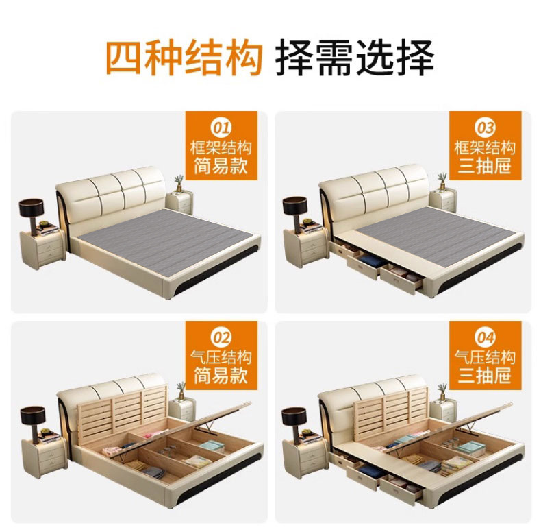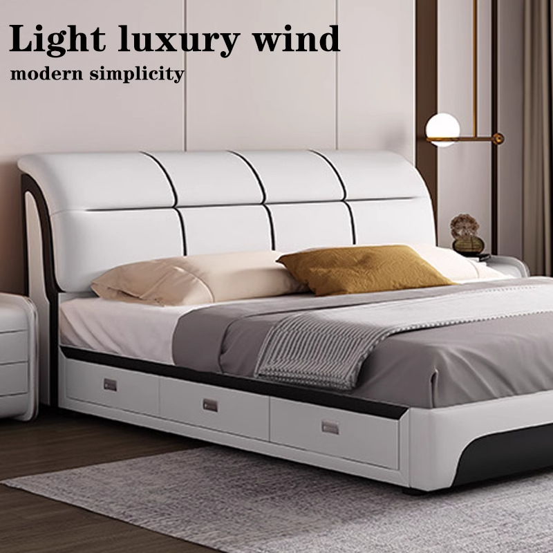 이탈리아 미니멀리스트 가죽 침대 가죽 침대 조명 럭셔리 현대 간단한 소프트 가방 보관 1.8M 마스터 침실 더블 침대 웨딩 침대 퀸 침대스토어 가기