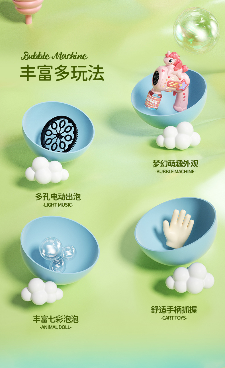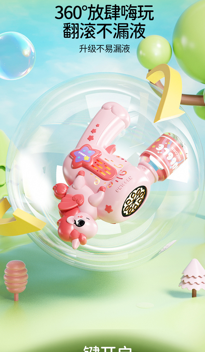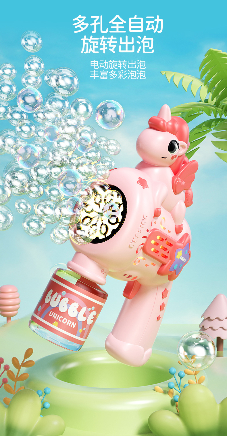 새로운 완전 자동 유니콘 버블 머신 장난감 다공성 거품 방수 전기 어린이 생일 선물 남녀