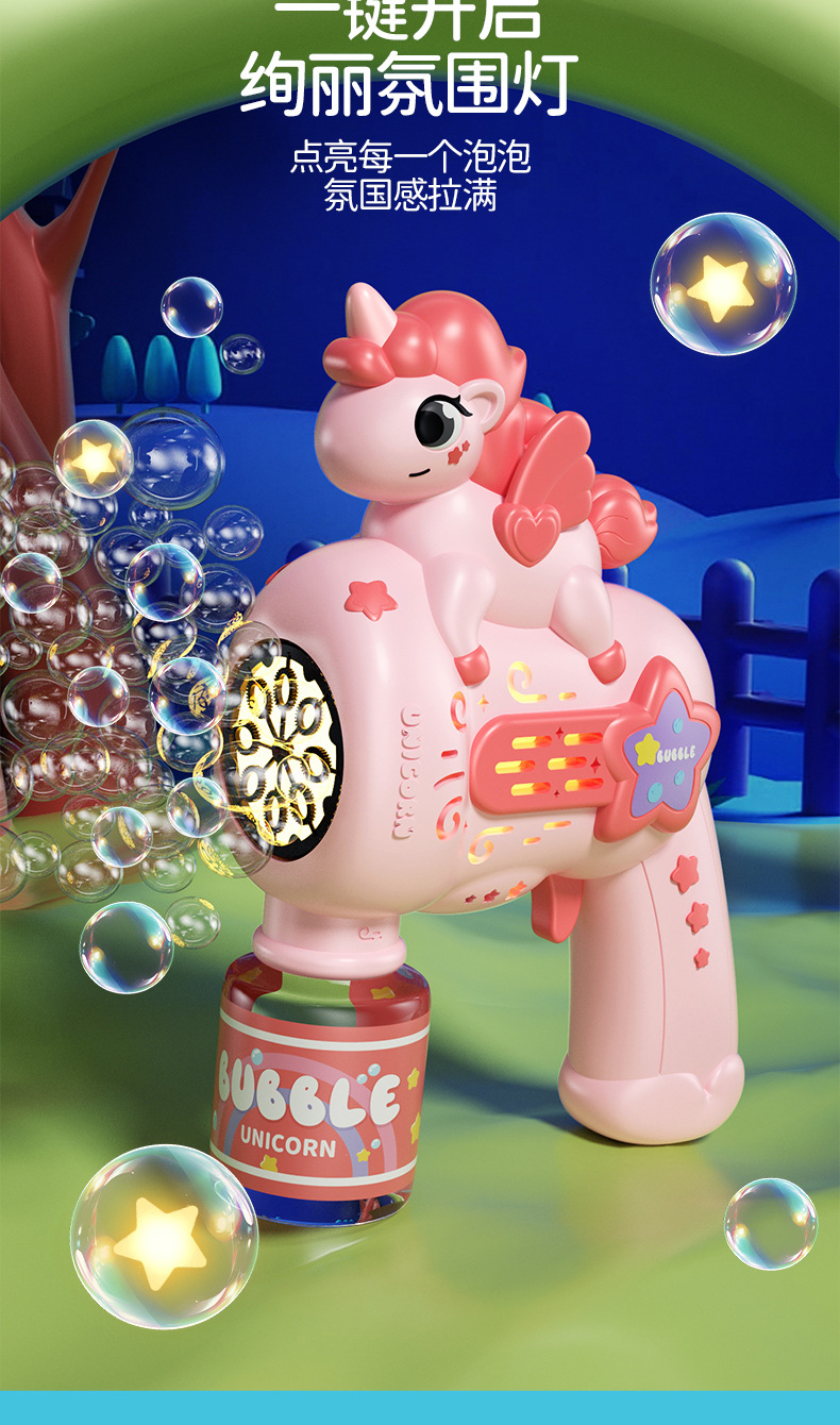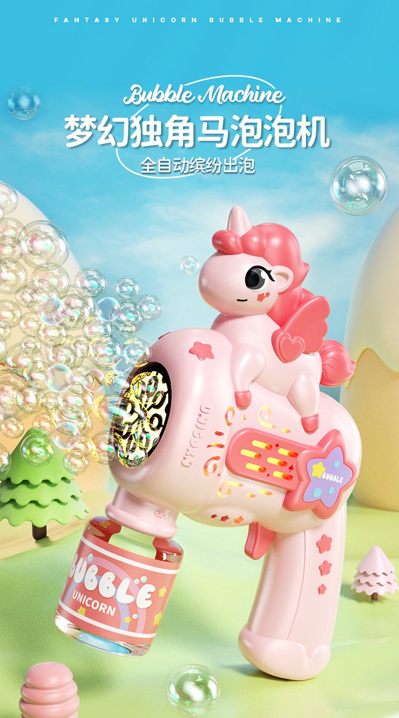 새로운 완전 자동 유니콘 버블 머신 장난감 다공성 거품 방수 전기 어린이 생일 선물 남녀스토어 가기