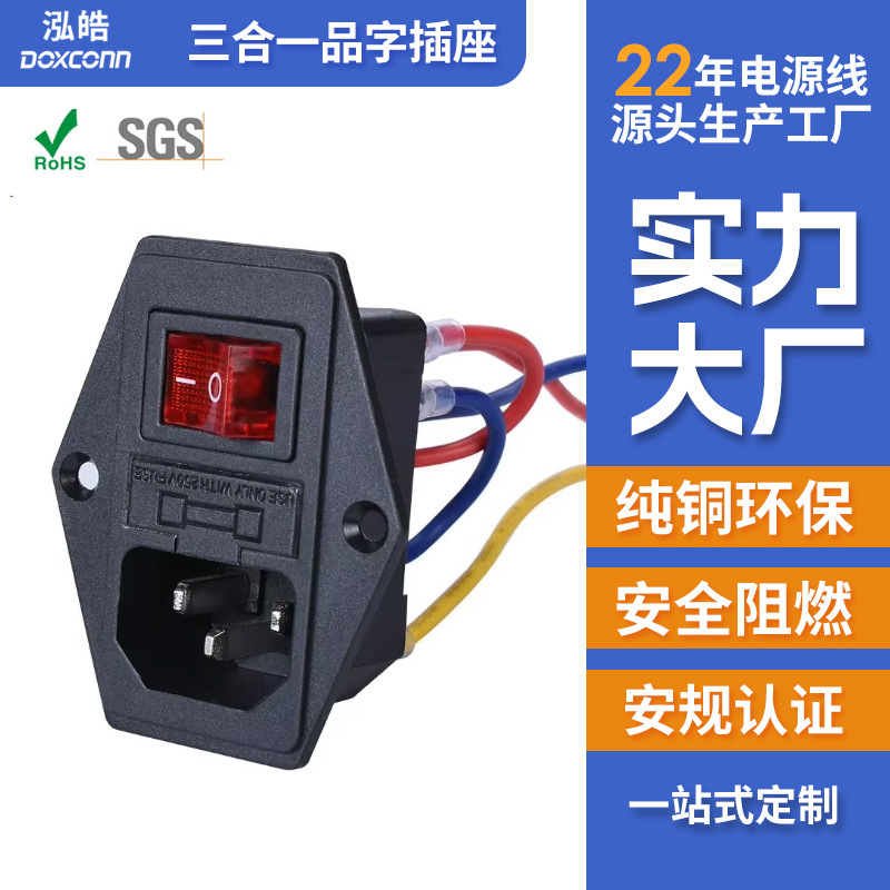 스위치가 있는 AC 전원 소켓, 퓨즈가 있는 3-in-1 소켓, 와이어와 이어가 있는 3D 프린터 소켓스토어 가기