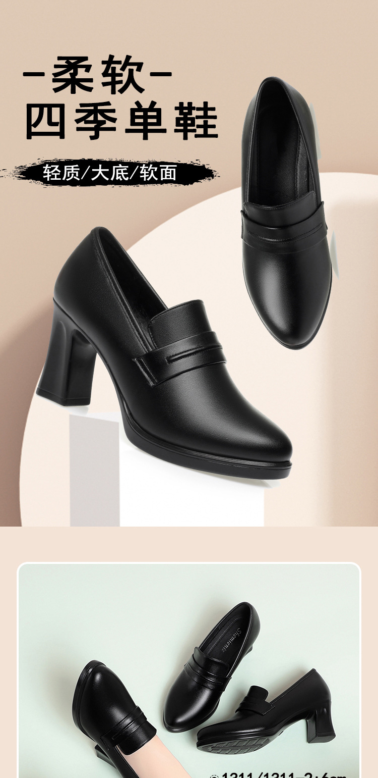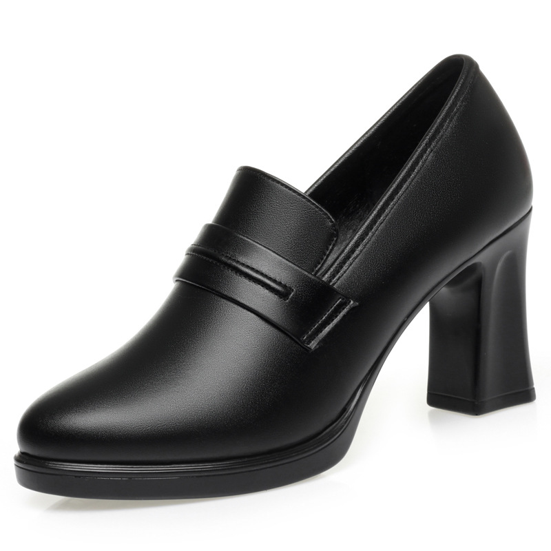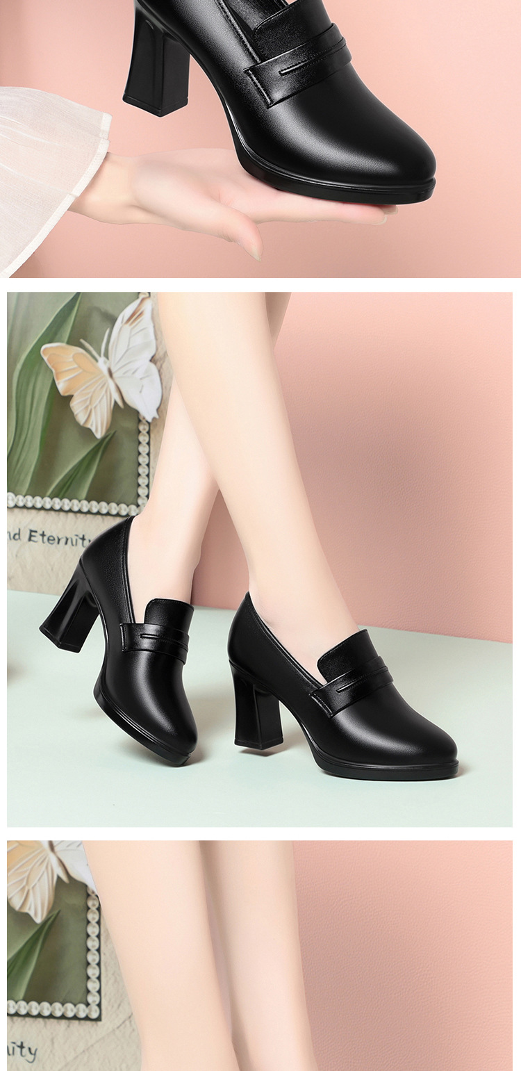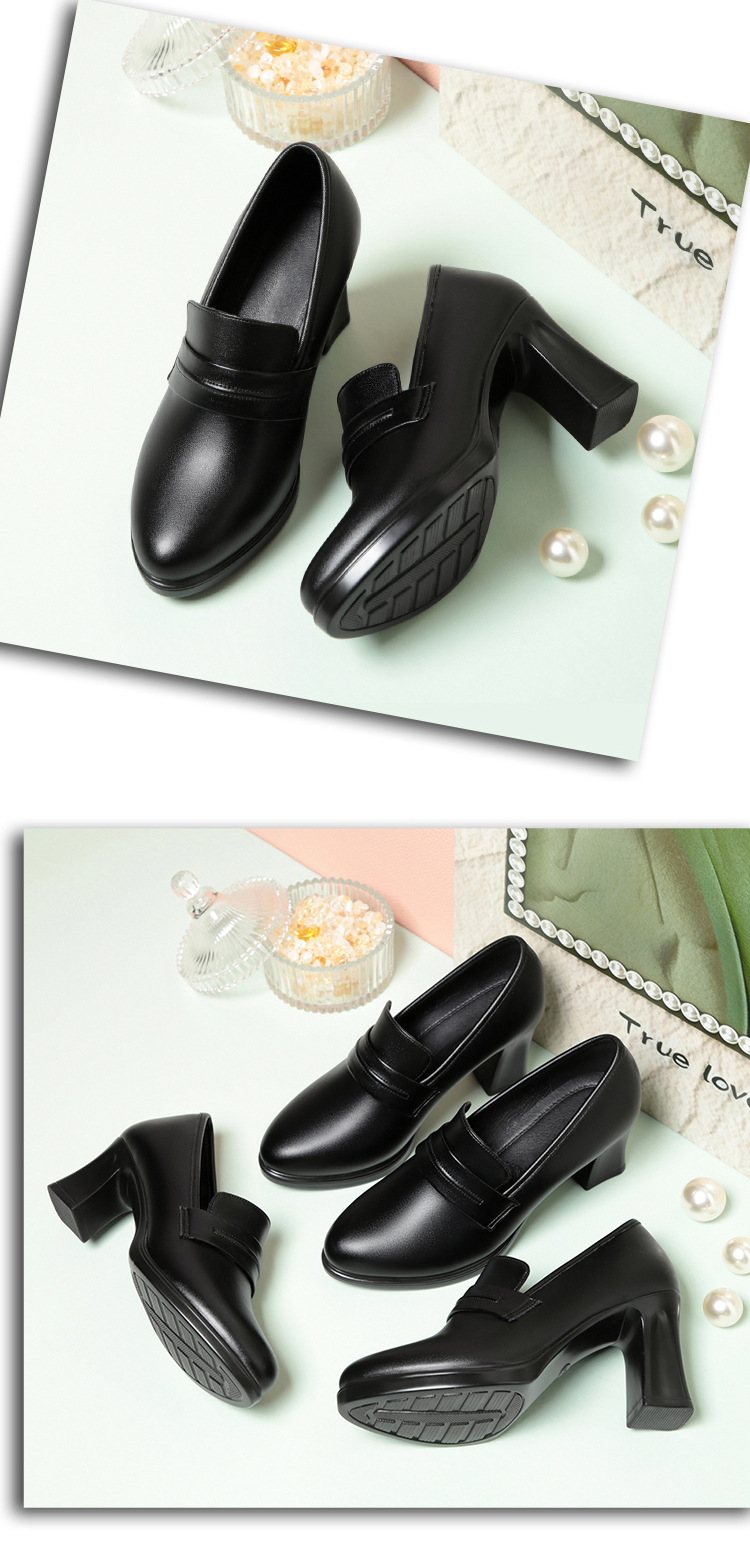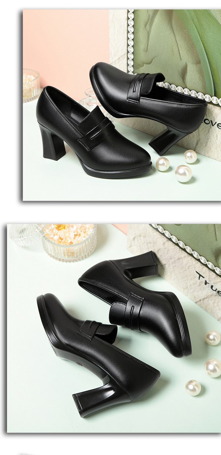 정품 가죽 기모 하이힐 싱글 레이어 신발 여성의 2025 년 봄과 가을 새로운 두꺼운 굽 플랫폼 두꺼운 밑창 중간 굽의 우아한 깊은 입 가죽 신발스토어 가기