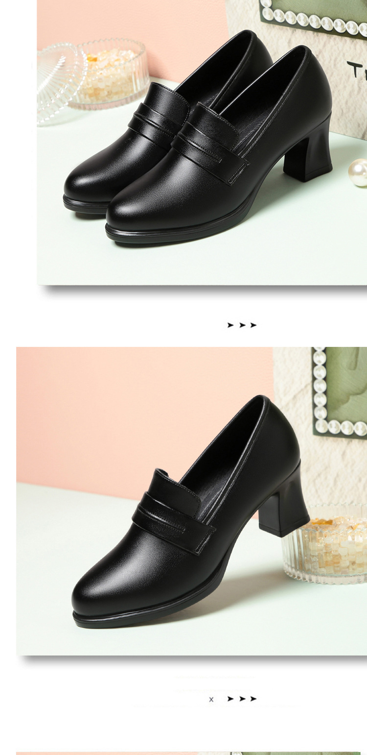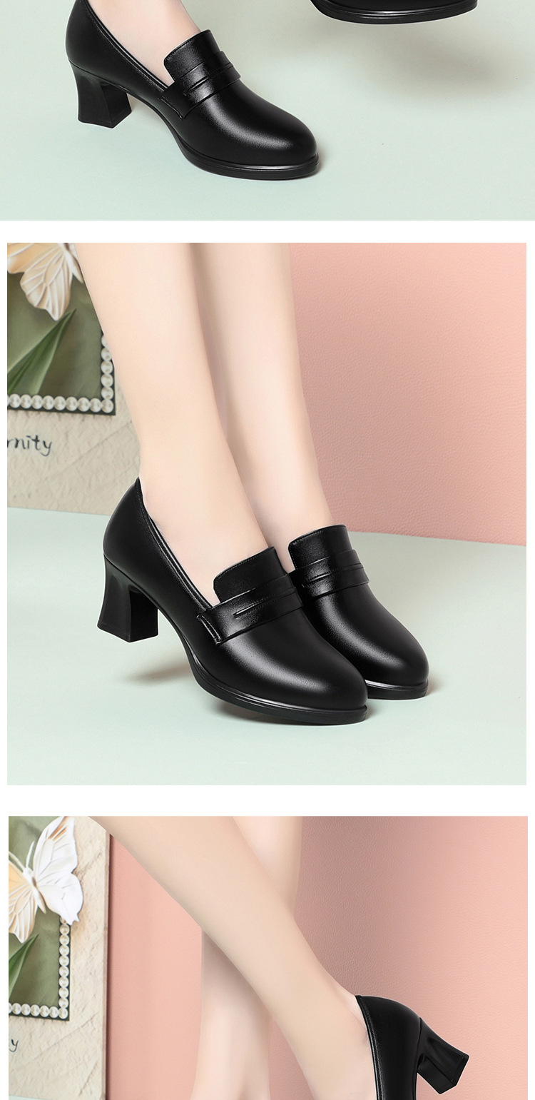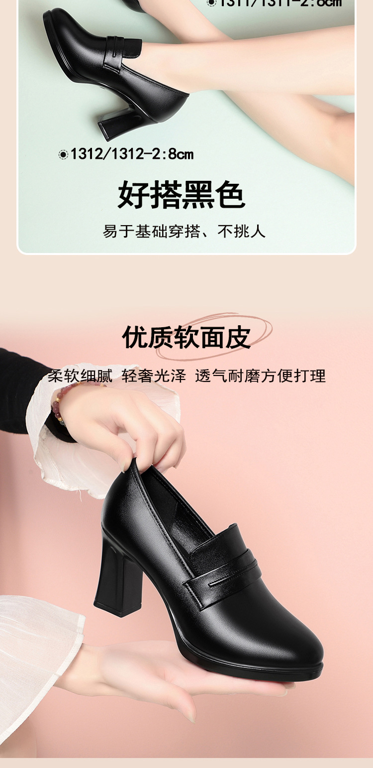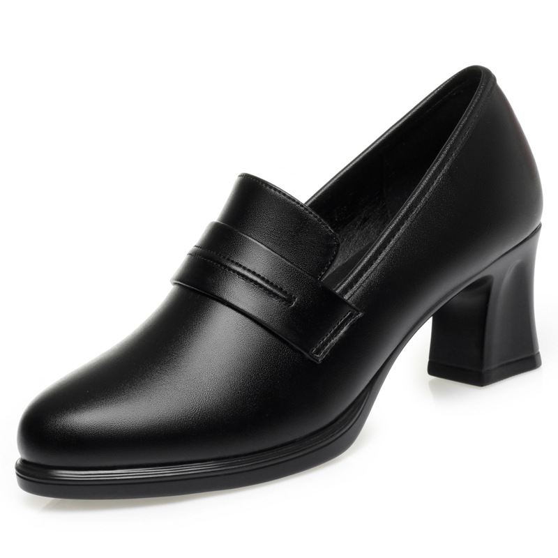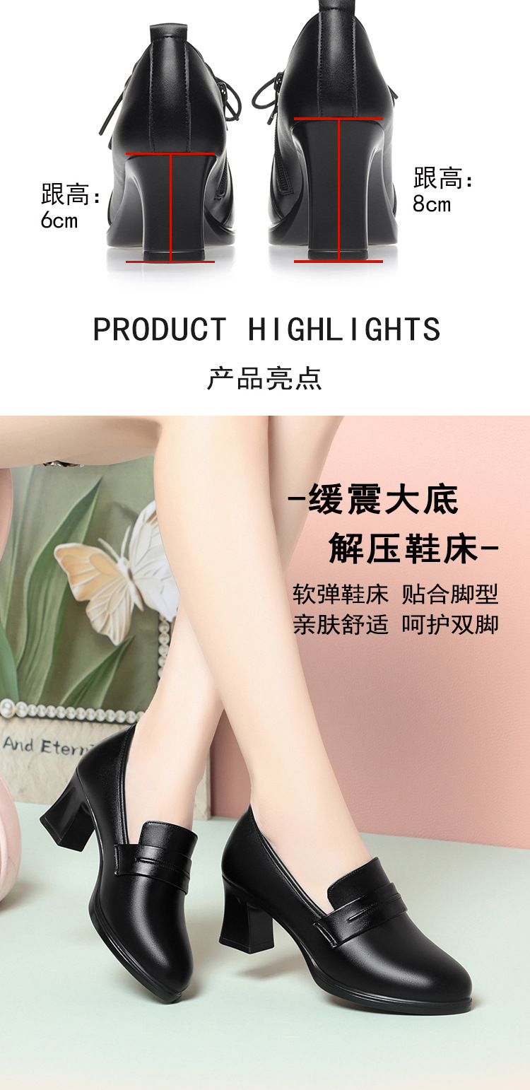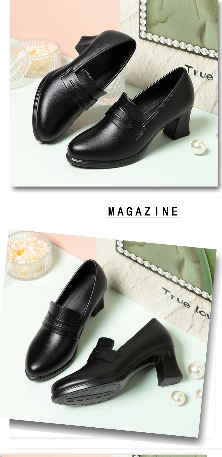 정품 가죽 기모 하이힐 싱글 레이어 신발 여성의 2025 년 봄과 가을 새로운 두꺼운 굽 플랫폼 두꺼운 밑창 중간 굽의 우아한 깊은 입 가죽 신발스토어 가기