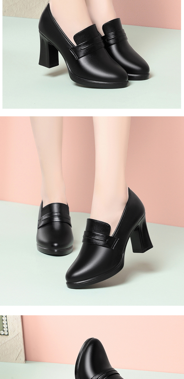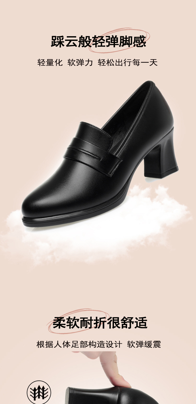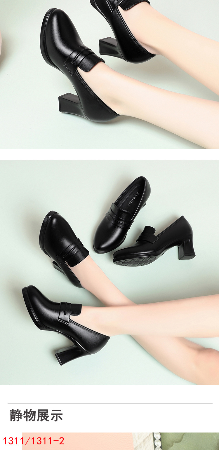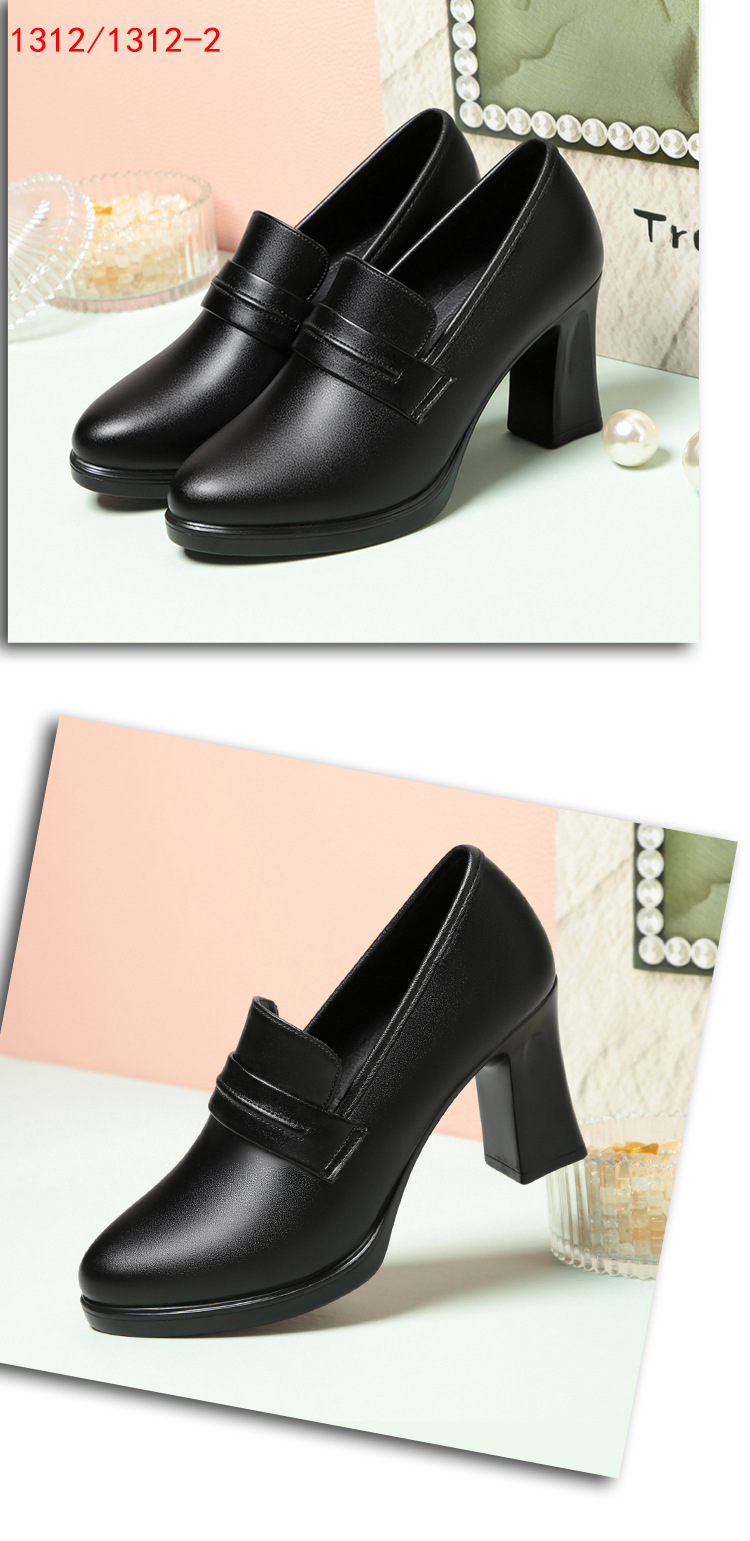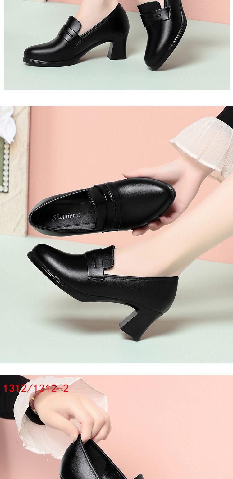 정품 가죽 기모 하이힐 싱글 레이어 신발 여성의 2025 년 봄과 가을 새로운 두꺼운 굽 플랫폼 두꺼운 밑창 중간 굽의 우아한 깊은 입 가죽 신발스토어 가기
