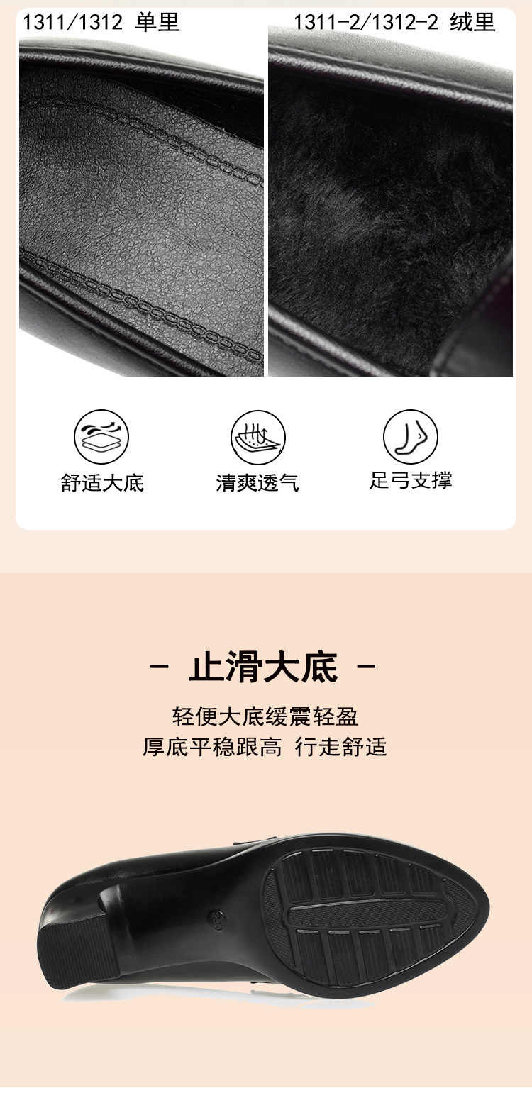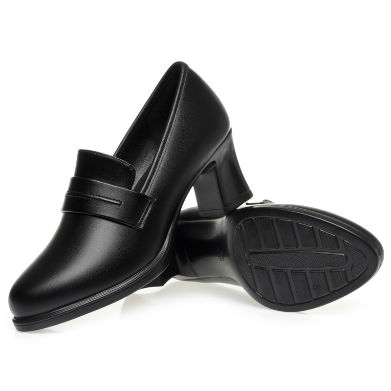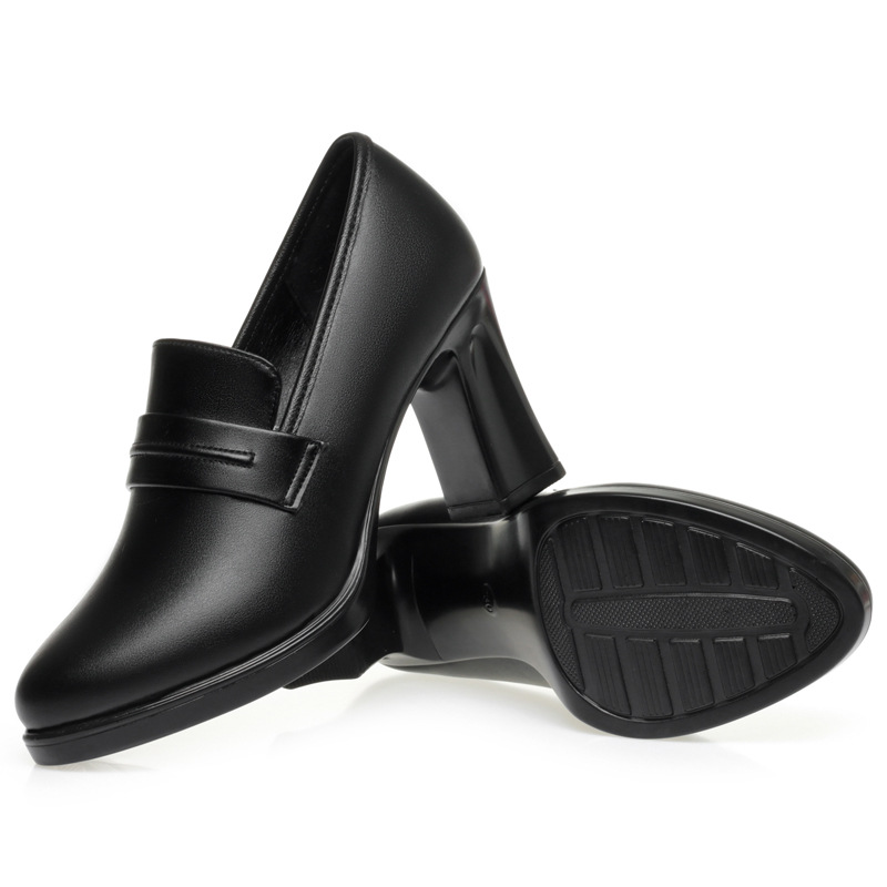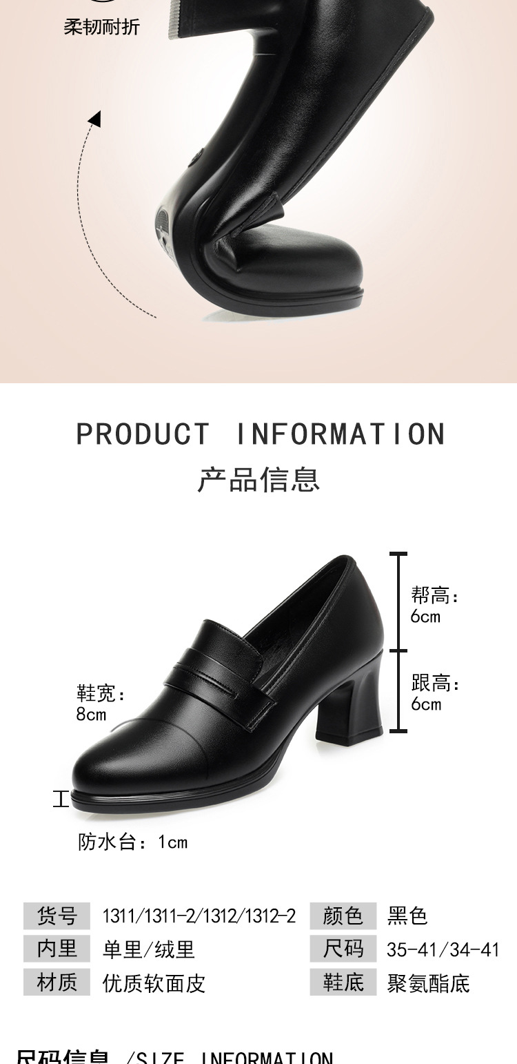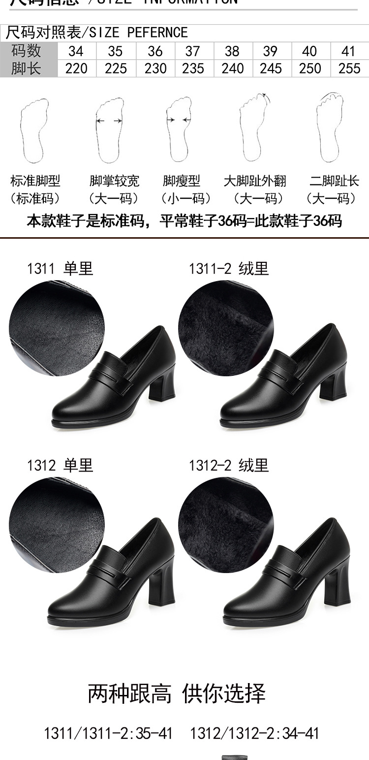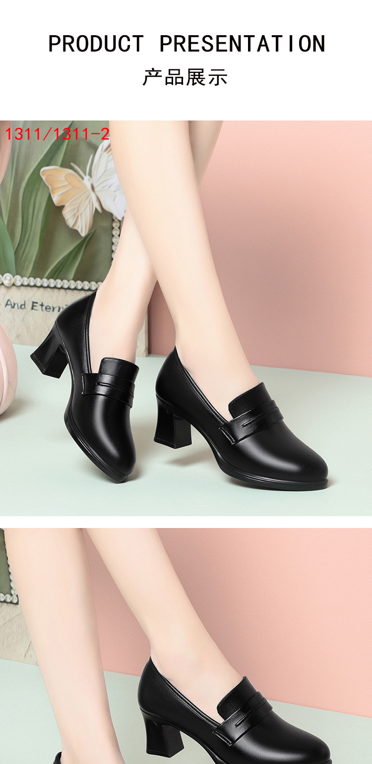 정품 가죽 기모 하이힐 싱글 레이어 신발 여성의 2025 년 봄과 가을 새로운 두꺼운 굽 플랫폼 두꺼운 밑창 중간 굽의 우아한 깊은 입 가죽 신발스토어 가기