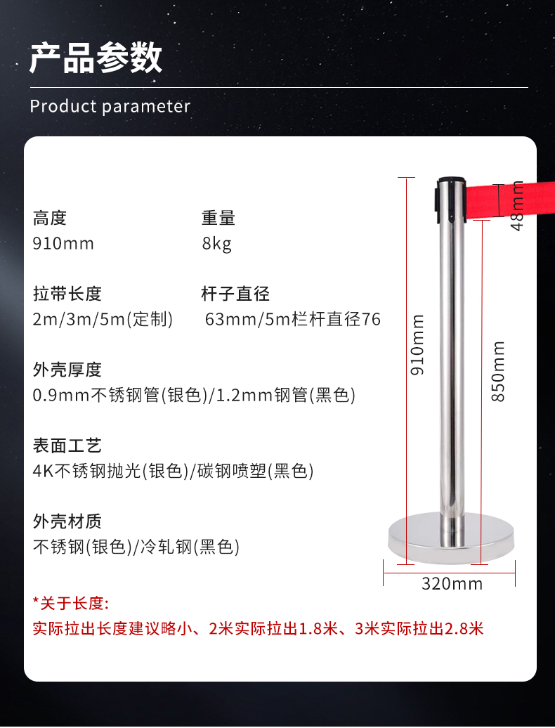 격리 벨트 텔레스코픽 벨트 1 미터 라인 가드 레일 큐잉 난간 컨시어지 폴 뱅크 펜스 포스트 안전 경고 포스트