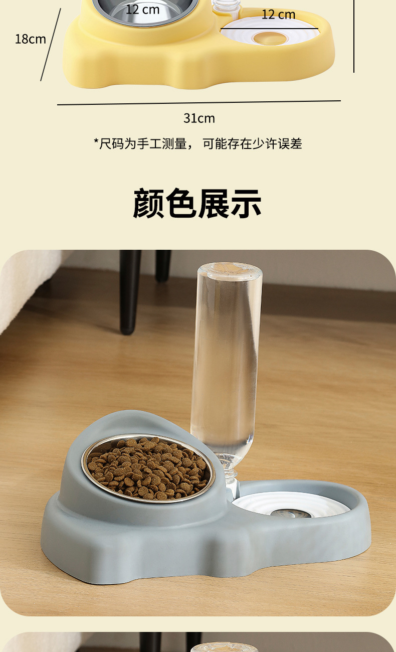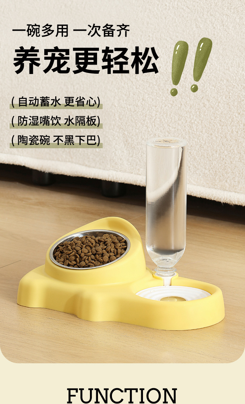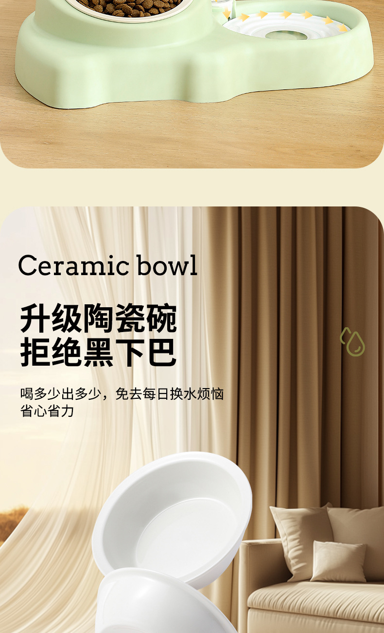 새로운 아기 코끼리 애완 동물 먹이 더블 그릇 고양이 목 보호 세라믹 그릇 자동 물 저장 고양이 그릇 개 그릇 고양이 먹이 피더