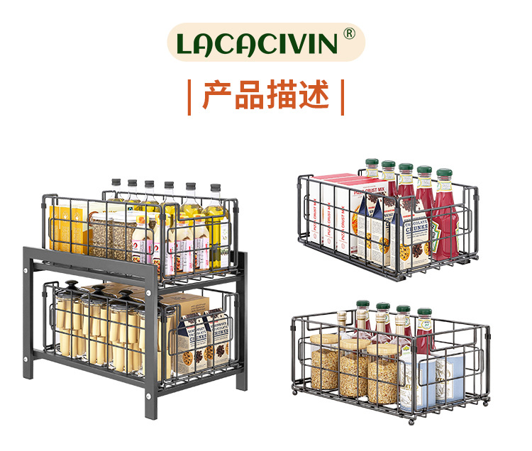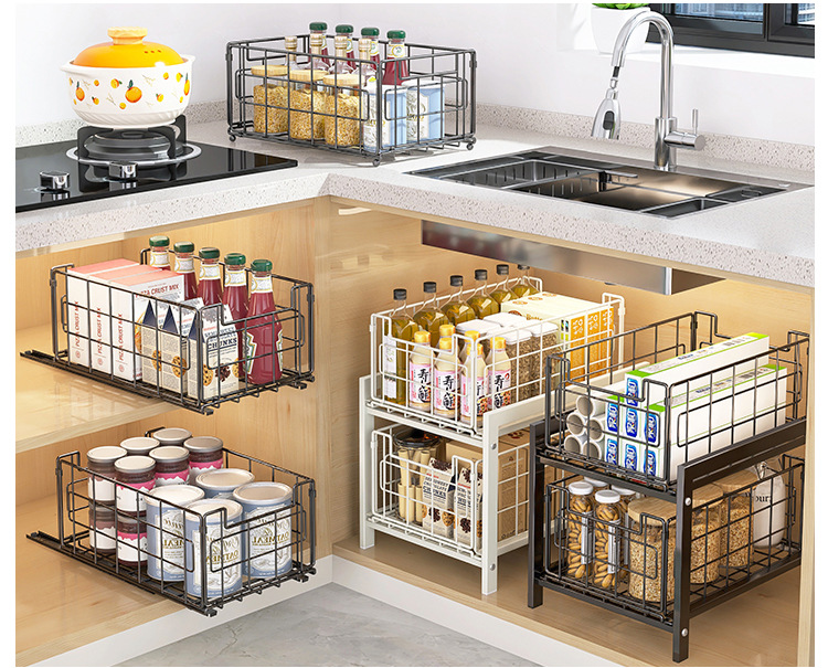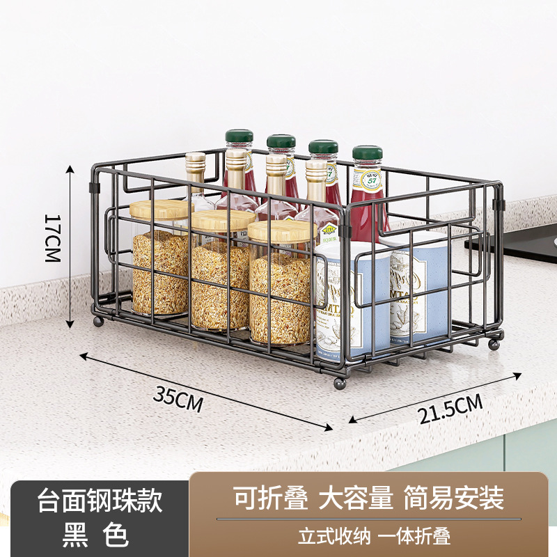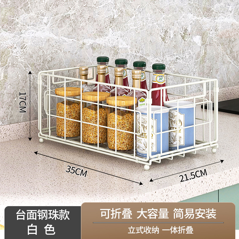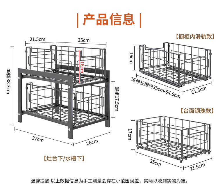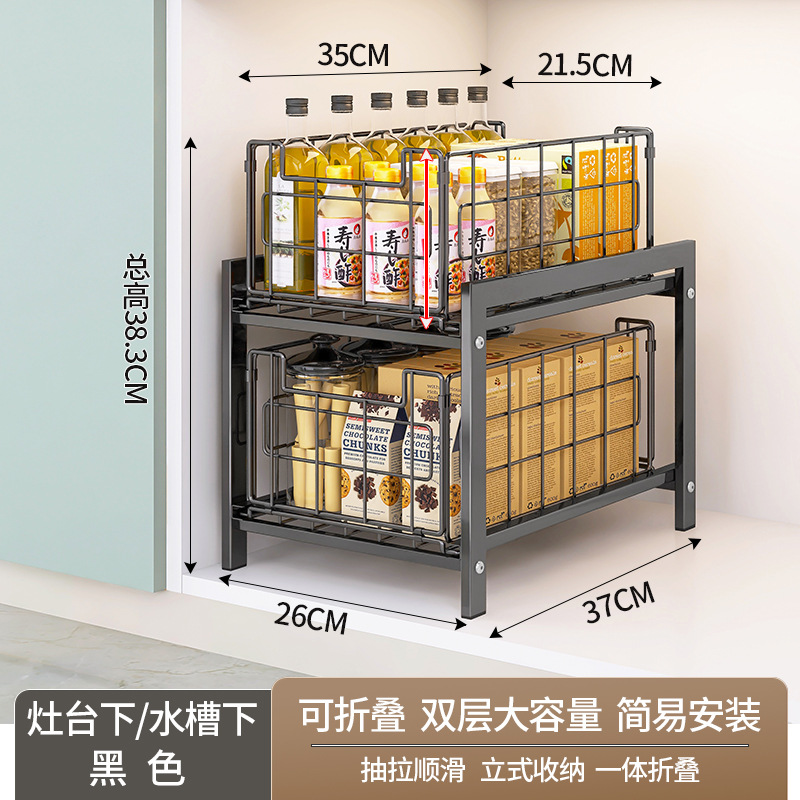 可折叠抽拉式带滑轨置物架橱柜内抽屉式调料收纳架厨房收纳置物架