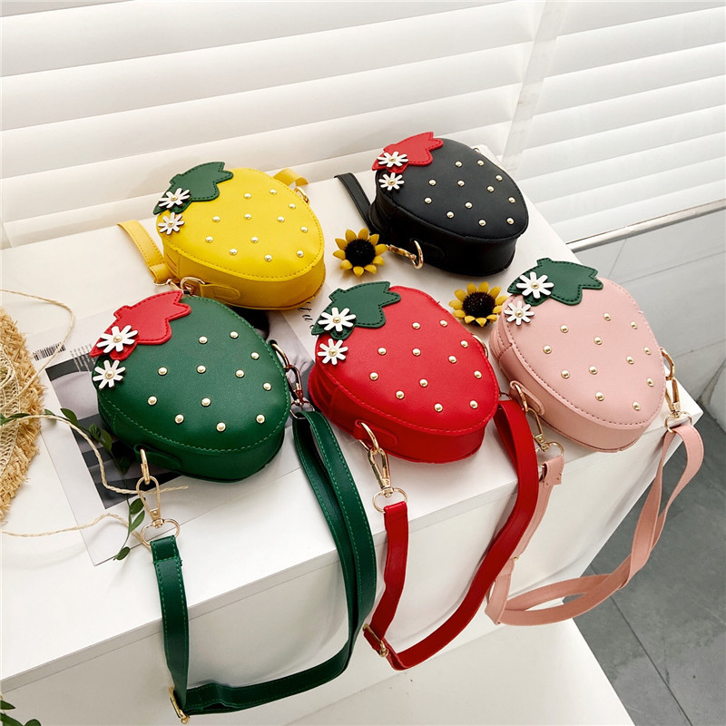 어린이 가방 작은 소녀 동전 지갑 패션 어린이 과일 액세서리 가방 귀여운 딸기 어깨 가방 크로스 바디 가방 도매