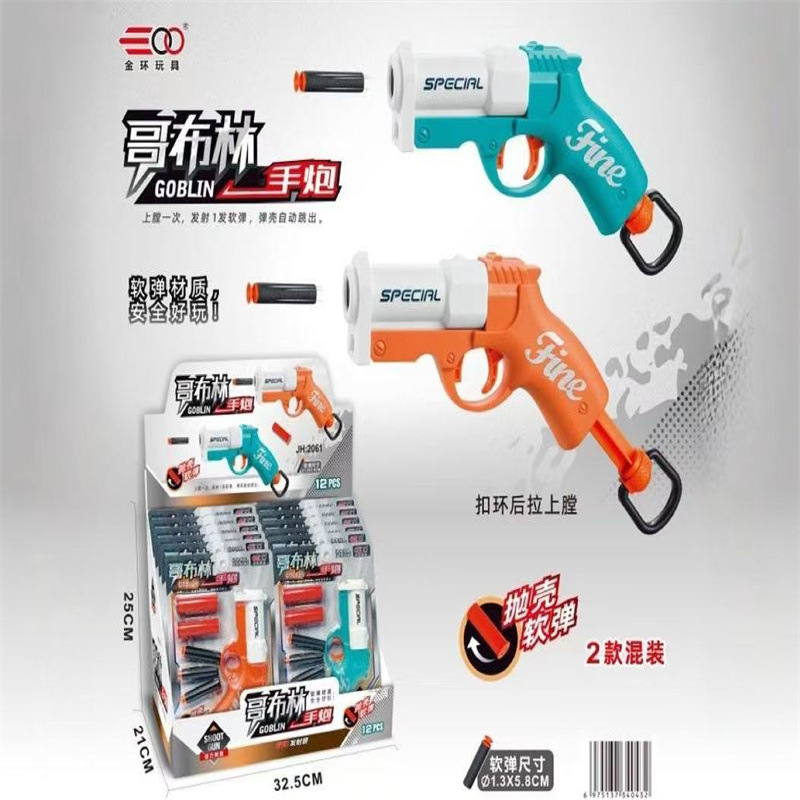 새로운 어린이 원 버튼 소프트 쉘 던지기 고블린 손 총 장난감 소년 던지기 쉘 장난감 총 발사 모델