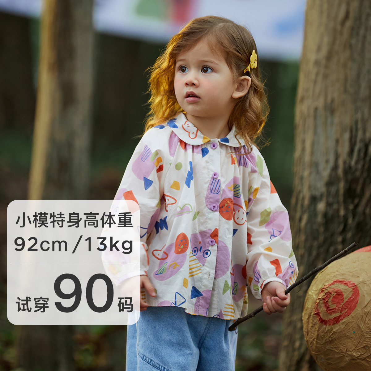 통베이 아동복 2026년 봄 신상 여아용 귀엽고 달콤한 셔츠, 베이비 풀 프린트 라지 라펠 캐주얼 상의스토어 가기