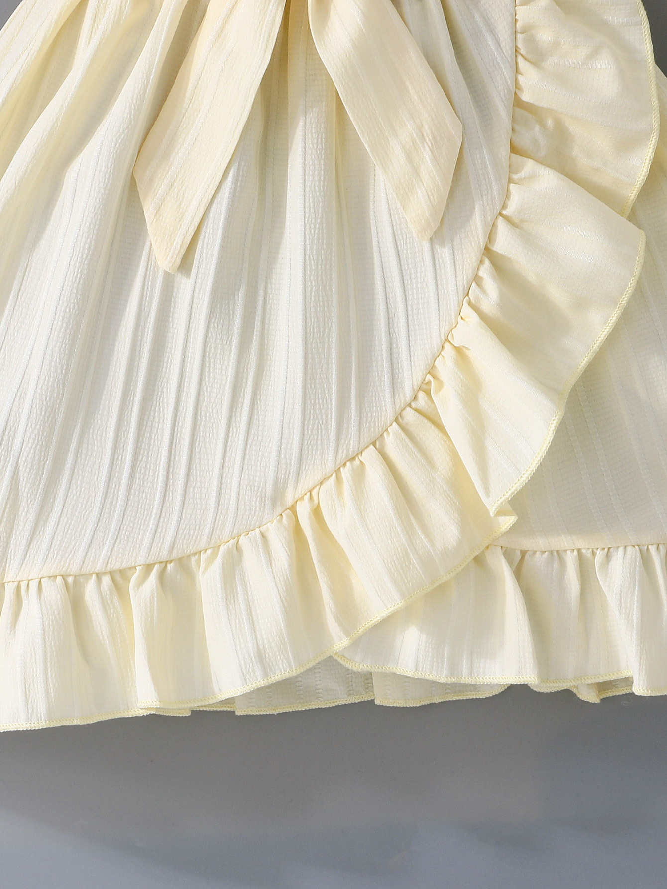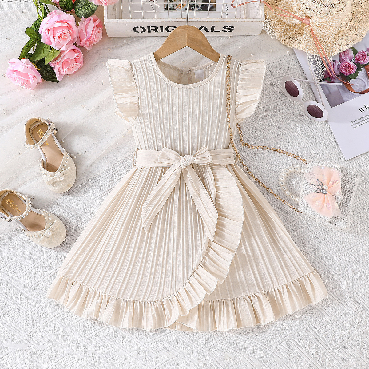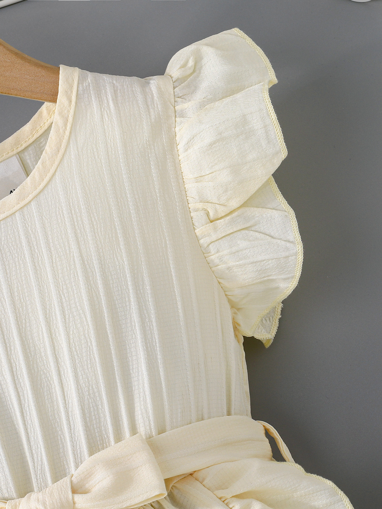 여름 패션 국경 간 전자 상거래 소녀의 웨이브 스트립 플라잉 슬리브 라운드 넥 프릴 벨트 외국 스타일 드레스