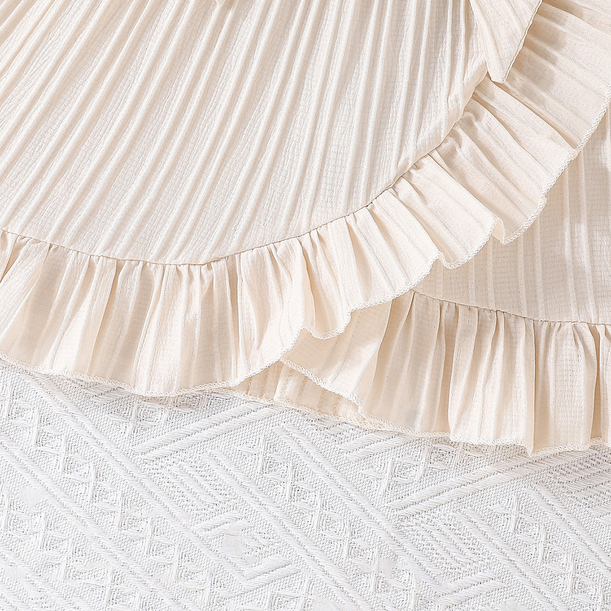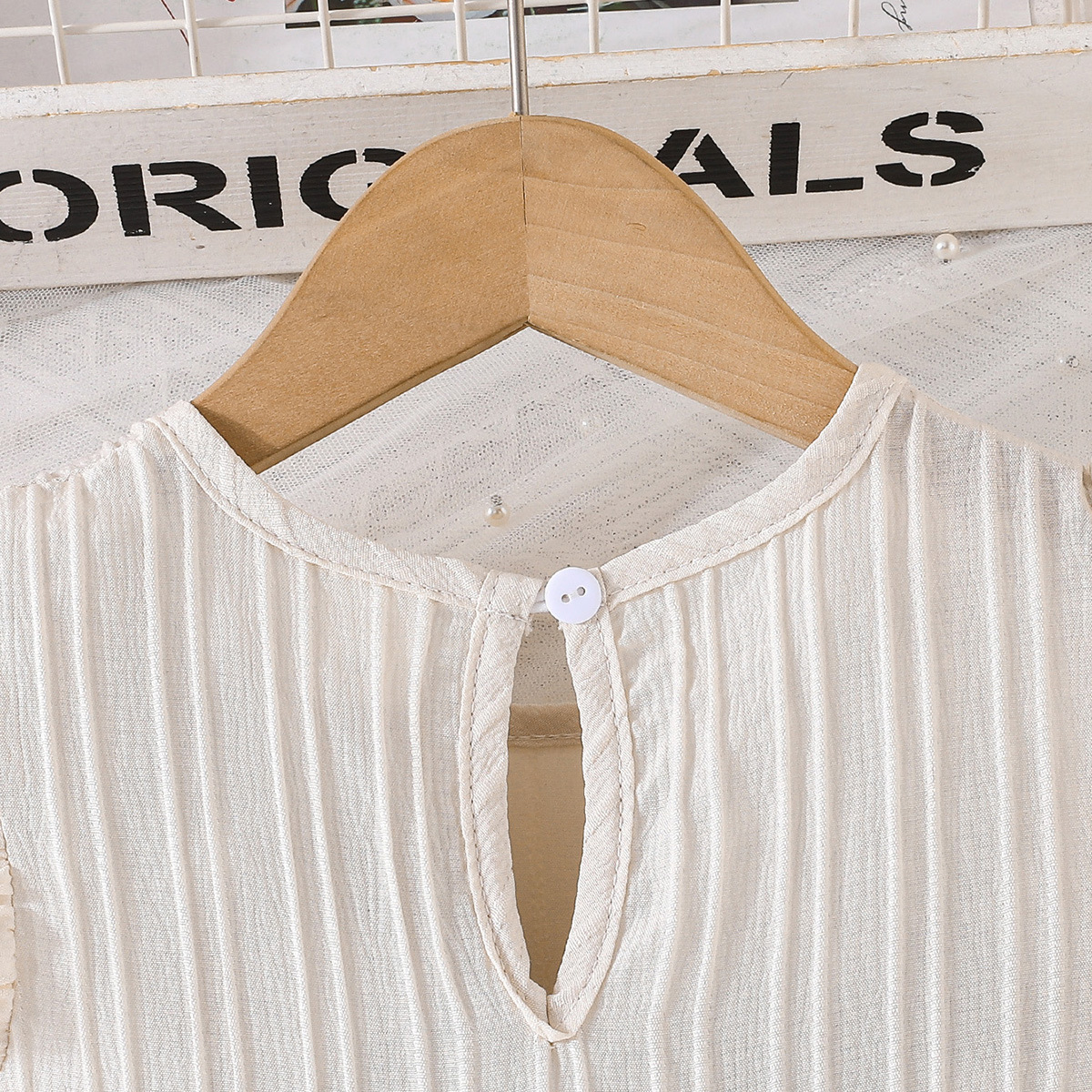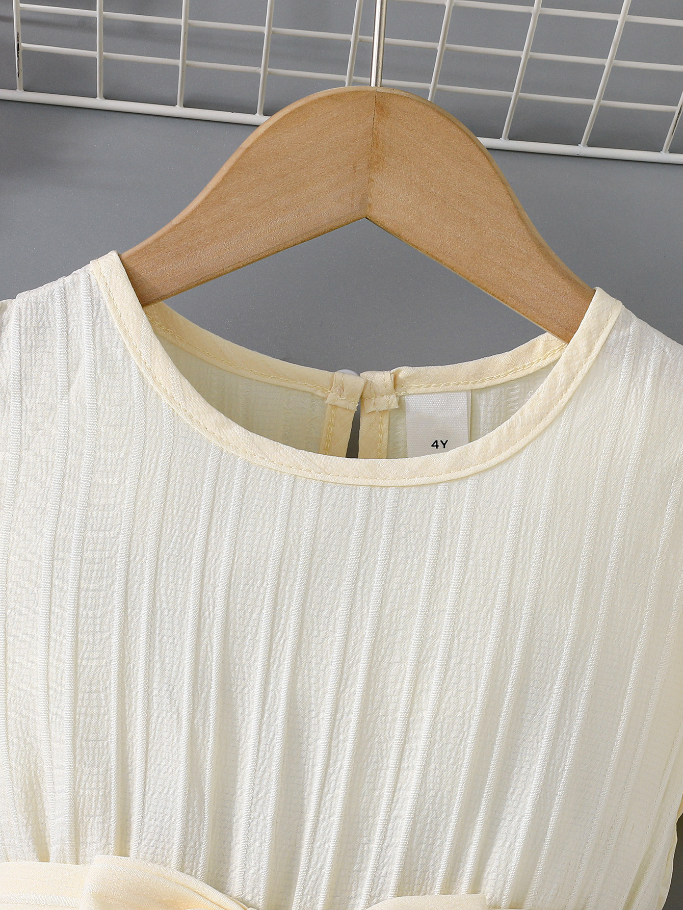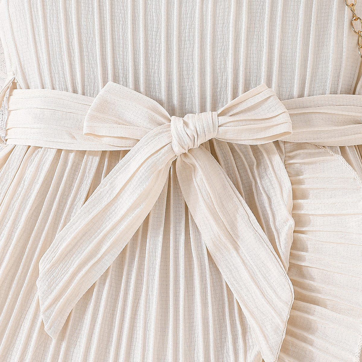 여름 패션 국경 간 전자 상거래 소녀의 웨이브 스트립 플라잉 슬리브 라운드 넥 프릴 벨트 외국 스타일 드레스