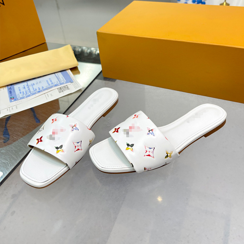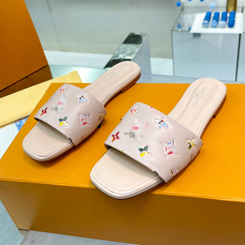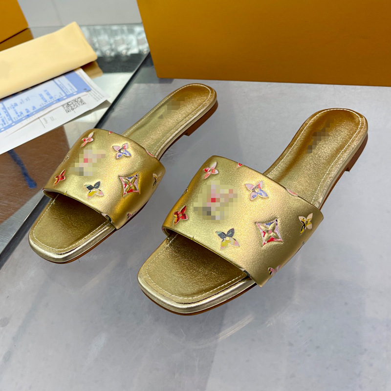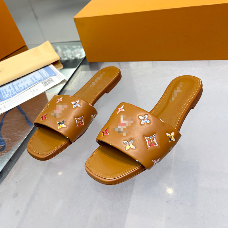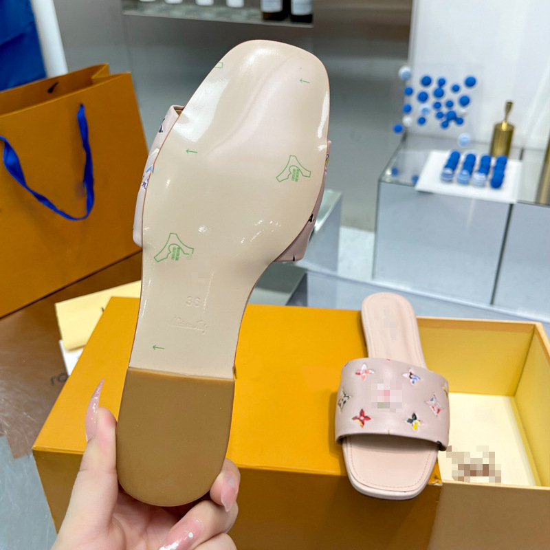 유럽과 미국의 패션 캐주얼 샌들 2025 새로운 정품 가죽 솔리드 컬러 엠보싱 플랫 슬리퍼 비치 여성의 대외 무역스토어 가기
