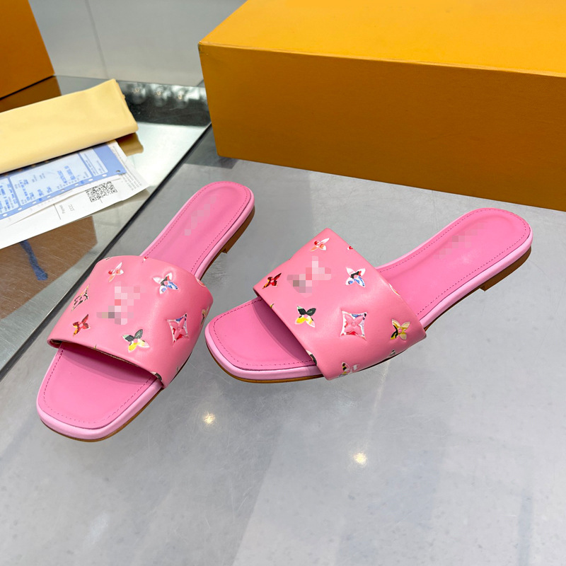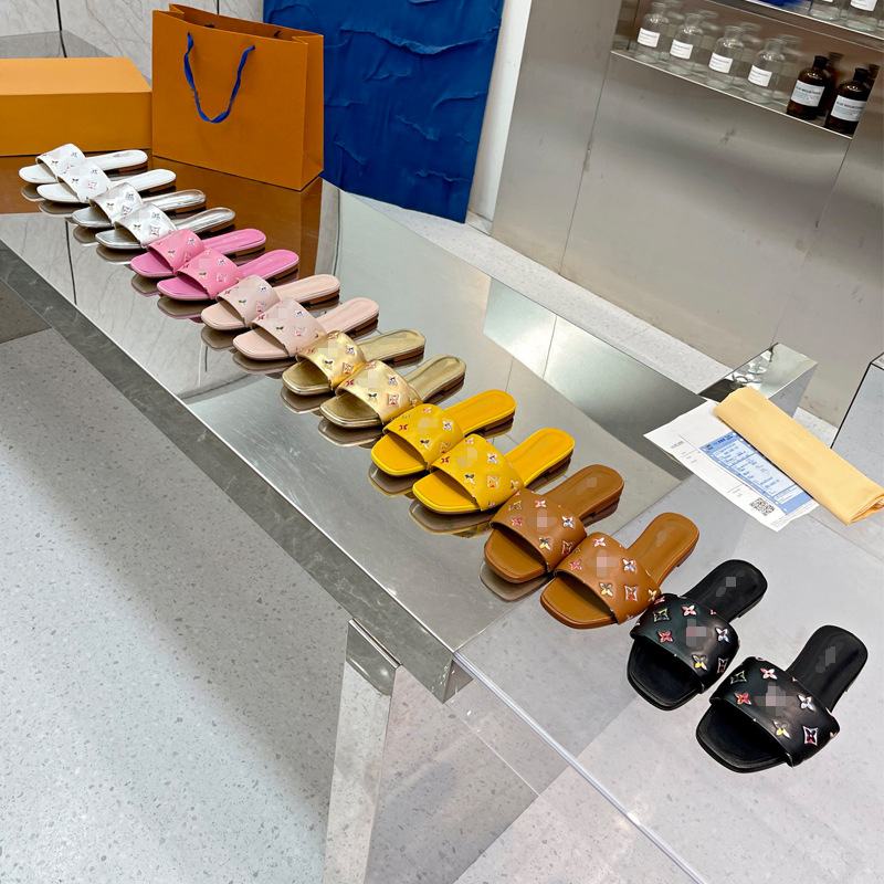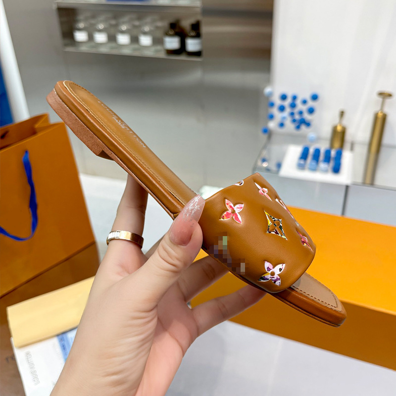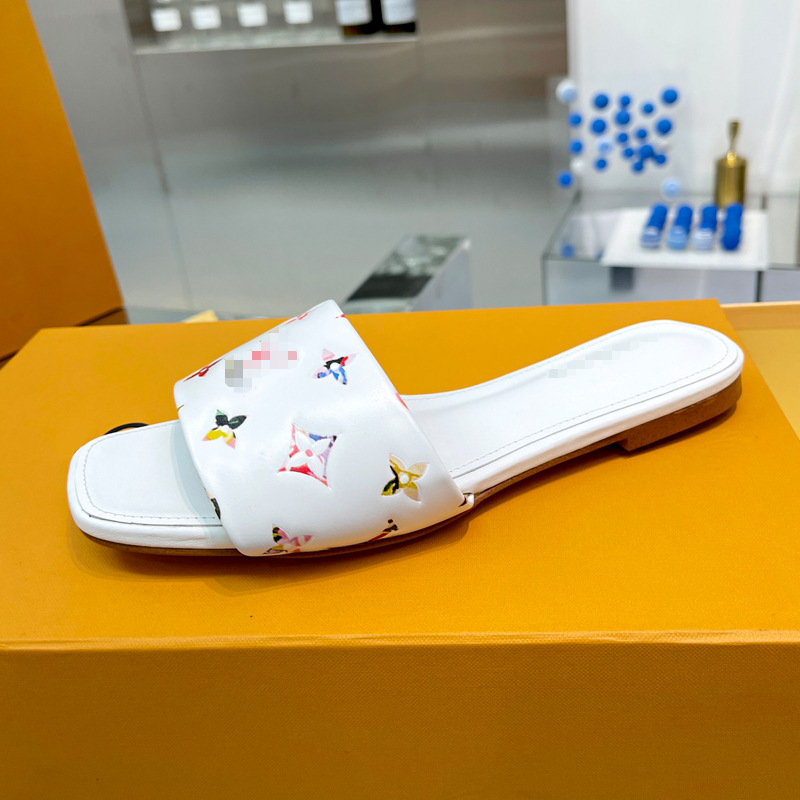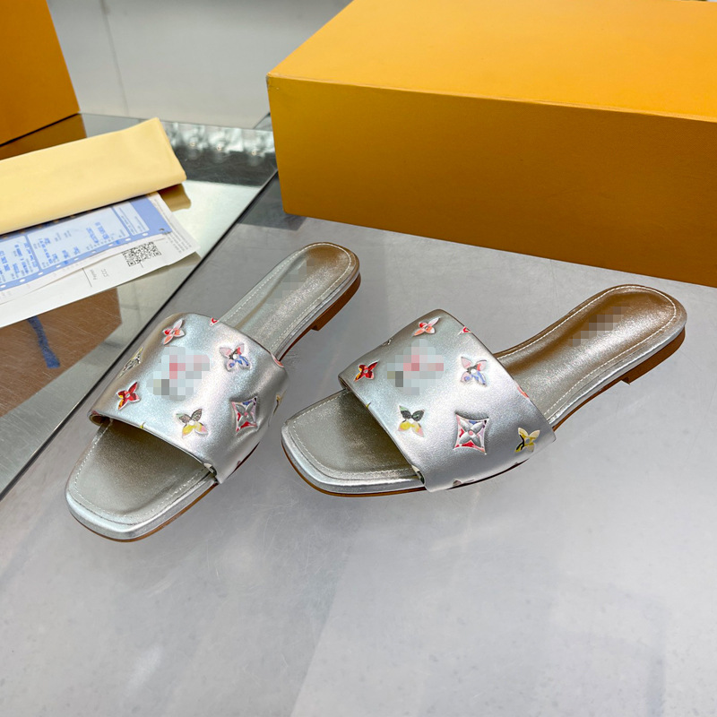 유럽과 미국의 패션 캐주얼 샌들 2025 새로운 정품 가죽 솔리드 컬러 엠보싱 플랫 슬리퍼 비치 여성의 대외 무역스토어 가기