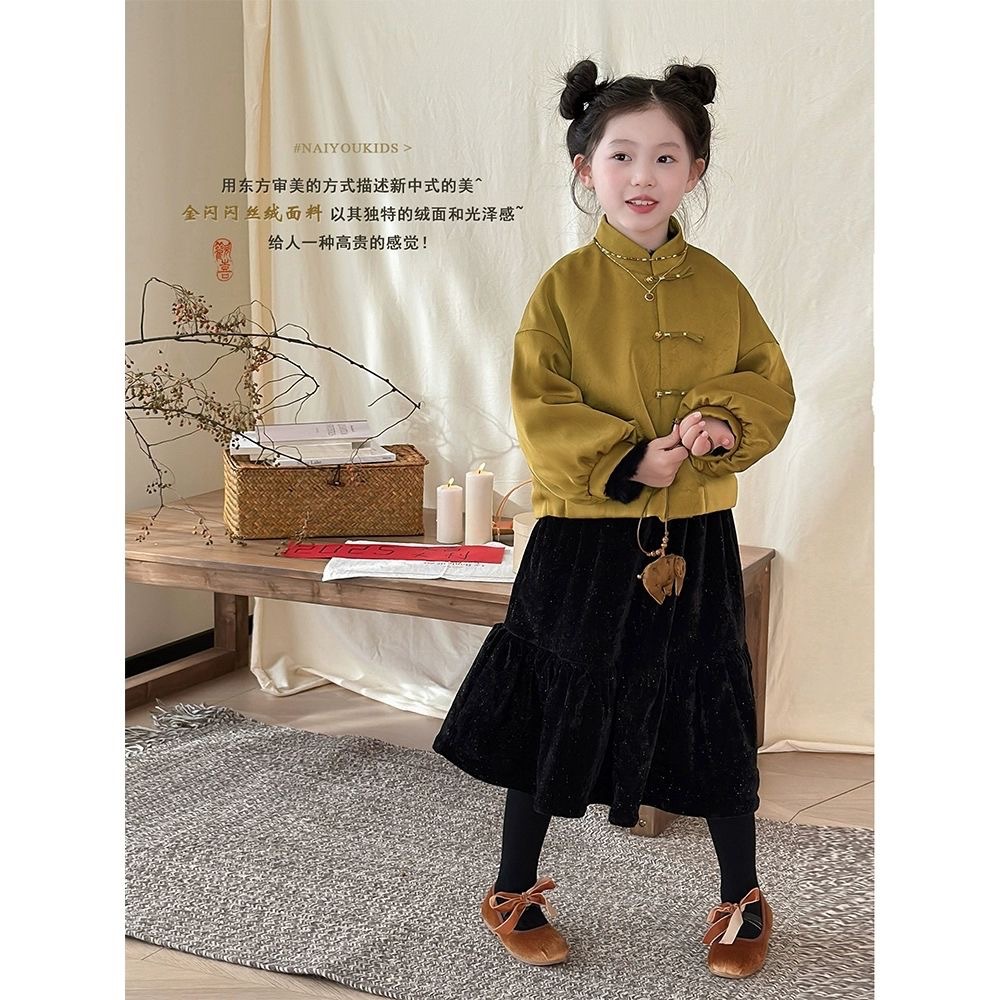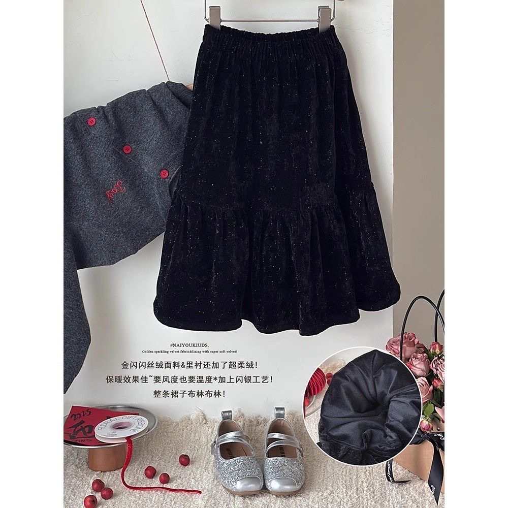 [블링 블링] 어린이 의류 소녀 가을과 겨울 새로운 중국 벨벳 스커트 기질 한국 반짝이는 피쉬 테일 스커트