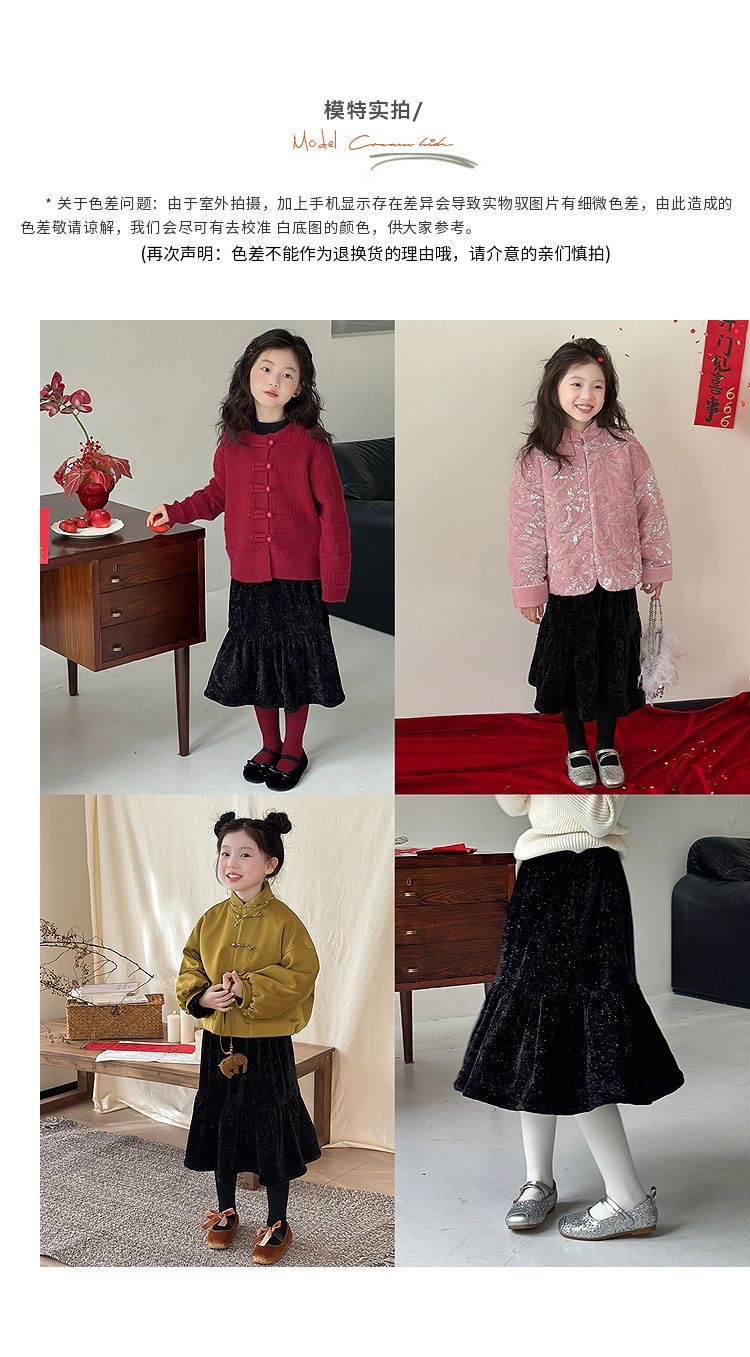 [블링 블링] 어린이 의류 소녀 가을과 겨울 새로운 중국 벨벳 스커트 기질 한국 반짝이는 피쉬 테일 스커트스토어 가기