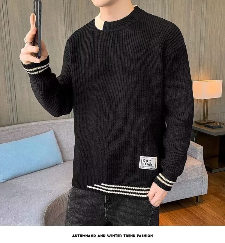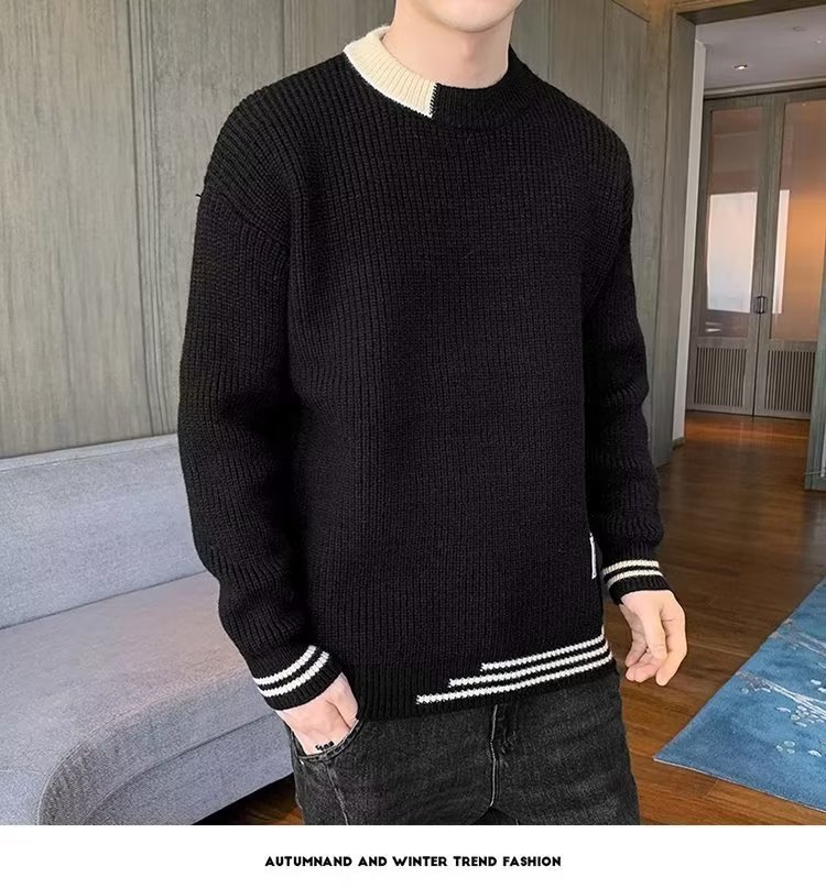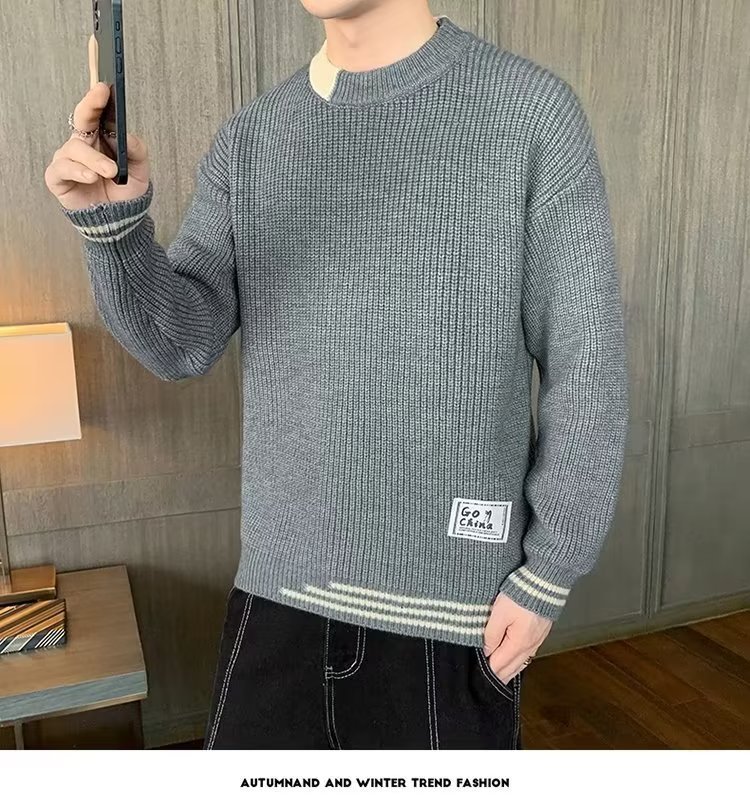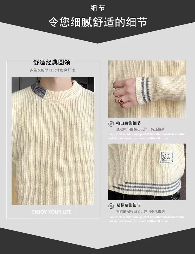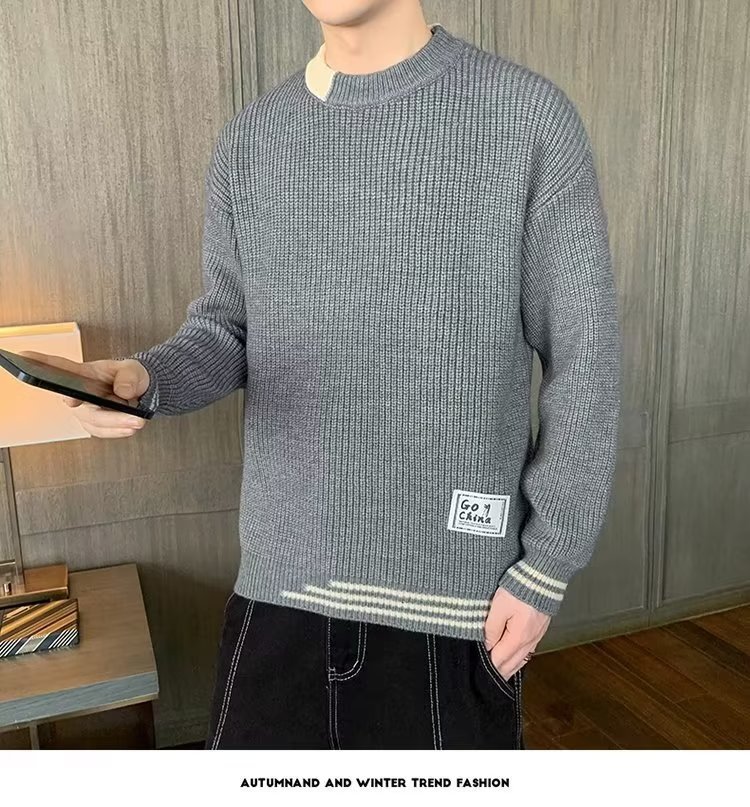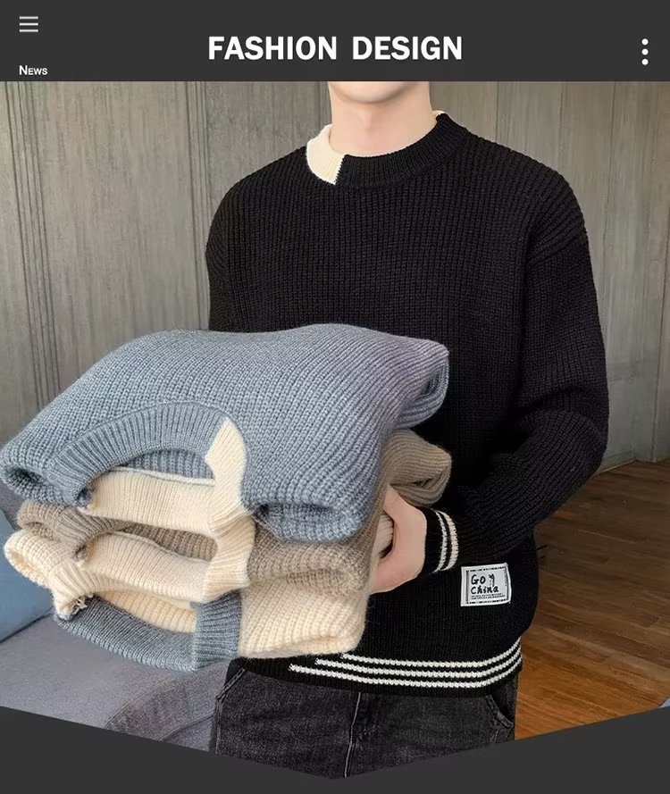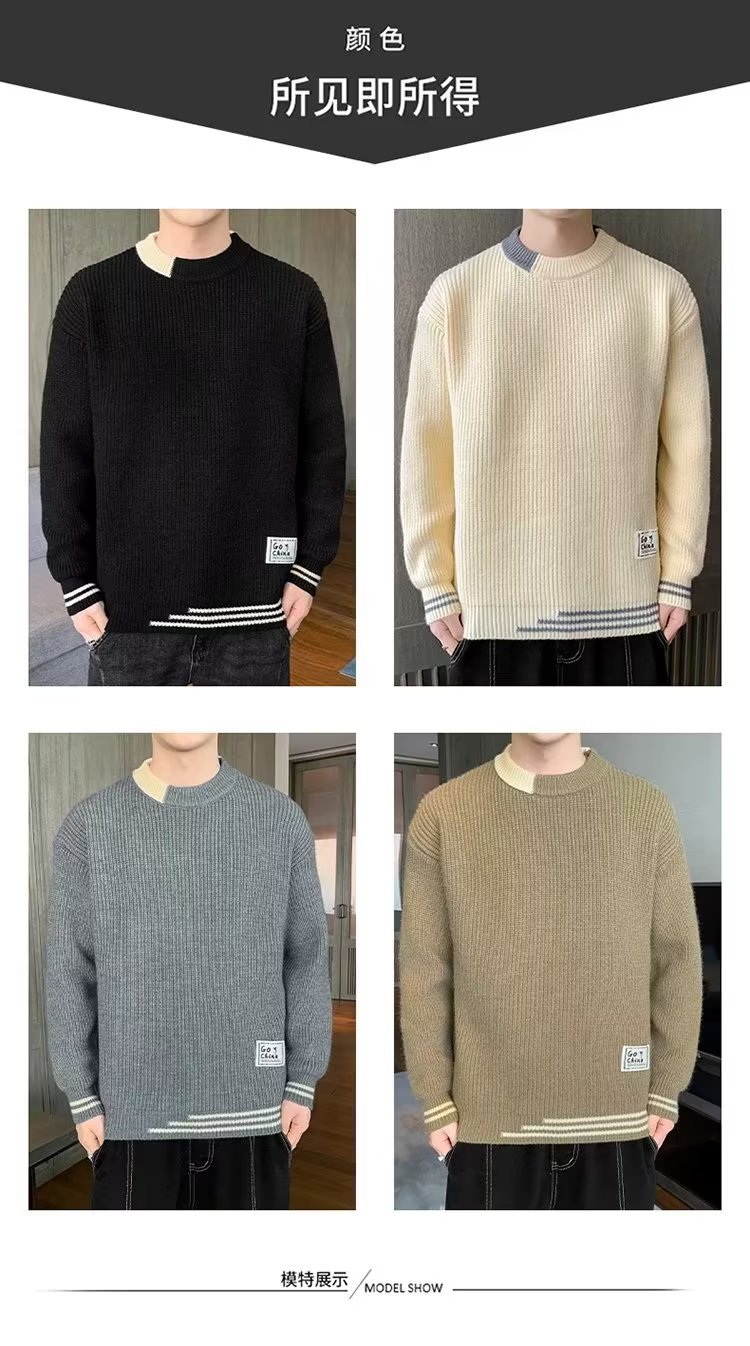 2025 년 겨울 새 라운드 넥 니트 스웨터 남자 트렌디 올매치 두꺼운 따뜻한 내부 탑스토어 가기