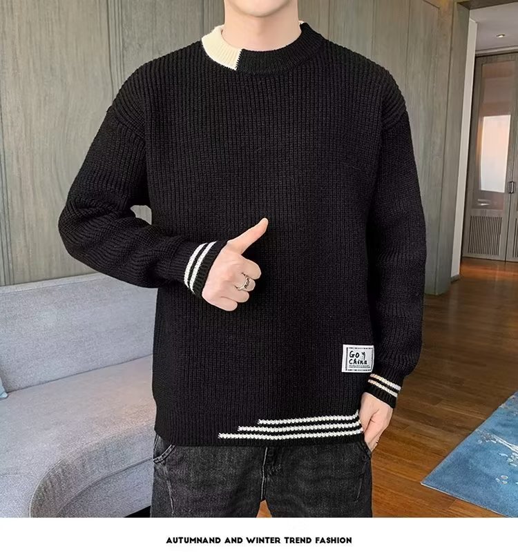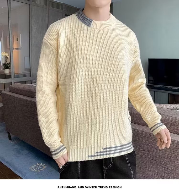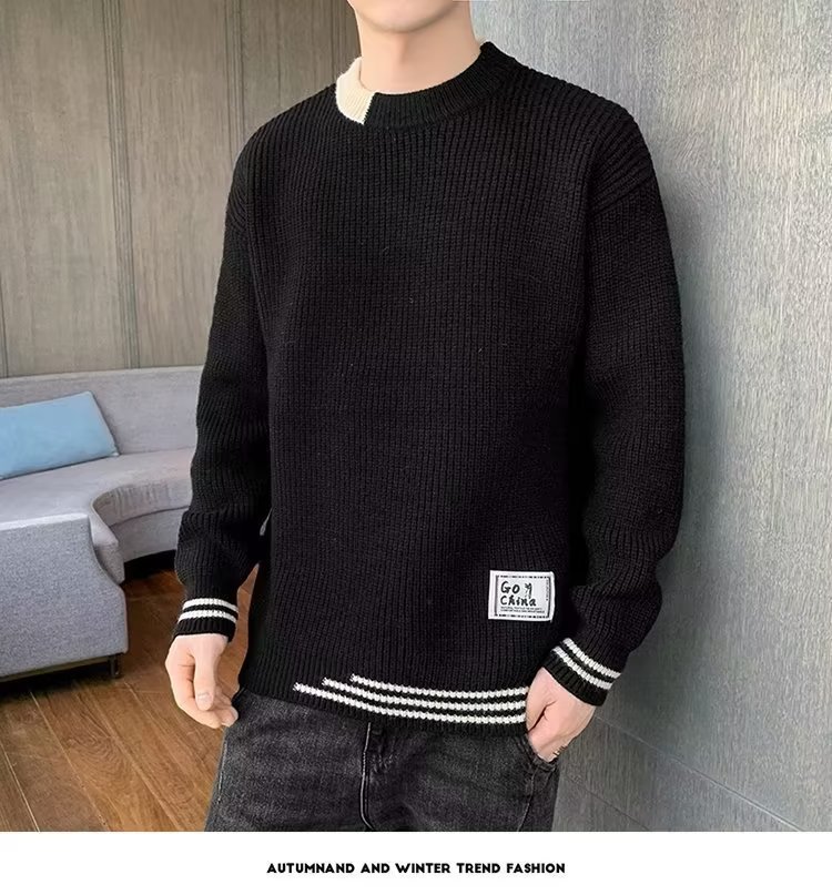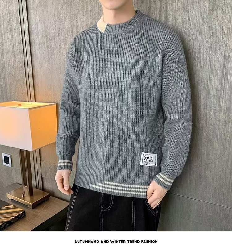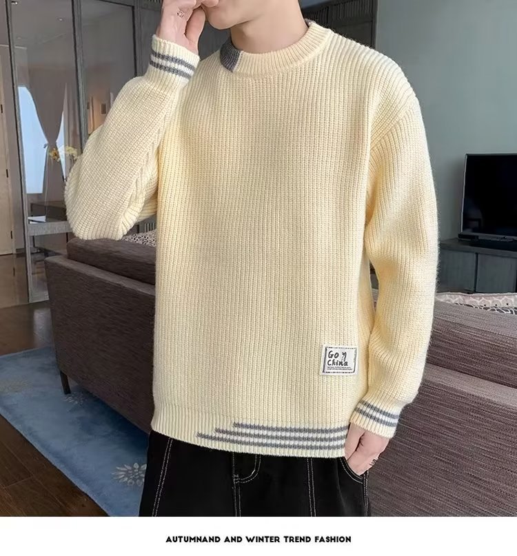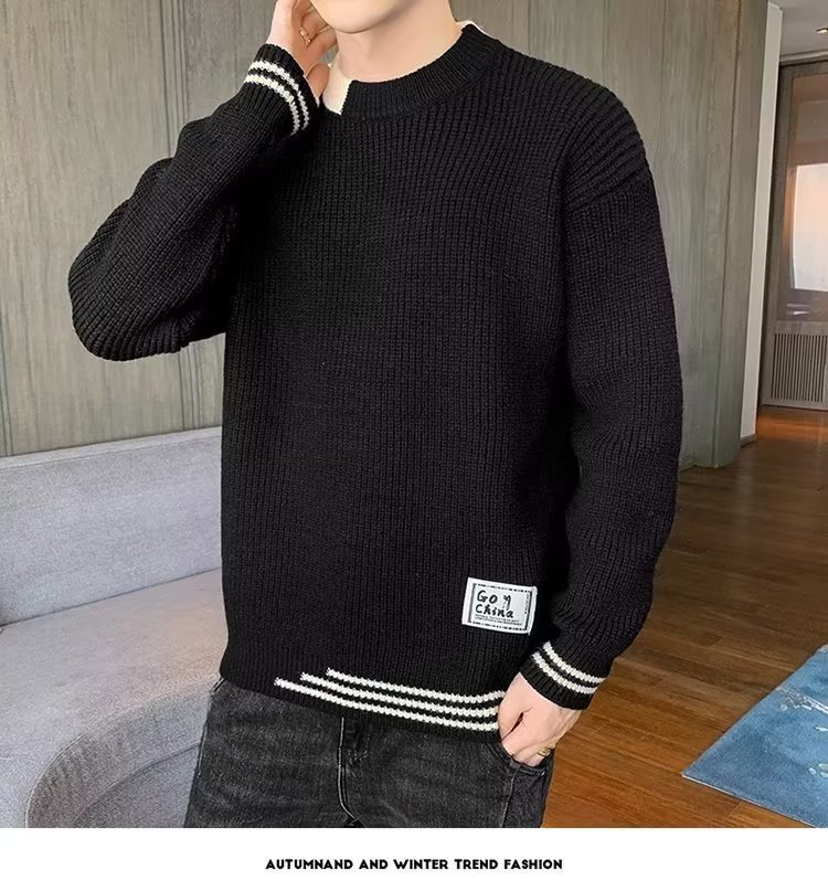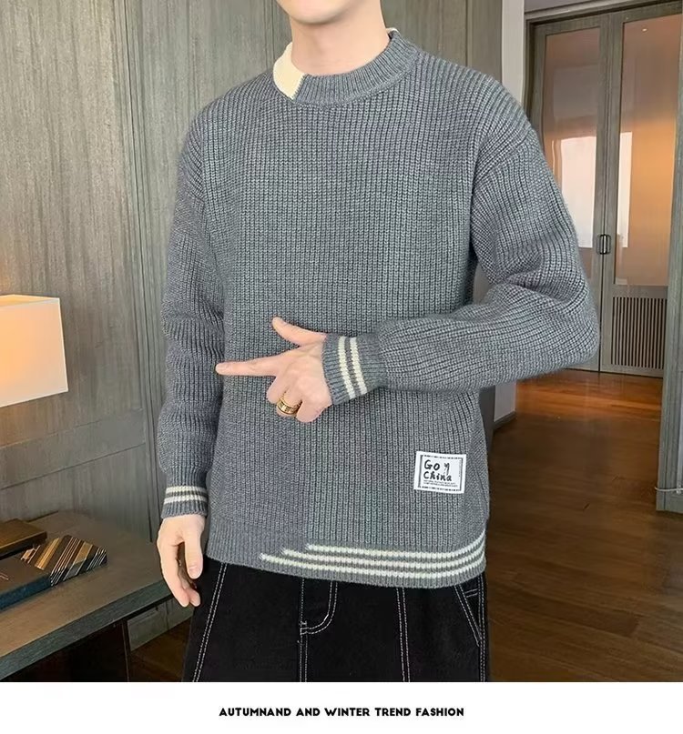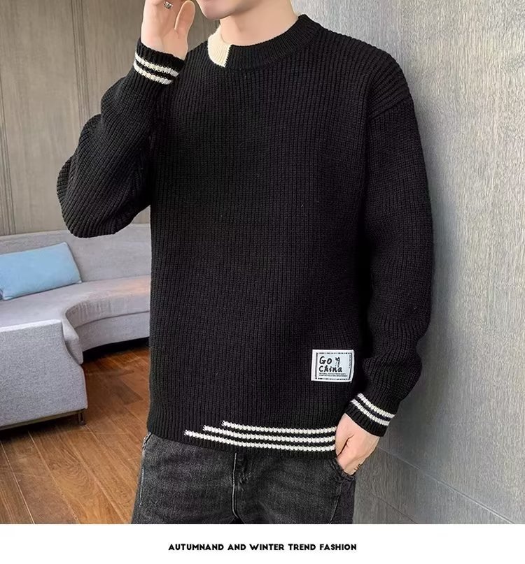 2025 년 겨울 새 라운드 넥 니트 스웨터 남자 트렌디 올매치 두꺼운 따뜻한 내부 탑스토어 가기