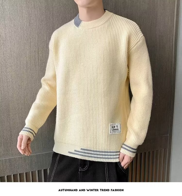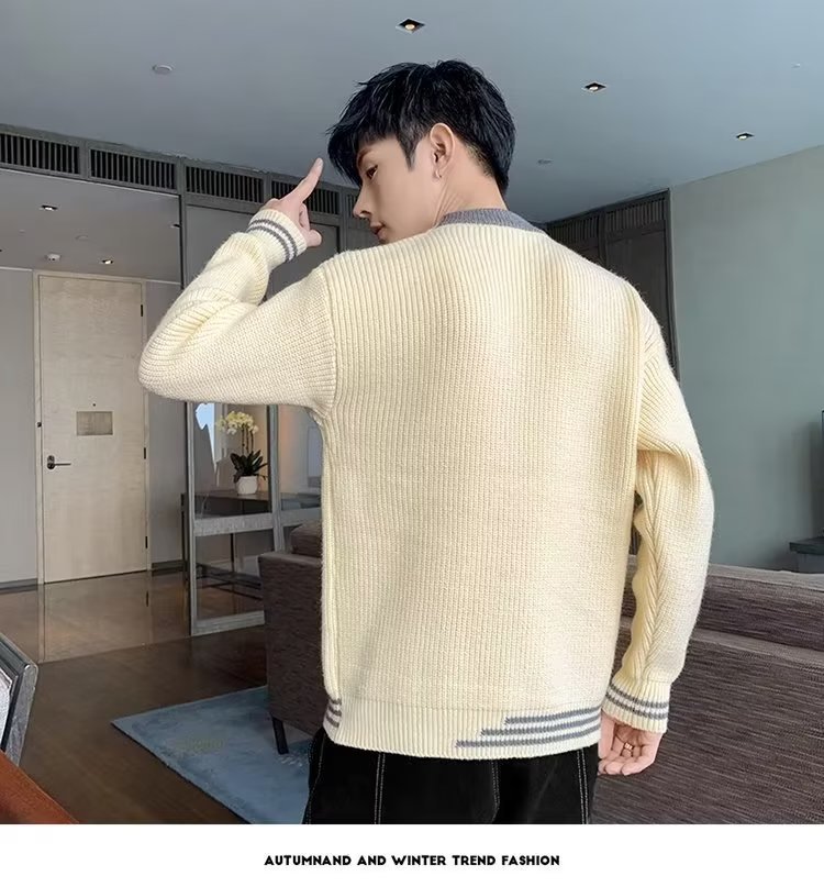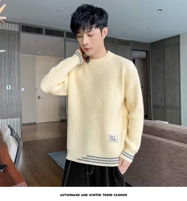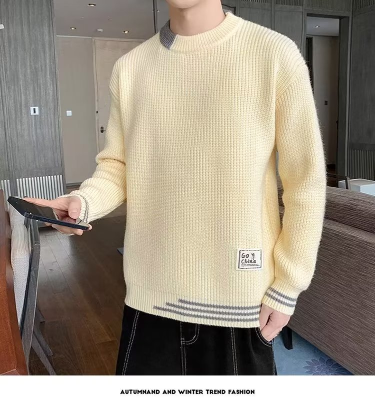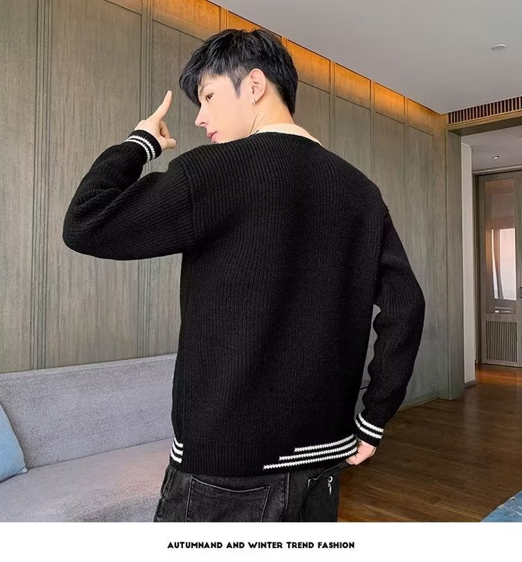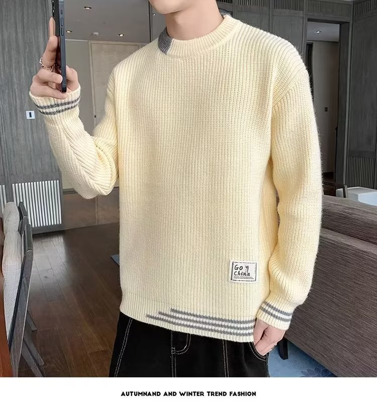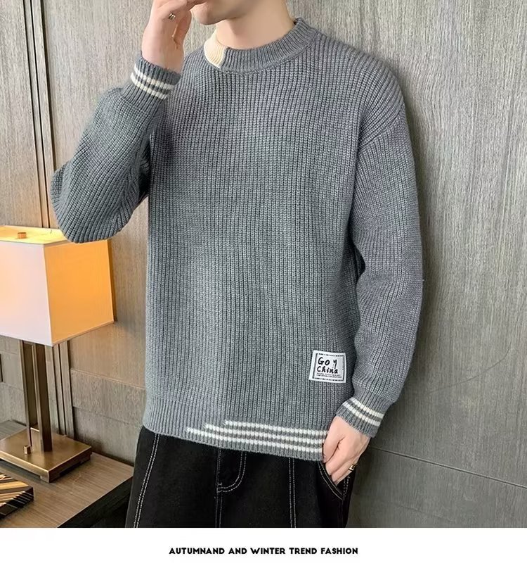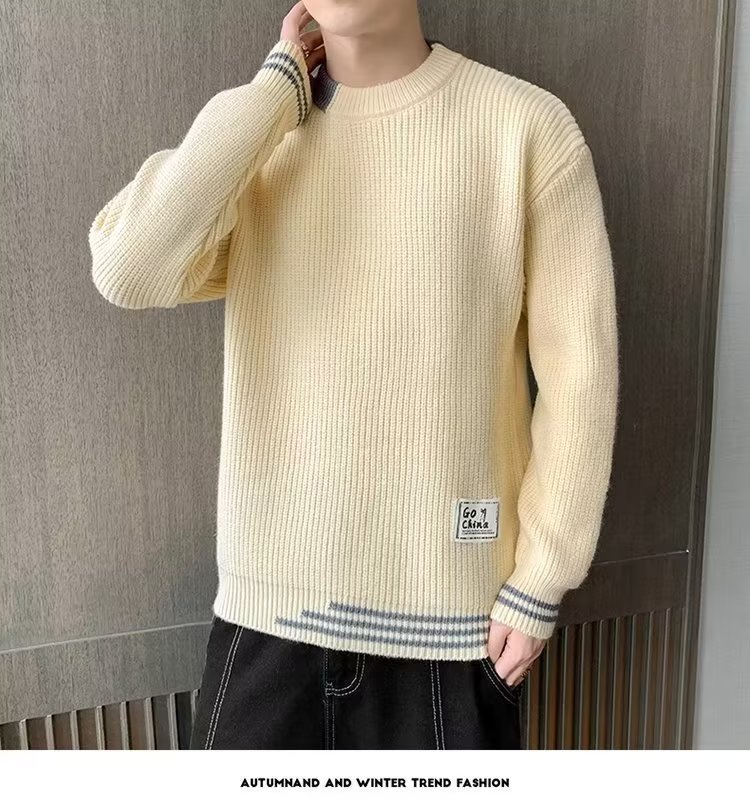 2025 년 겨울 새 라운드 넥 니트 스웨터 남자 트렌디 올매치 두꺼운 따뜻한 내부 탑스토어 가기