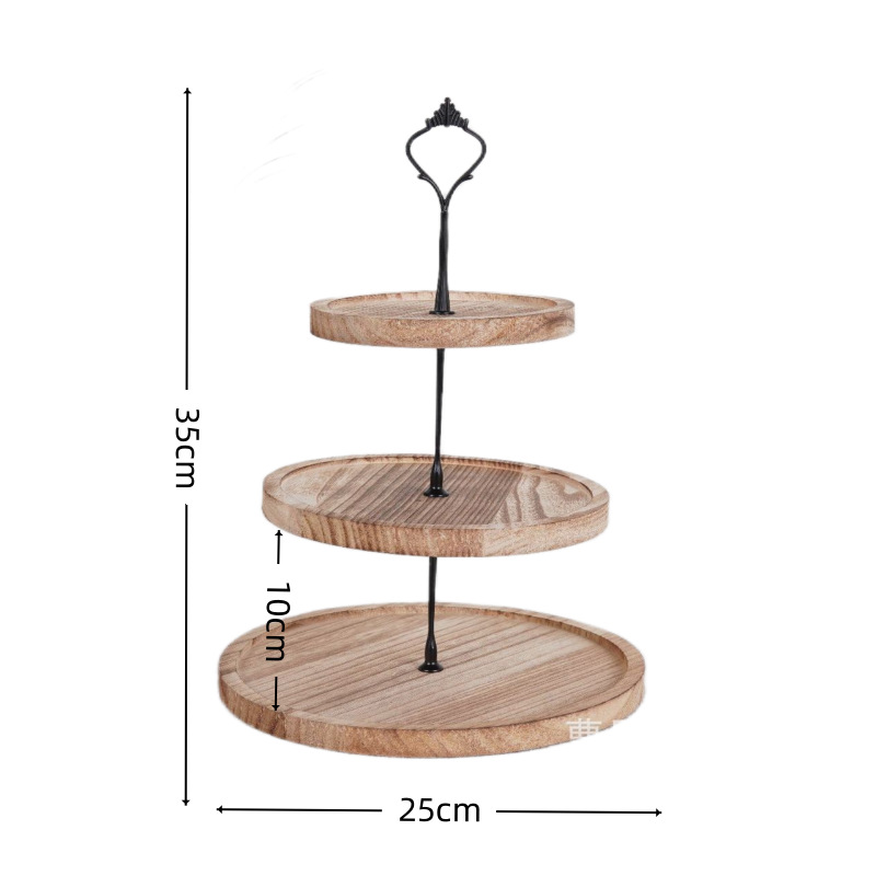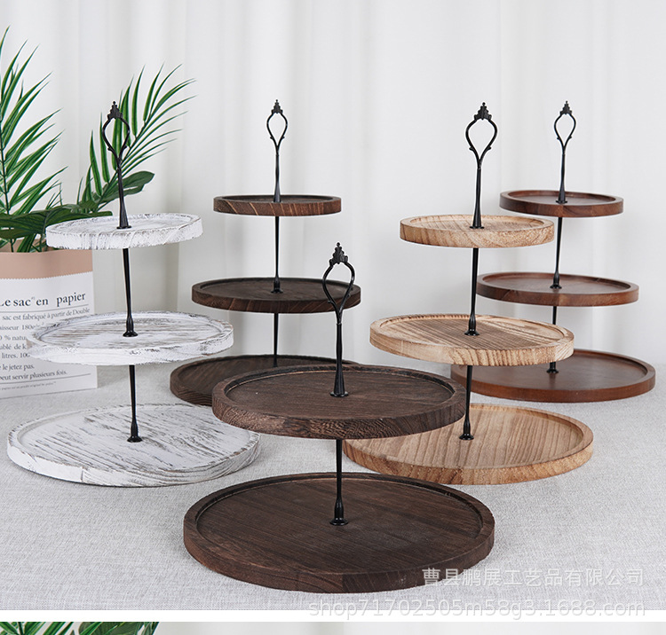 심플한 원형 나무 디저트 테이블 간식 애프터눈 티 디스플레이 스탠드 과일 접시 케이크 테이블 원목 트레이스토어 가기