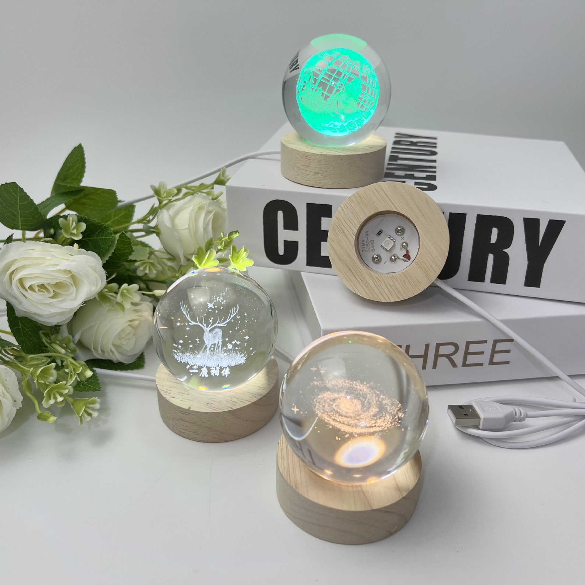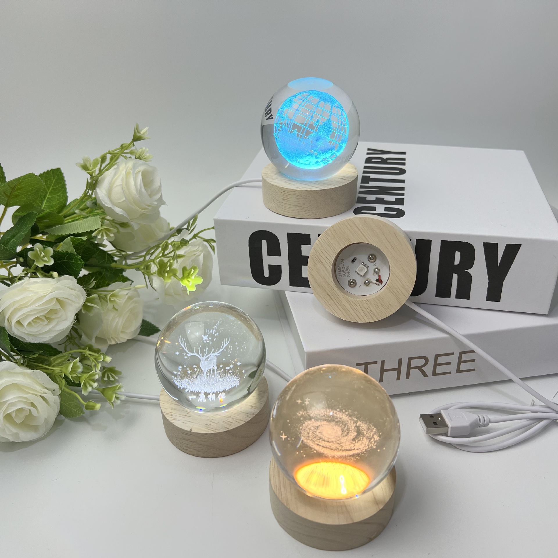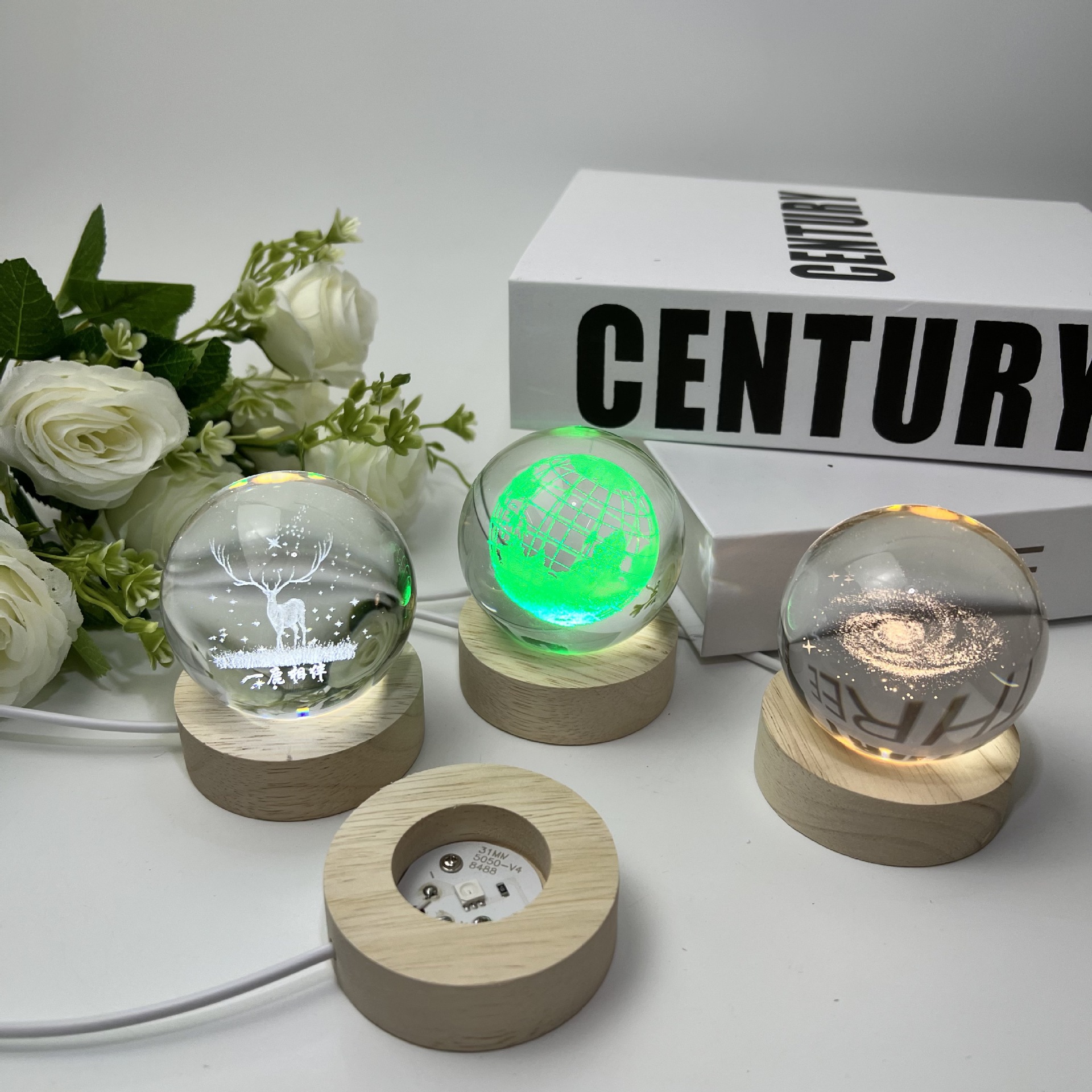 단단한 나무 둥근 흰색 배아 빛나는베이스 크리스탈 볼 장식 나무 직선 콘센트 나이트 라이트 플러그인 침실 분위기