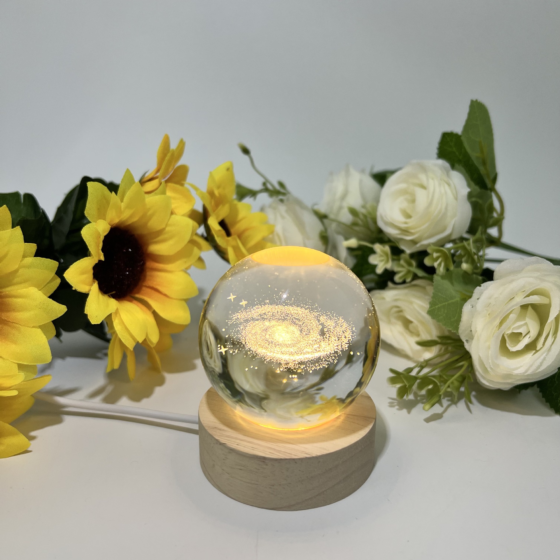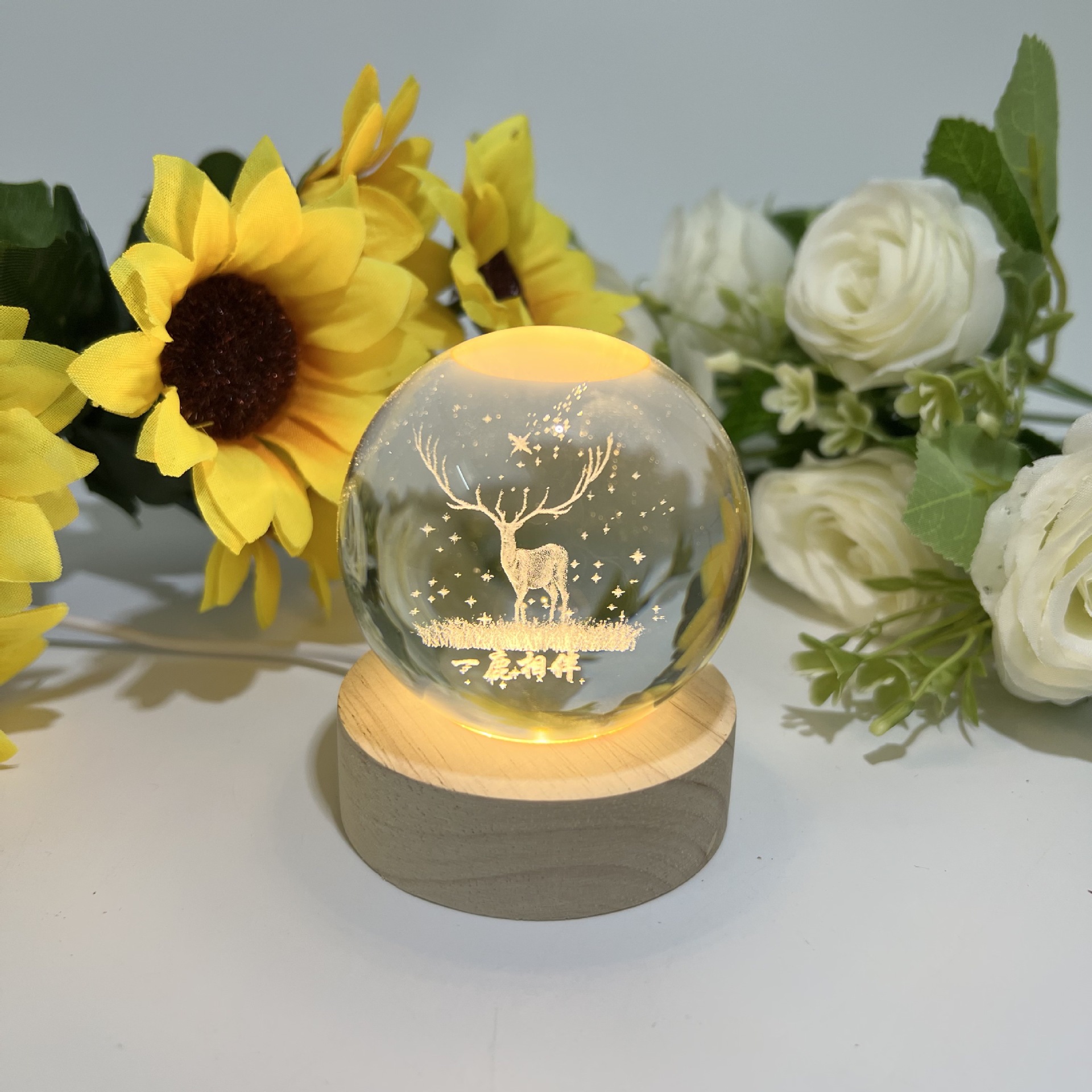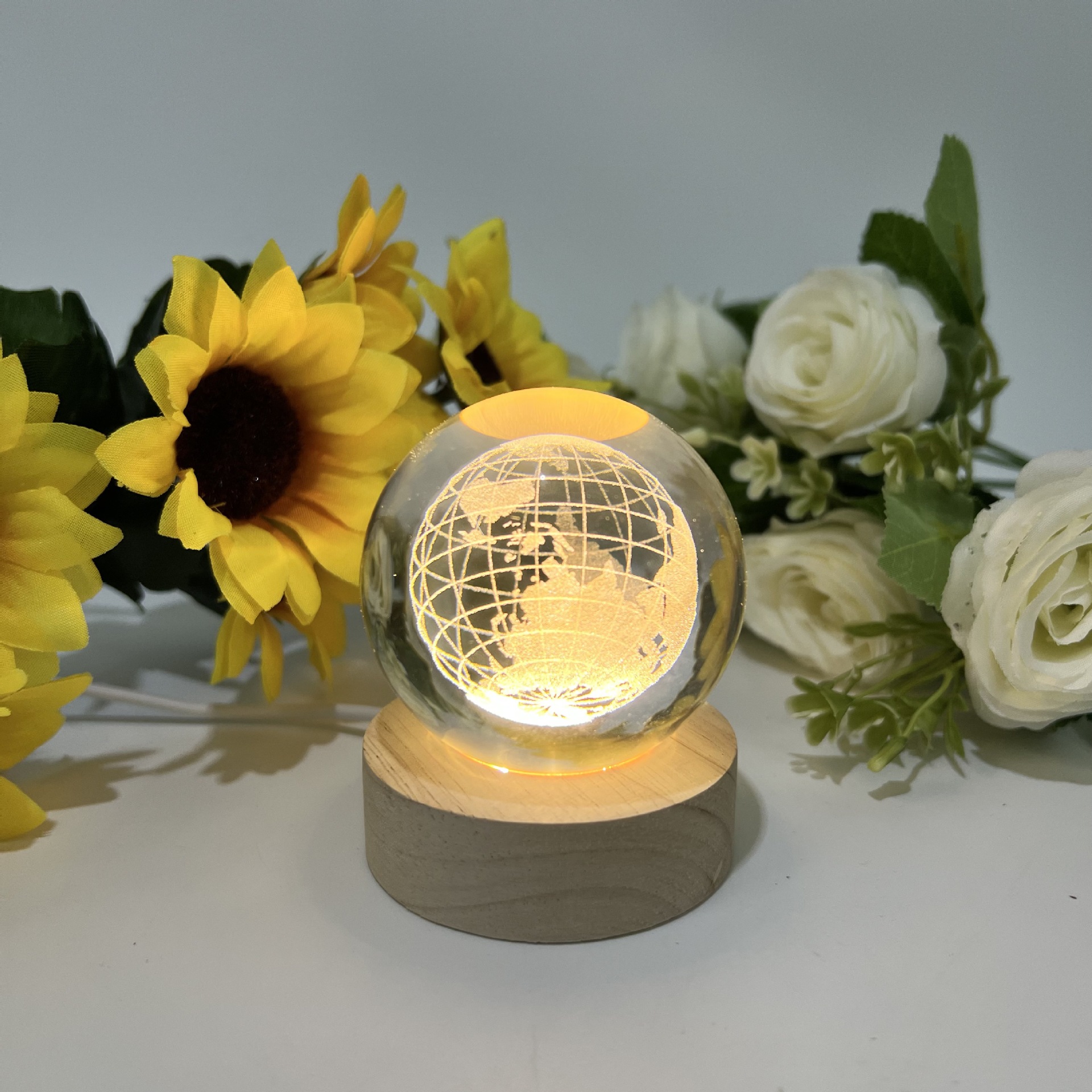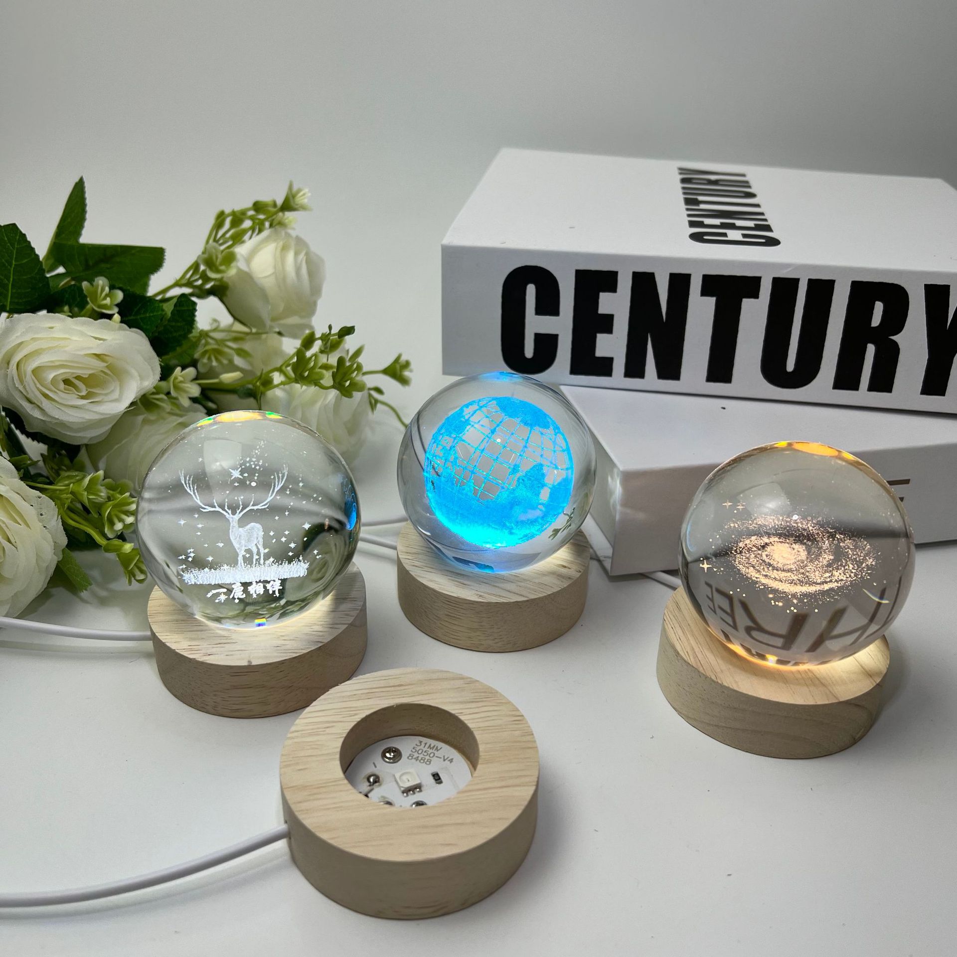 단단한 나무 둥근 흰색 배아 빛나는베이스 크리스탈 볼 장식 나무 직선 콘센트 나이트 라이트 플러그인 침실 분위기