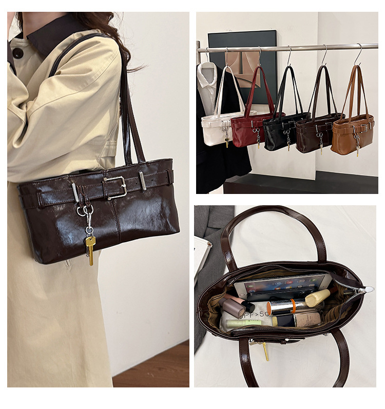 Yo Zi 외국 스타일 Texturistic 숄더 백 여성의 2024 년 새로운 가을과 겨울 복고풍 언더암 가방 작업 작은 가방스토어 가기
