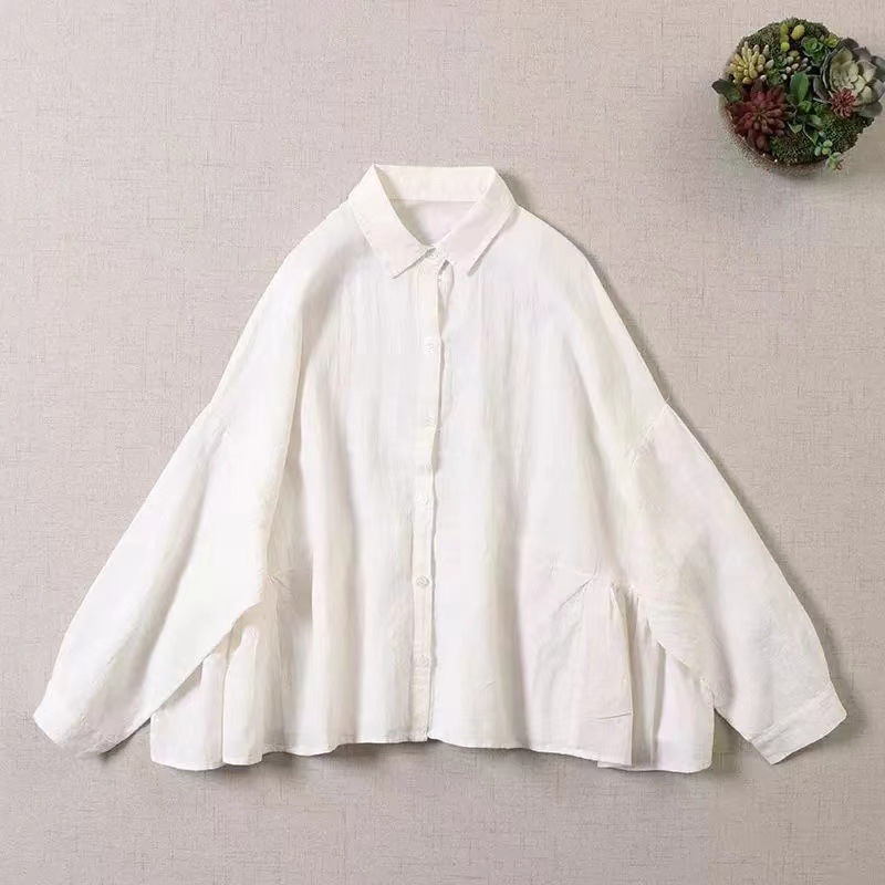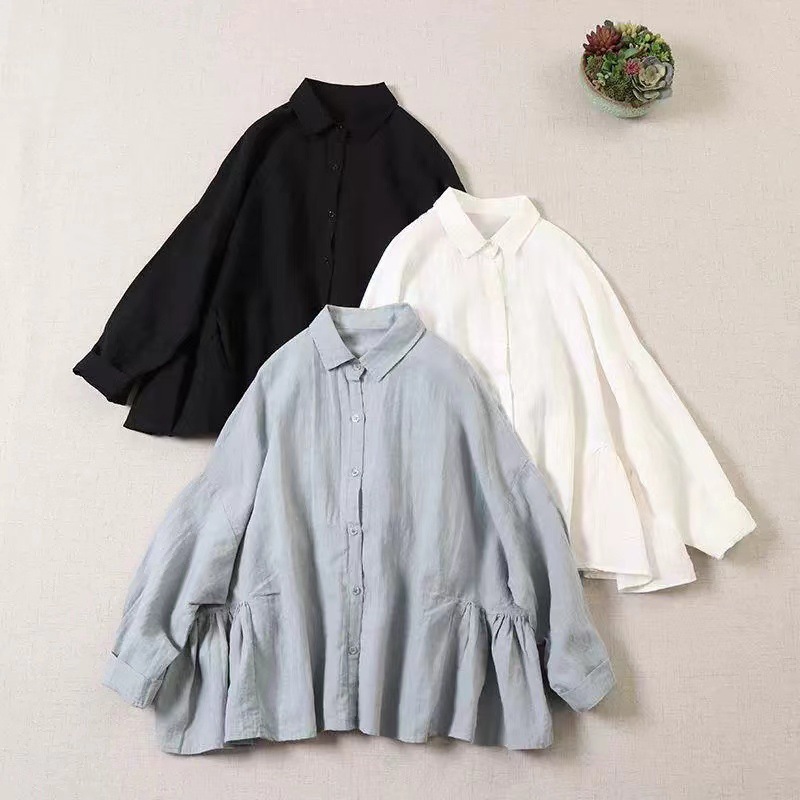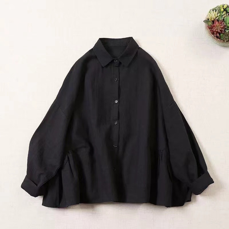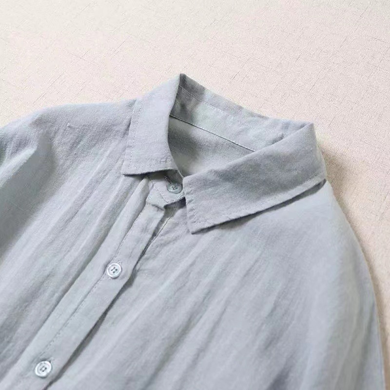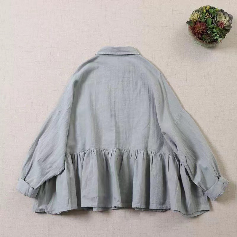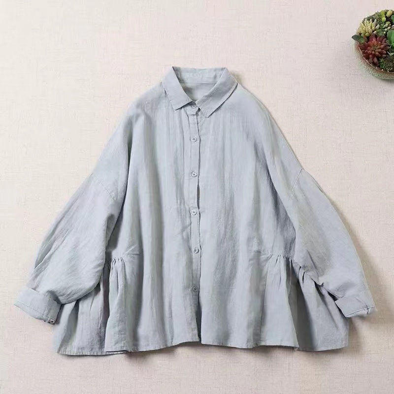 수출 대외 무역 일본 예술적 면 린넨 긴 소매 셔츠 느슨한 서양식 스퀘어 칼라 카디건 탑 여성 의류스토어 가기