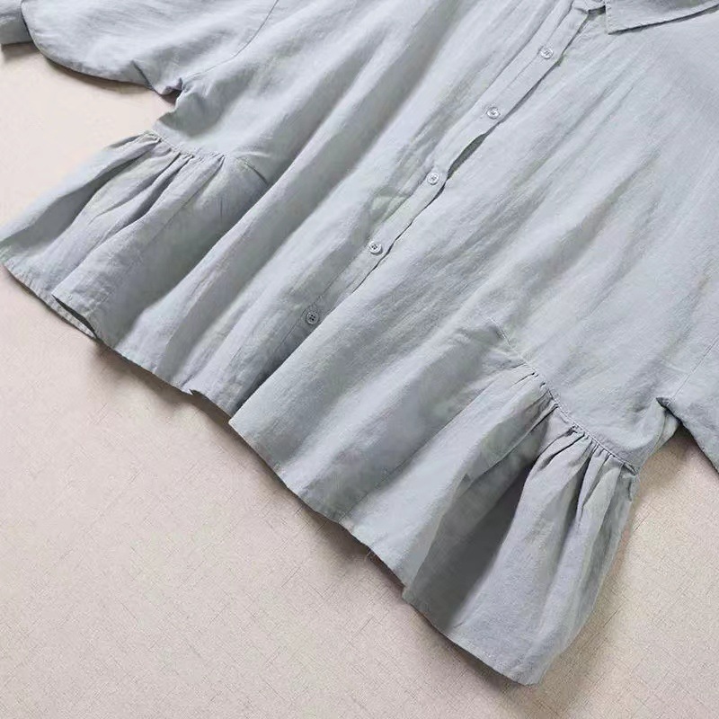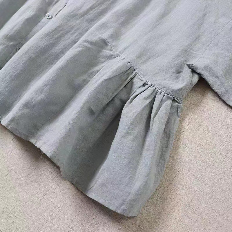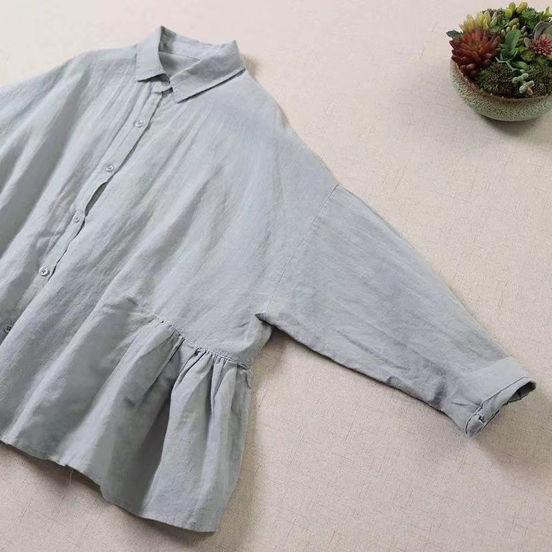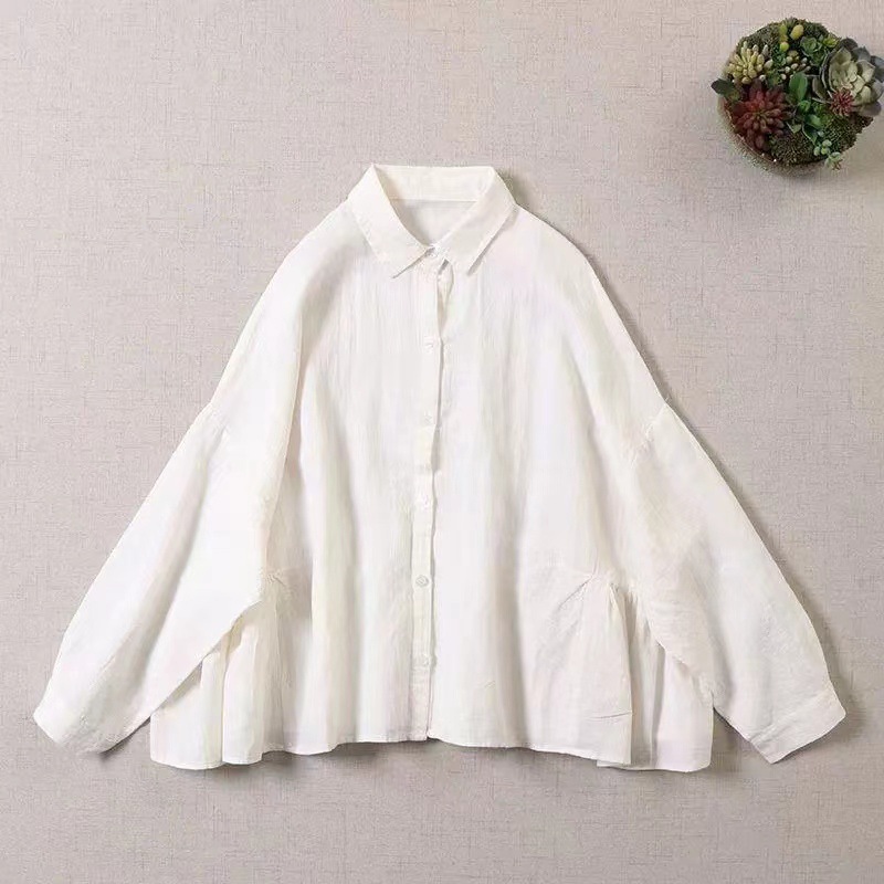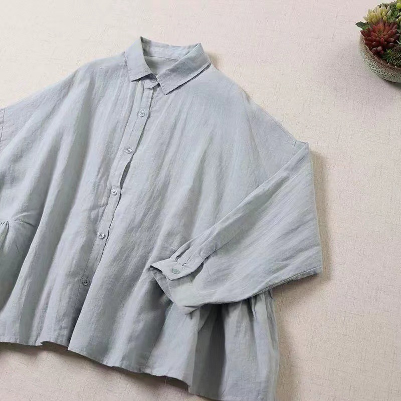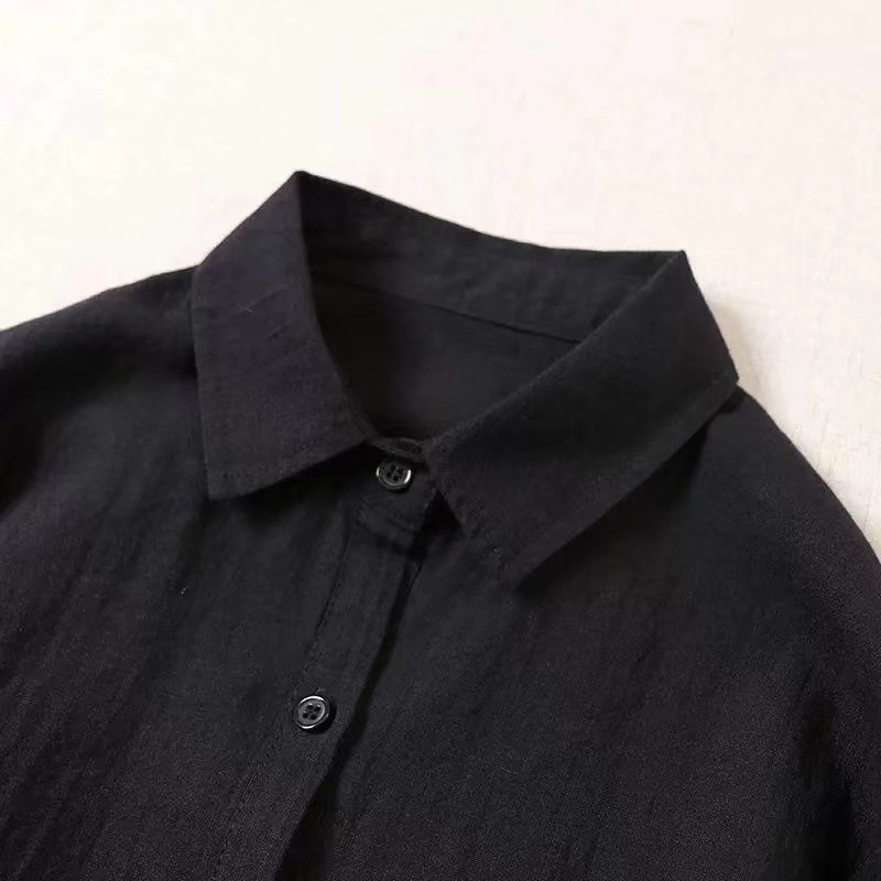 수출 대외 무역 일본 예술적 면 린넨 긴 소매 셔츠 느슨한 서양식 스퀘어 칼라 카디건 탑 여성 의류스토어 가기