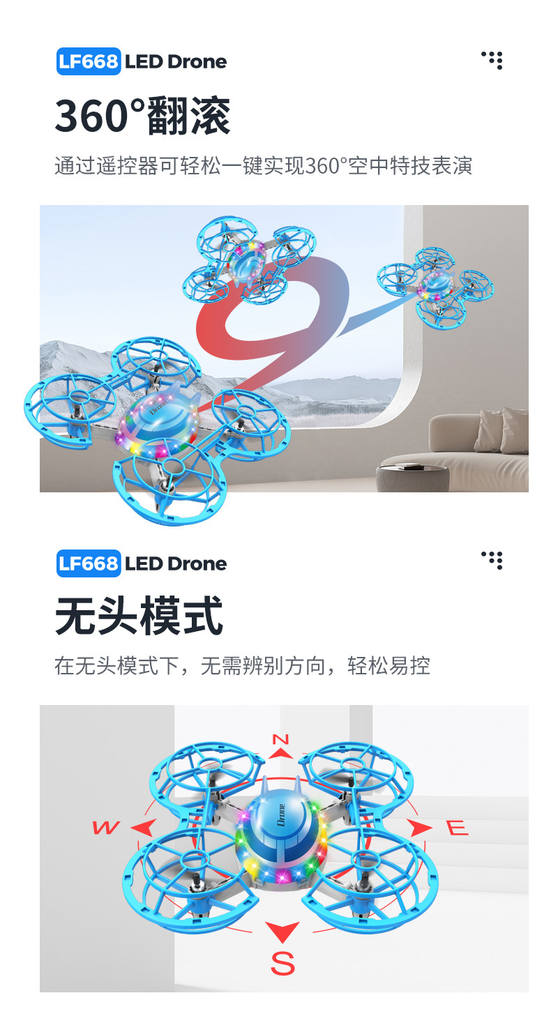 미니 드론 LF668 고정 높은 다채로운 조명 원격 제어 항공기 호버 360도 텀블링 쿼드콥터스토어 가기