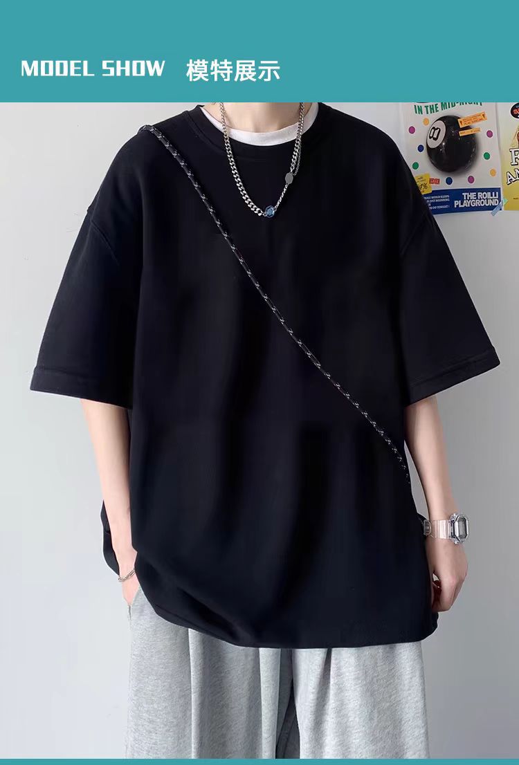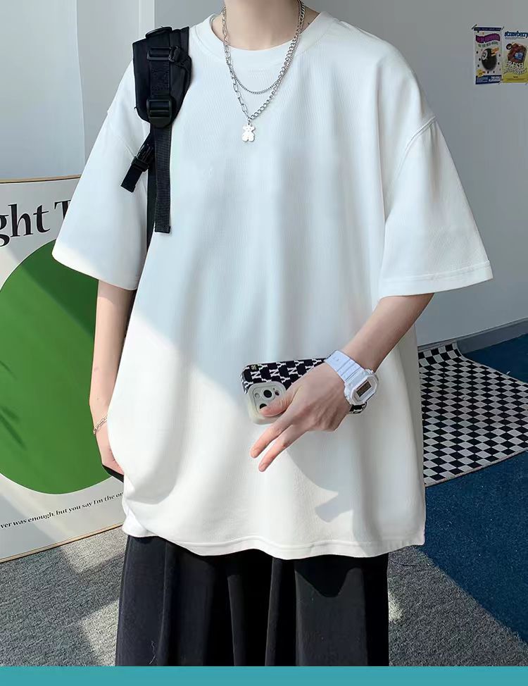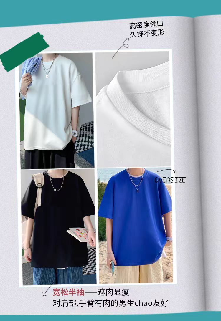 흰색 반소매 티셔츠 남성용 여름 코튼 헤비 230g 새 반소매 베이스 셔츠 느슨한 패션 의류스토어 가기