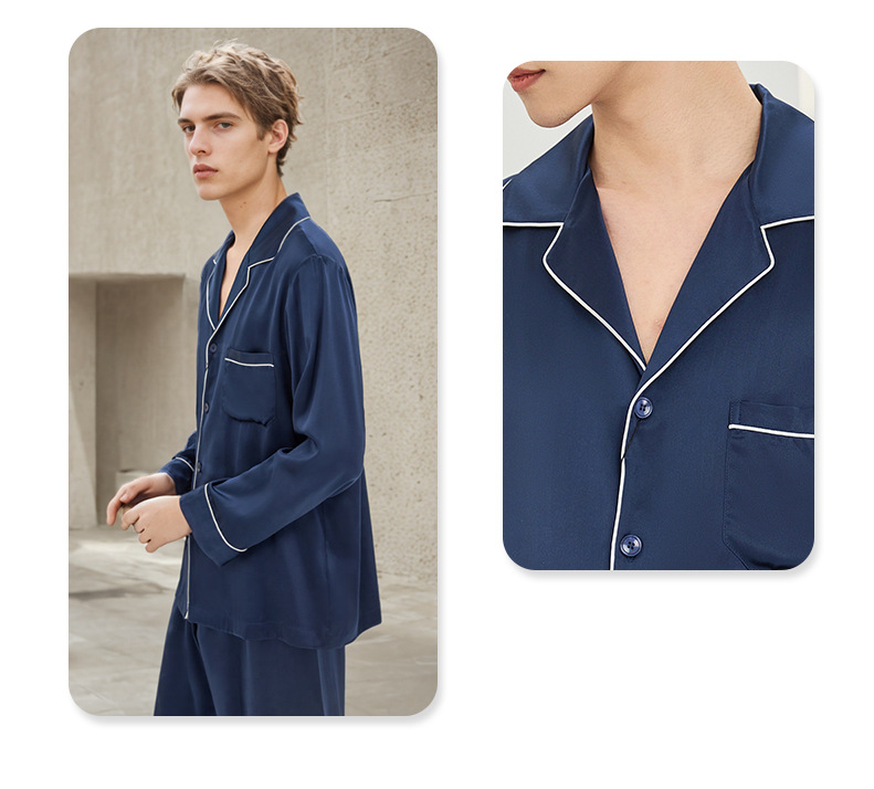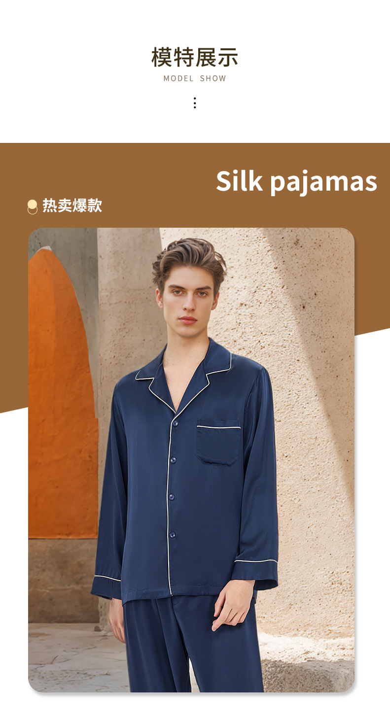 2026년 신상 19mm 고급 실크 잠옷 남성용 100% 뽕나무 실크 긴팔 긴바지 봄 여름 홈웨어 세트스토어 가기