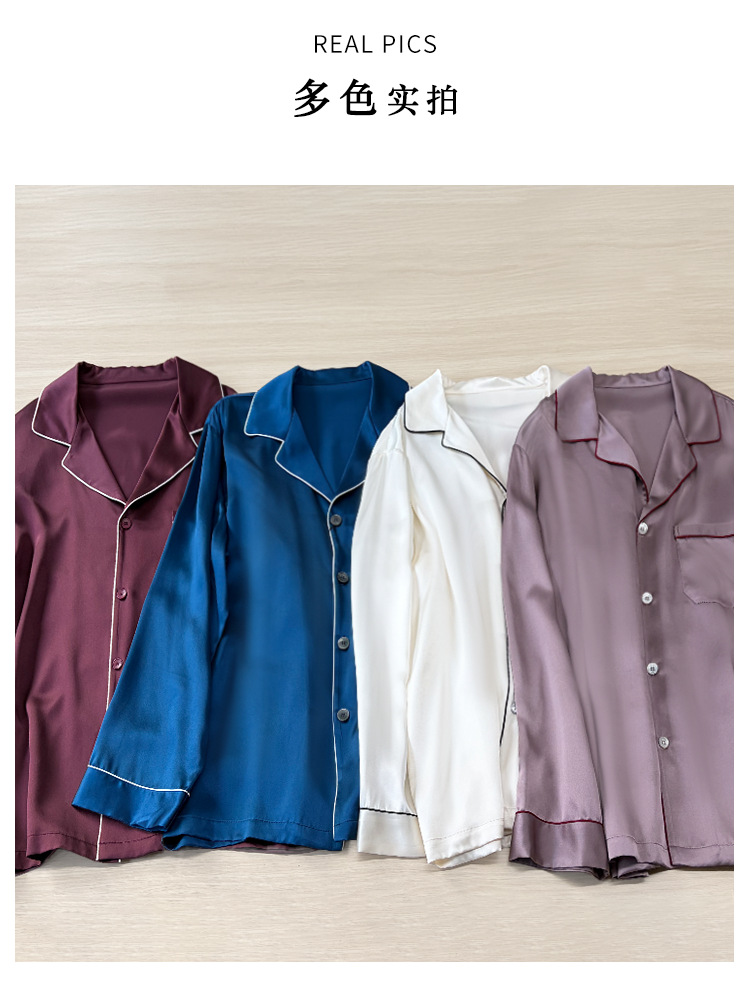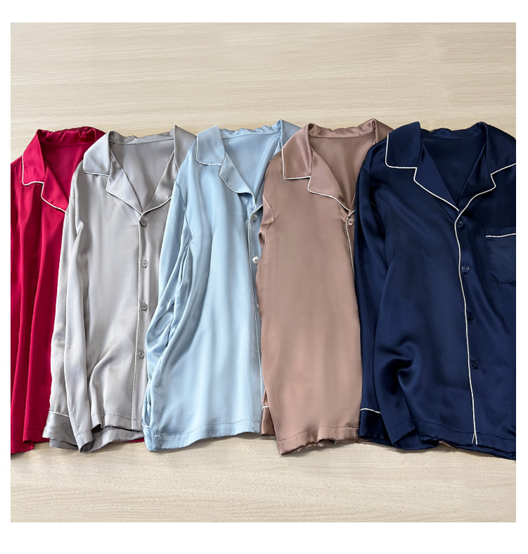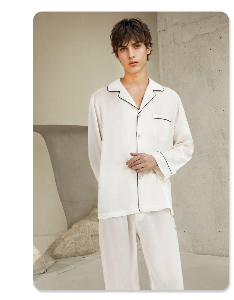 2026년 신상 19mm 고급 실크 잠옷 남성용 100% 뽕나무 실크 긴팔 긴바지 봄 여름 홈웨어 세트