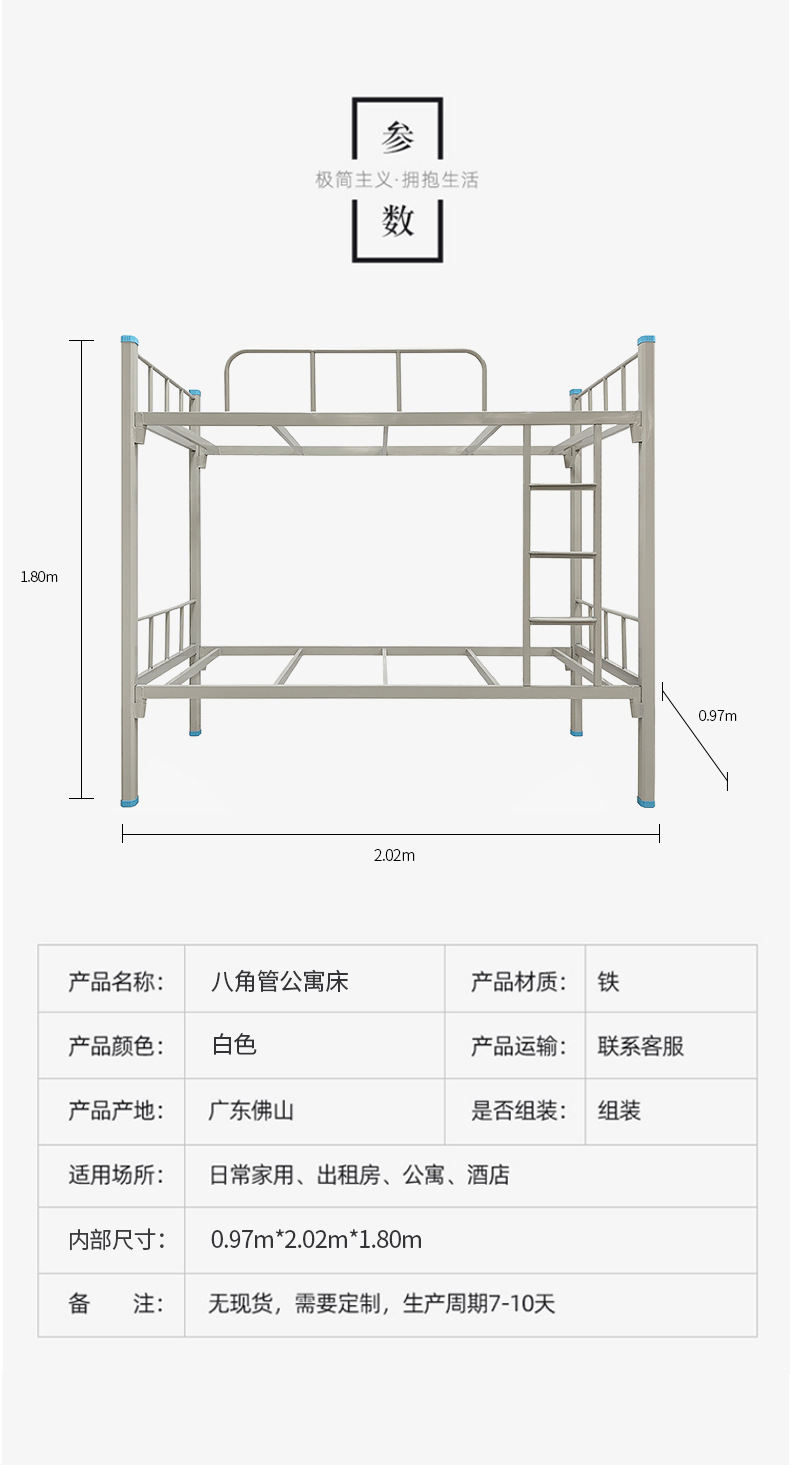 팔각형 튜브 아파트 침대 상하 벙크 아이언 프레임 침대 예술 높고 낮은 침대 건설 현장 직원 기숙사 두꺼운 침대 더블 레이어 프로필 침대스토어 가기