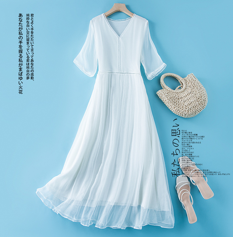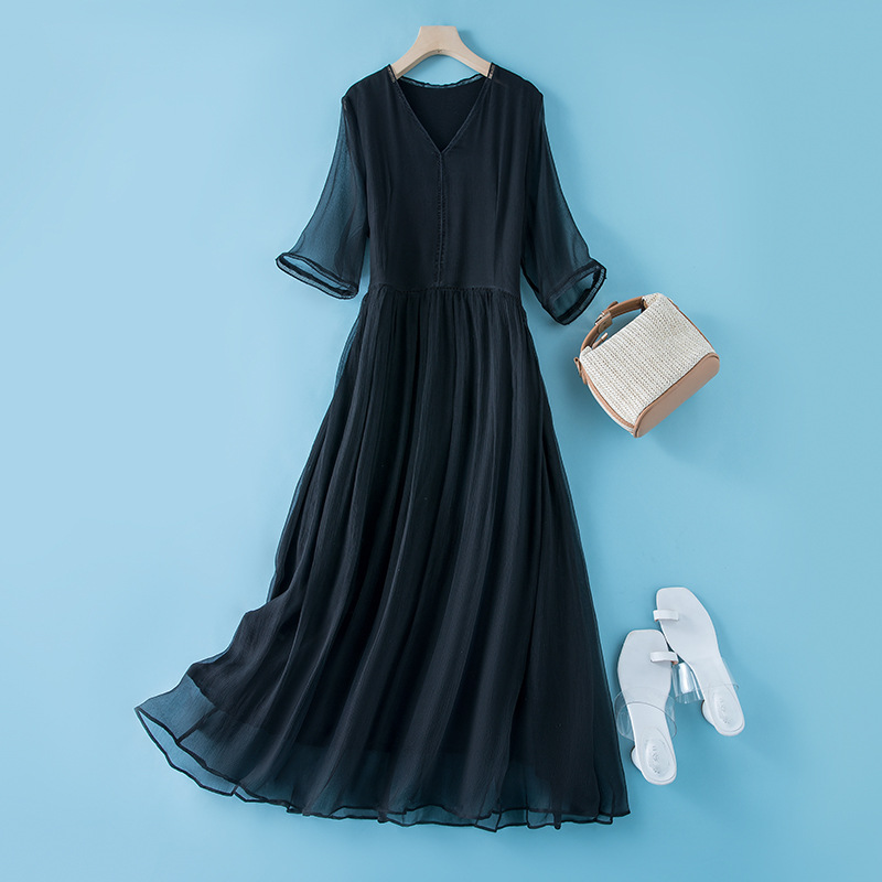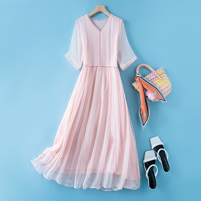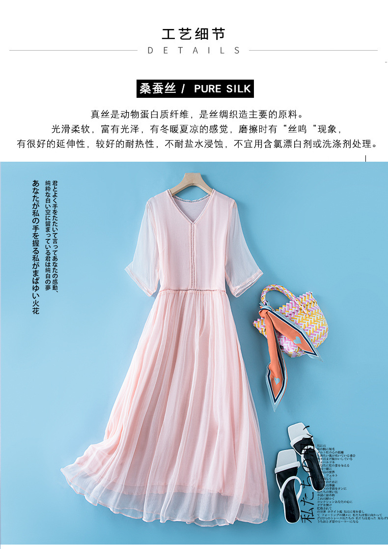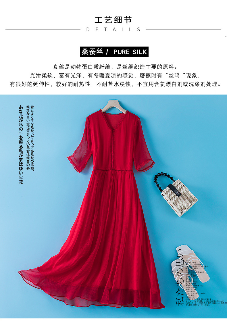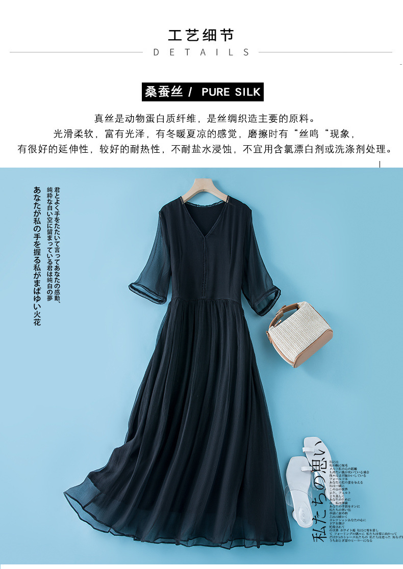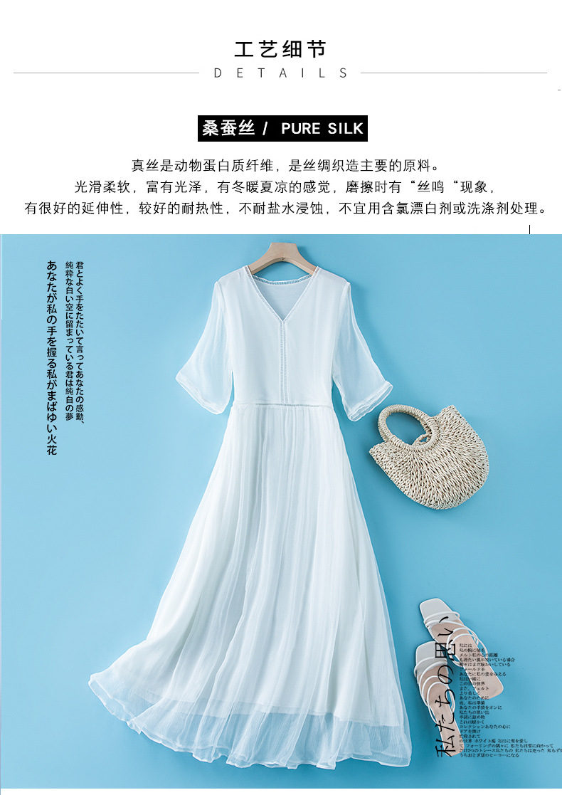 항주 실크 원피스 여성 여름 새로운 7 점 소매 슬림 A-워드 요정 스커트 도매