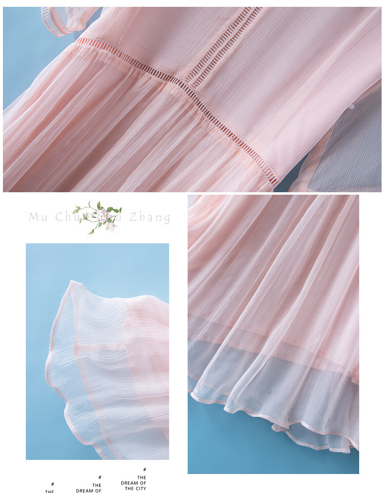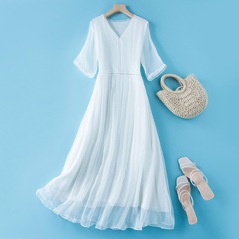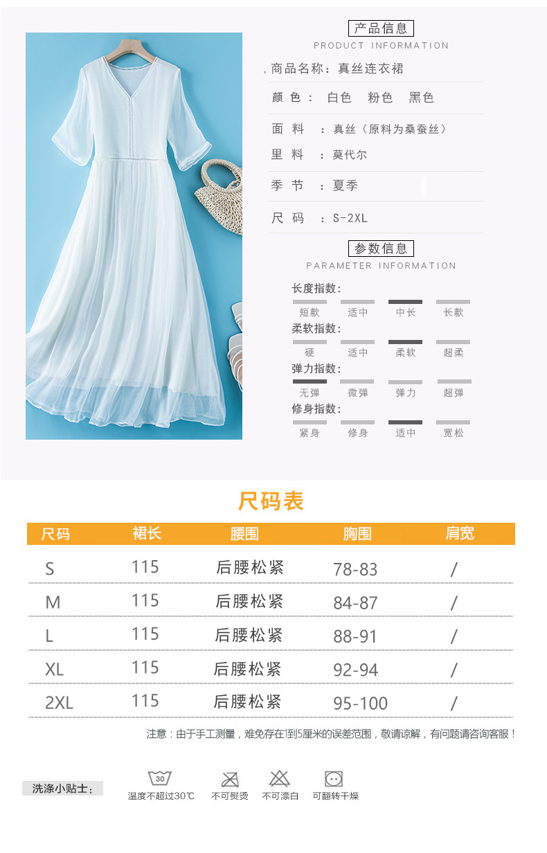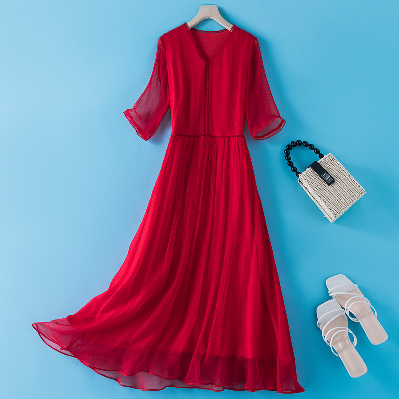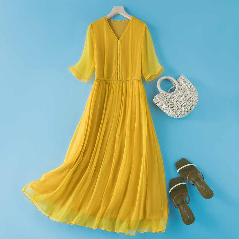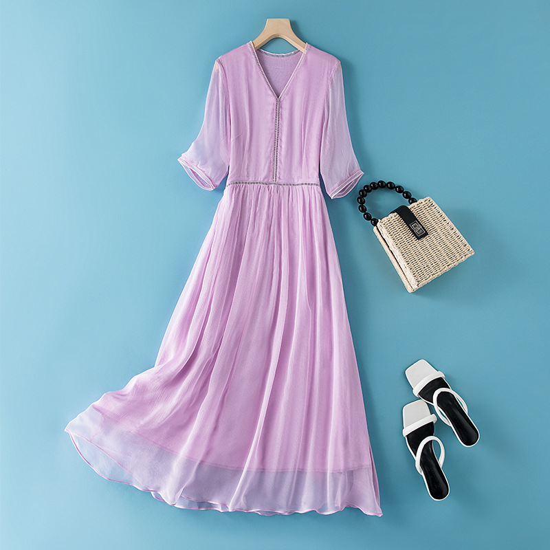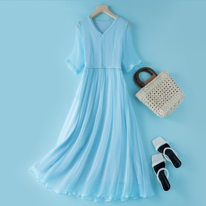항주 실크 원피스 여성 여름 새로운 7 점 소매 슬림 A-워드 요정 스커트 도매